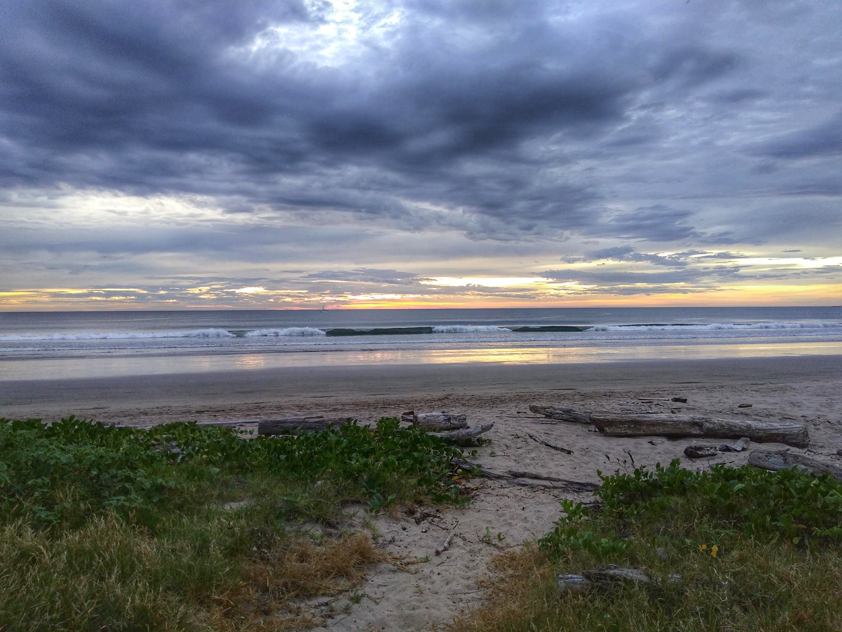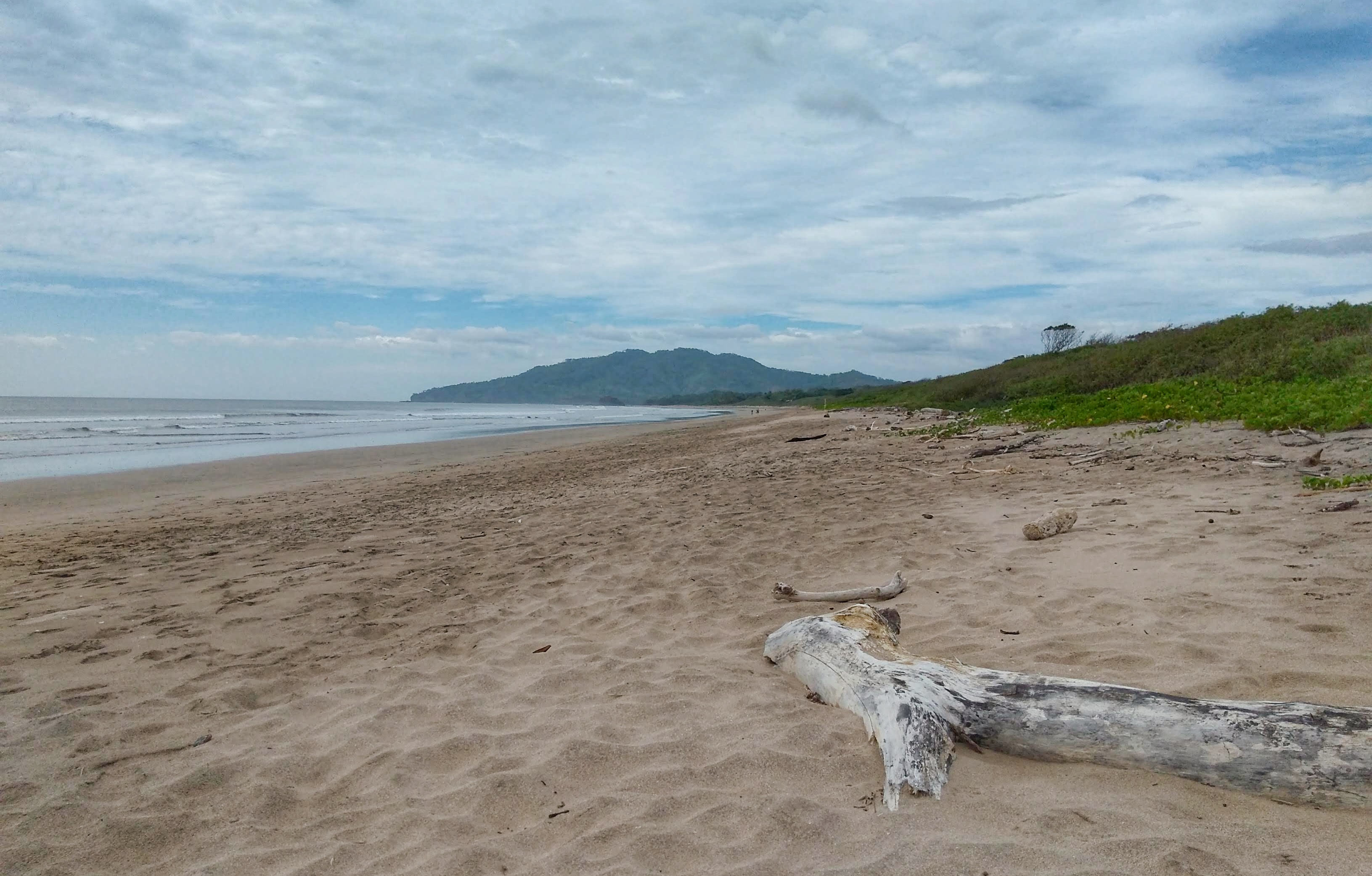 Morgens hat uns eine Gruppe Franzosen geweckt, die gestern im Hotel eingecheckt haben. Um 6:30 ging erst eine laute Musik an, dann konnten wir eine Stunde lang mithören, wie sie frühstückten, ihre Sachen packten und zu einem Ausflug aufbrachen. Um halb acht war wieder Ruhe und wir wach. Wir frühstückten und fuhren dann etwas früher als üblich los zum Playa Grande, einem Strand innerhalb des Naturschutzgebiets Marina del Baulas. Unterwegs kauften wir noch ein Beachball-Set, das wir am Strand ausgiebig genutzt haben. Der Strandabschnitt, den wir uns ausgesucht haben, war menschenleer und nur gelegentlich kamen ein paar Strandspaziergänger vorbei. Wir hatten eine kleine Stichstraße durch den Urwald gefunden, die direkt bis an den Strand führte. Hier waren wir ganz alleine, genossen die Sonne, den Strand und die Wellen und zum Mittagessen eine Papaya. Als die Sonne unterging fanden wir auf halbem Weg nach Tamarindo eine gemütliche kleine Soda, in der wir zu Abend aßen. Wir hatten überhaupt keine Lust auf die Franzosen und gingen nur kurz ins Hotel, um uns frisch zu machen. Danach liefen wir zum Strand in Tamarindo, besorgten uns bei Pops ein großes Eis und spielten gemütlich bei Livemusik und Cocktails am Strand solange bis in der Bar die Tische zusammengeräumt wurden. Als wir wieder im Hotel ankamen waren die Franzosen bereits schlafen gegangen.
