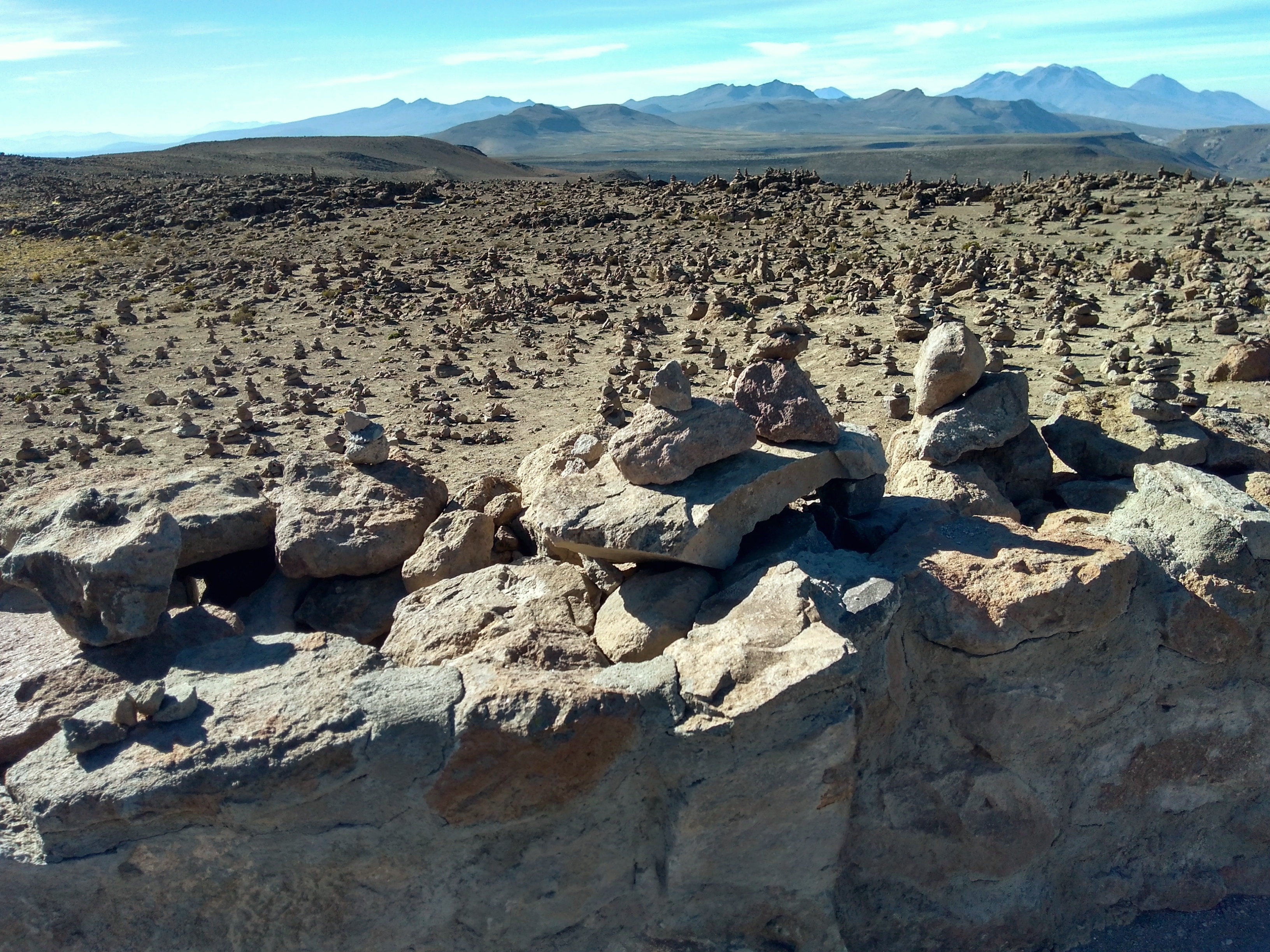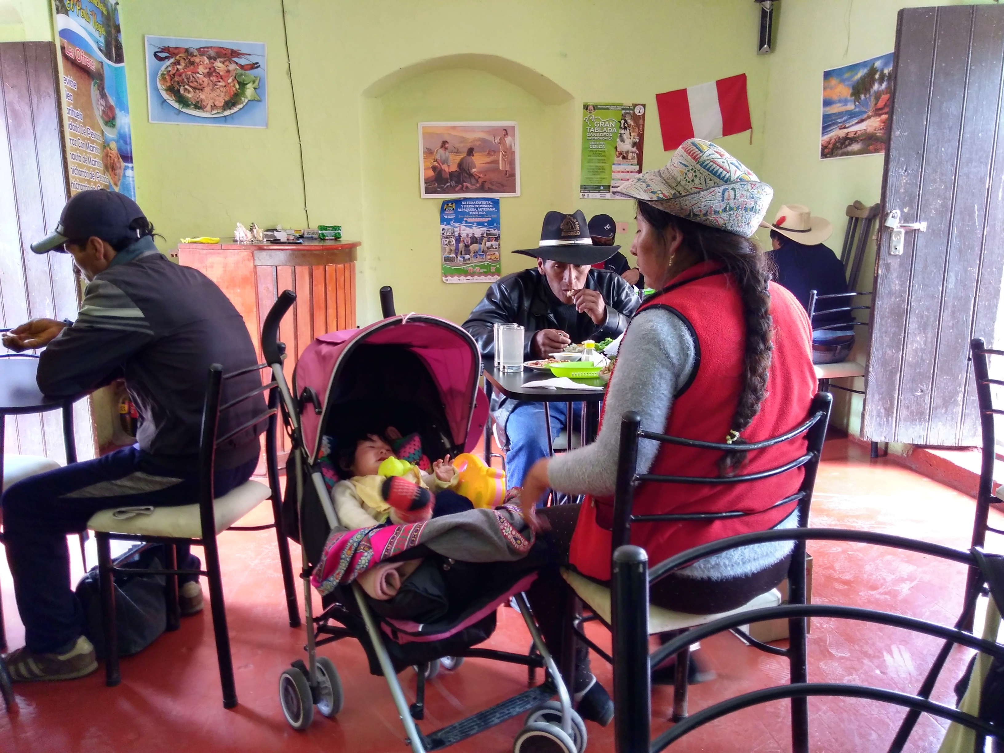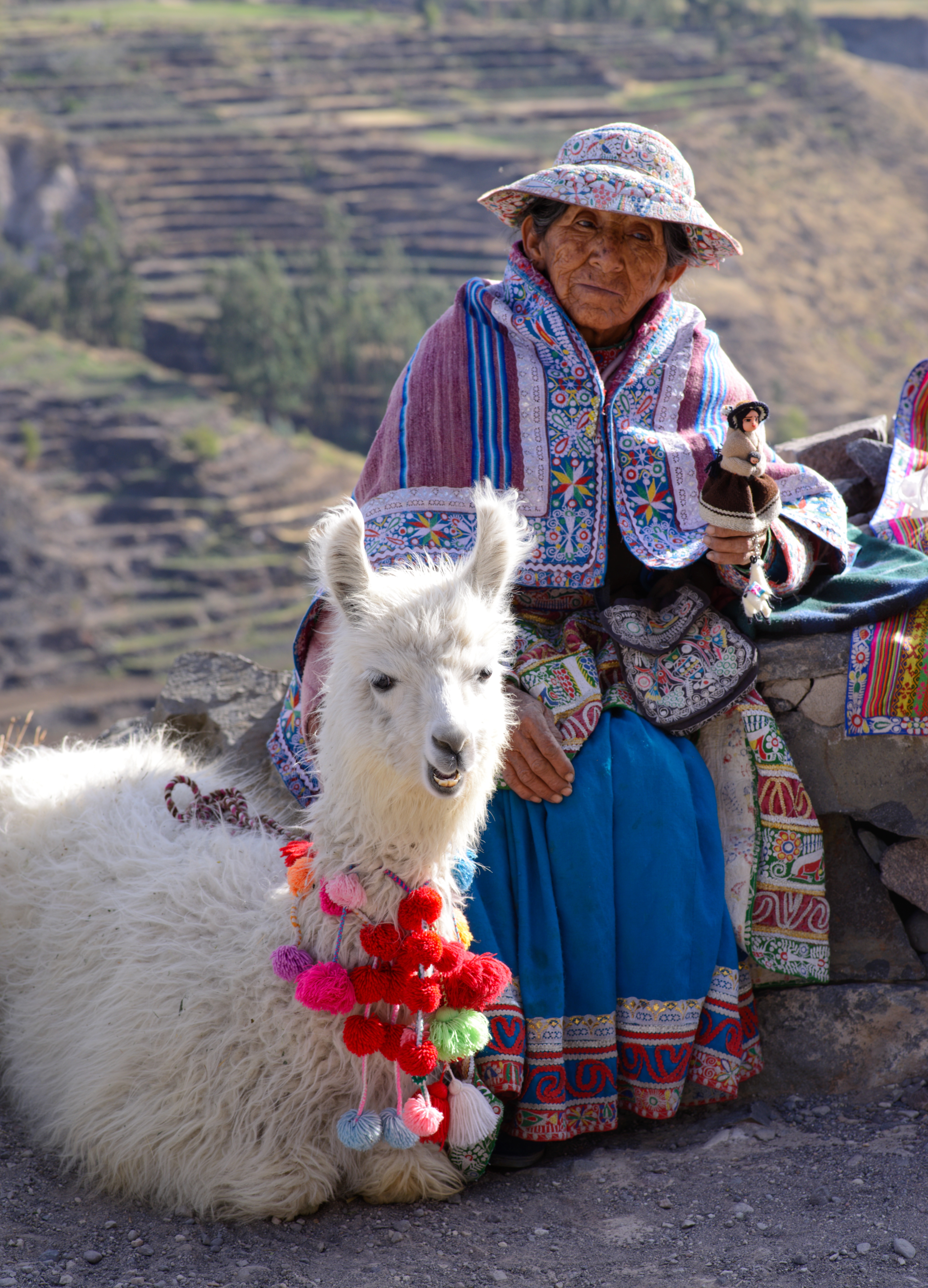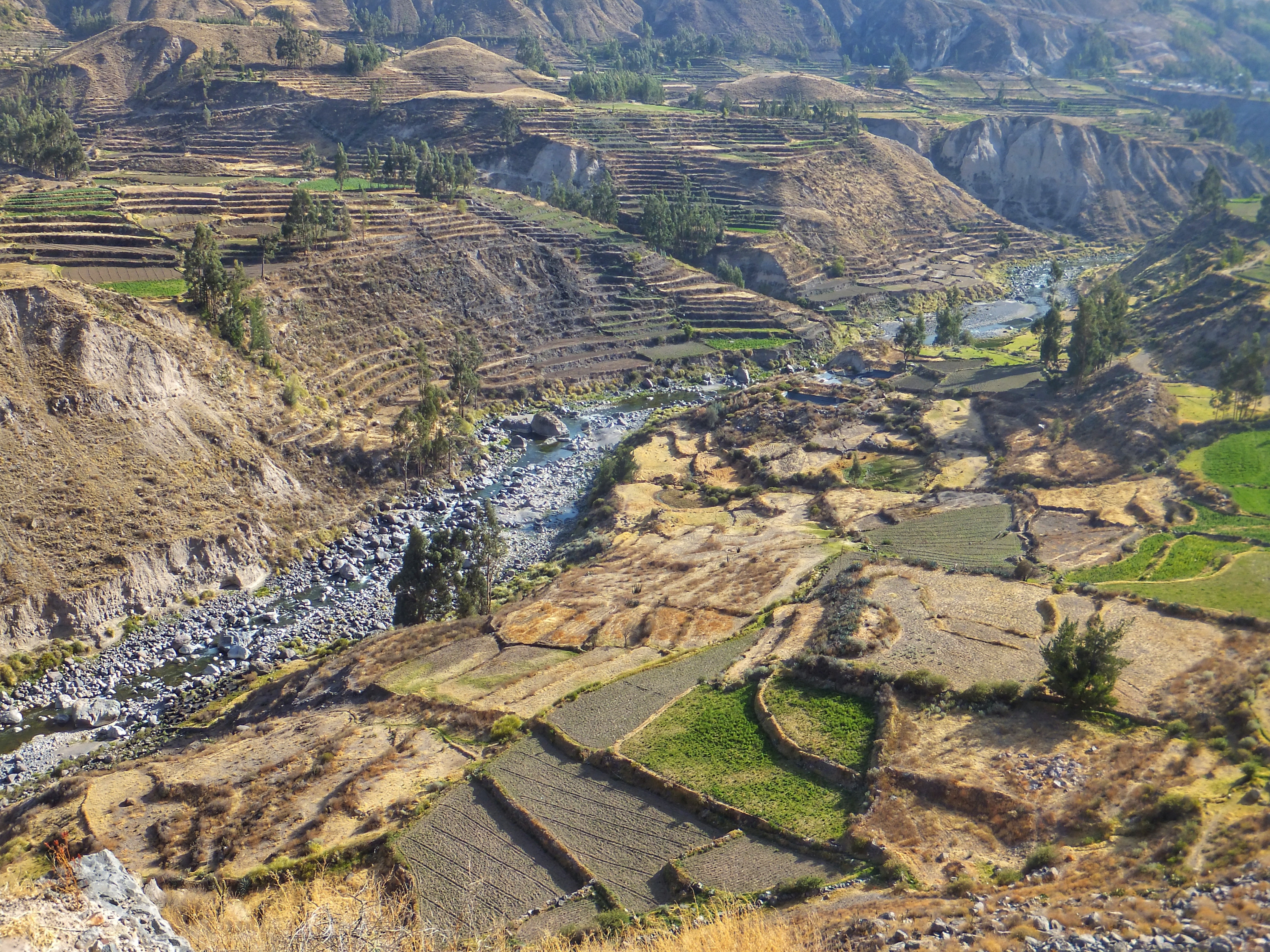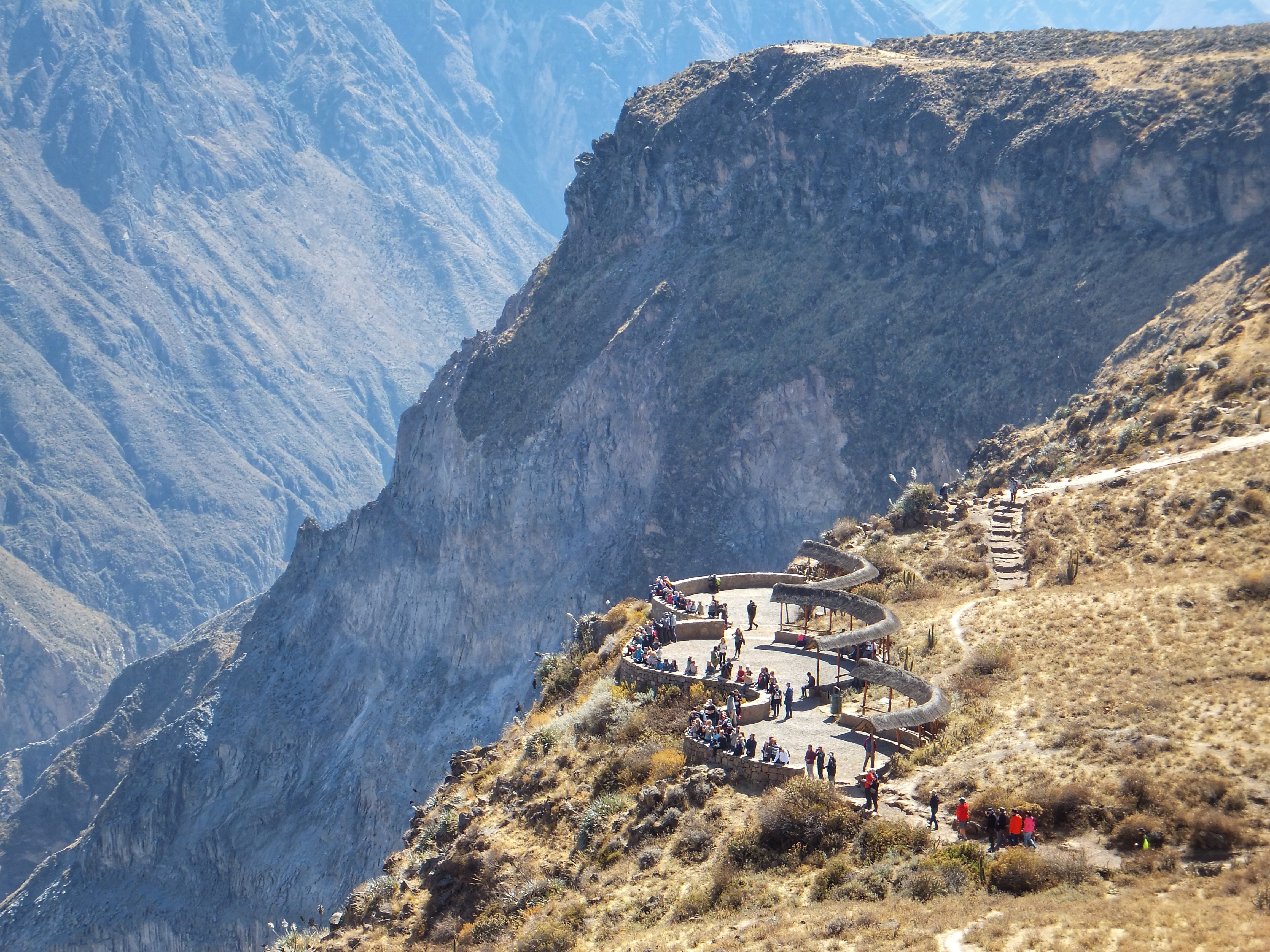 Um 5:30 klingelte der Wecker, weil wir schon um 6:30 Uhr für unseren Ausflug durch den Colca Canyon abgeholt wurden. Es war die gleiche Gruppe wie gestern auf der Herfahrt. Mit vielen kleinen Stopps, wo wir immer wieder den Ausblick auf den Canyon genießen konnten, ging es zum Cruz de Condor, wo in den frühen Morgenstunden zahlreiche Condore ihre Kreise ziehen. Hier hatten wir zum Glück ausreichend Zeit, um diese majestätischen Vögel zu bewundern. Mit weiteren Zwischenstopps ging es wieder zurück nach Chivay, wo wir die Gruppe verließen, die noch ein Mittagessen in einem Touristenlokal hatte. Wir gingen zurück zum Hotel, das jedoch geschlossen war. Zufällig hatten wir unterwegs ein kleines unscheinbares Restaurant gesehen. Dort teilten wir uns eine wunderbare Ceviche (rohe in Zitrone angemachte Meeresfrüchte). Nachmittags machten wir noch einen kleinen Spaziergang, wobei wir zufällig auf eine alte Ansiedlung aus der Prä-Inka-Zeit trafen. Ein Arbeiter, der dort gerade Kakteen einpflanzte erzählte uns ein wenig darüber, z. B. dass es sich bei den Steinhaufen tatsächlich um Häuser handelte. In einem der Häuser gab es sogar ein kleines Museum. Im Dorf gab es eine große Sonnenuhr und auch ein Kolosseum. Natürlich mussten wir die Akustik testen: Michi unten und Aneta im Publikum. Das war lustig. Nach einem frühen Abendessen gingen wir auch wieder früh ins Bett. Die lange Fahrt nach Cusco morgen beginnt bereits um 7:00 Uhr.