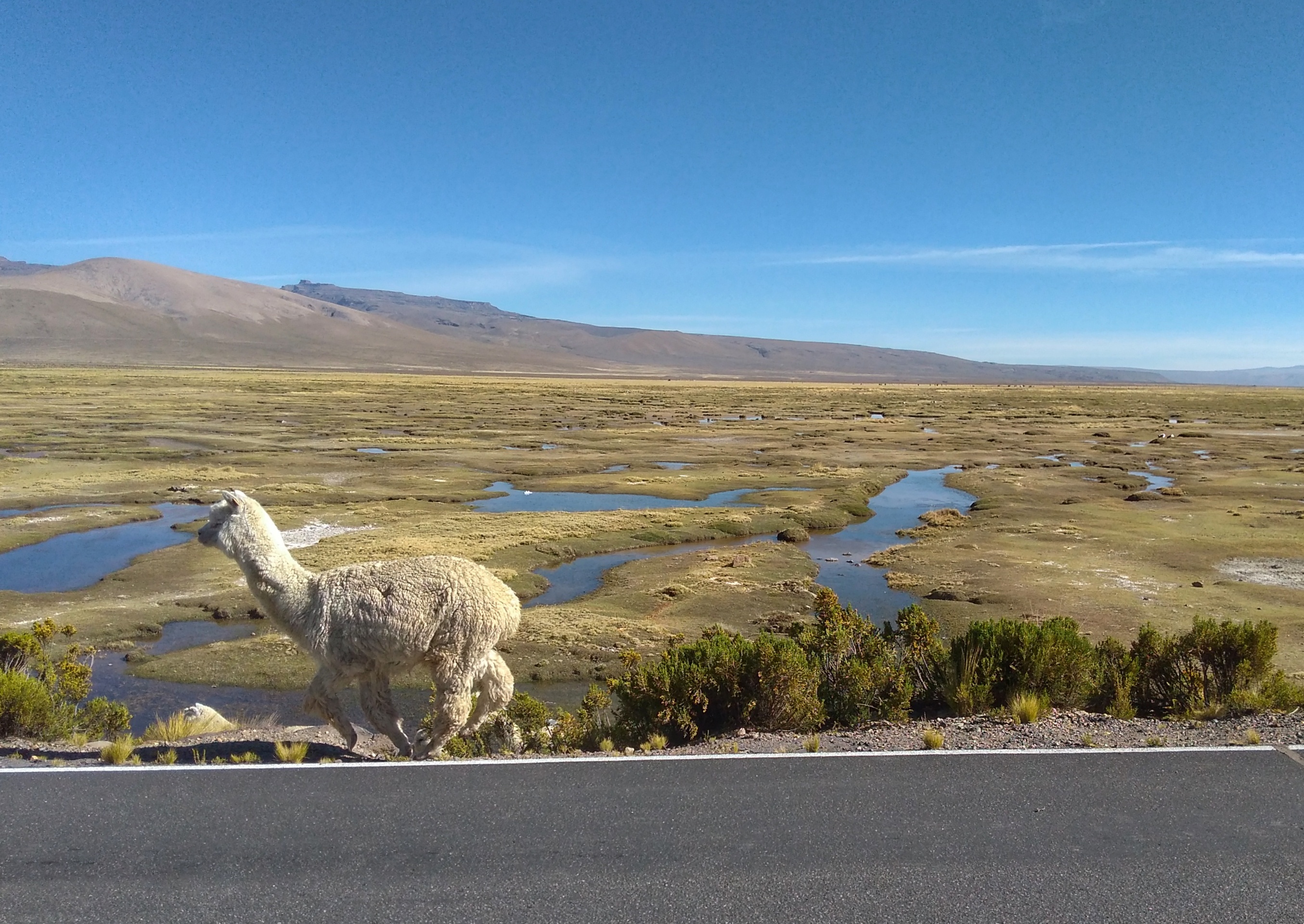 Und schon wieder durften wir früh aufstehen. Nach dem Frühstück gingen wir zum Place de Armas, wo uns bereits unser Bus nach Cusco erwartete. Leider war es erneut nur ein Kleinbus, der noch nicht einmal voll besetzt war. Aber eben kein Video und auch keine bequemen XXL-Sitze, wie wir es von unseren Cruz-Del-Sur-Fahrten gewöhnt waren. Die Reiseroute war dann auch nicht ganz so, wie wir uns das vorgestellt hatten. Anstatt in Richtung Cusco nach Norden zu fahren, ging es bis fast nach Arequipa zurück, dann durch den Nationalpark um schließlich nach 2 Stunden Fahrzeit knapp nördlich von Chivay endlich in Richtung Cusco zu fahren. Grund für diesen Umweg war, dass die direkte Route über etliche Kilometer über eine buckelige unbefestigte Straße gegangen wäre. Die Stopps unterwegs waren diesmal sehr sehr kurz. Bereits nach zwei Fotos wurden wir schon wieder zum Auto zurückgehetzt. Am Ende erreichten wir Cusco um 16:15 Uhr. Nach einer kurzen Fahrt im Taxi bezogen wir unser Appartement für die nächsten Tage. Zum Abendessen gingen wir noch einmal zu Fuß in die nahegelegene Altstadt und probierten ein typisch peruanisches Getränk: Chicha. Das wird u. a. aus einem lilafarbenen Mais hergestellt und besteht ansonsten aus Ananas und Quitten, die ausgekocht werden. Das ganze wird dann noch mit Zitrone und Zucker abgeschmeckt. Sehr lecker und genau die richtige Menge Flüssigkeit in der trockenen Bergluft hier.