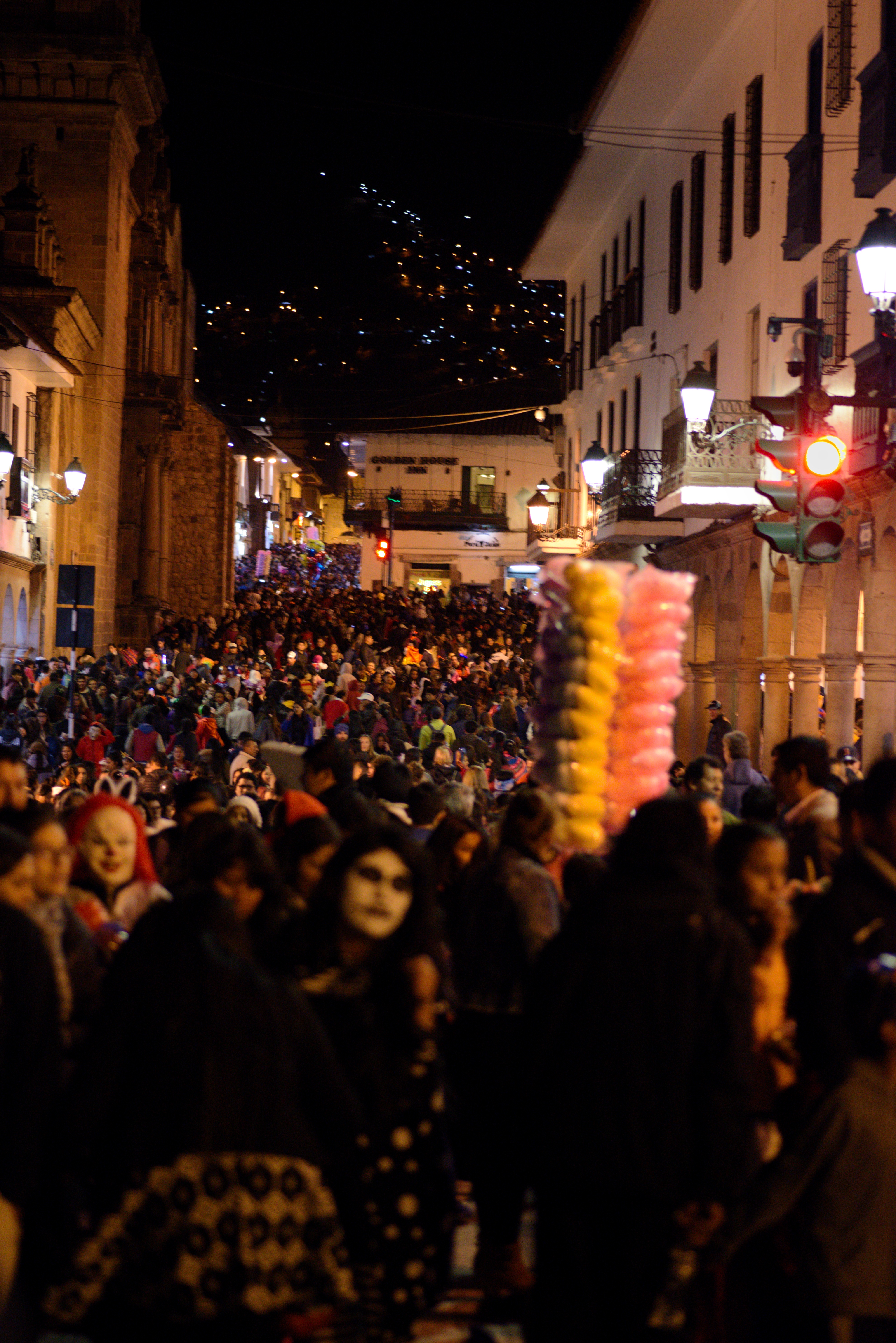 Heute erkundeten wir die Stadt. Unsere Unterkunft war nur knapp 1 km von der Altstadt entfernt, so dass wir alles zu Fuß erreichen konnten. Wir liefen zum Kloster Qurikancha, dass inmitten einer Inka-Stätte errichtet worden ist. Es war eine spannende Kombination bei diesem Bauwerk und das Museum sehenswert. Weiter ging es an zahlreichen Indigo-Märkten vorbei zu Plaza de Armas, der wieder einmal der schönste in ganz Peru sein soll. Die Gebäude am Rande des Platzes sind alle im viktorianischen Stil gehalten. Und auch KFC und McDonalds machen da keine Ausnahme. Den Rest des Tages liefen wir einfach durch die vielen kleinen Straßen in der Altstadt und genossen das Flair dieser Stadt. Am späten Nachmittag begannen auf den Plätzen die ersten Vorbereitungen für Halloween. Zahlreiche Schminkstände begannen mit ihrer Arbeit. Am Abend gingen wir dann zum Plaza de Armas zurück und tauchten ein in die heitere Menschenmasse. Überall waren kleine und große Kinder mit zum Teil sehr aufwändigen Masken und Kostümen unterwegs. Es war eine ganz tolle Stimmung und es hat unglaublich viel Spaß gemacht, hier dabei gewesen zu sein. Später kämpften wir uns durch die Menge die Straßen entlang zu einem kleinen peruanischen Restaurant, aßen dort etwas und machten uns dann auf den Heimweg.
