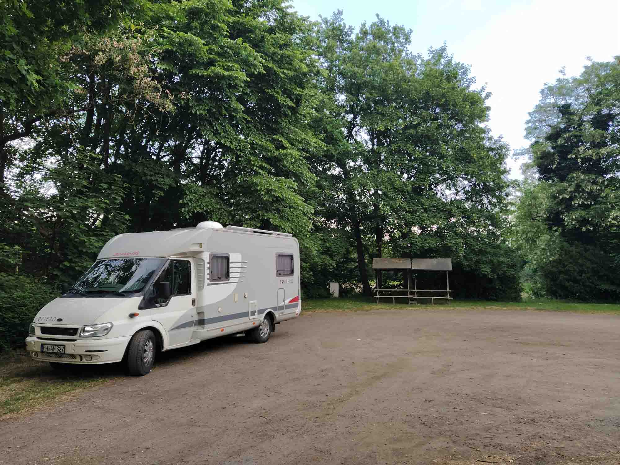 Den Tag verbrachte Michael noch damit, das Auto vollständig zu beladen. Am Nachmittag machten wir noch einen letzten gemeinsamen Spaziergang durch die Kleingartenkolonie. Natürlich im Regen, wie es sich für Hamburg gehört. Bei der Abfahrt um 15:30 Uhr schien dann aber schon wieder die Sonne. Die Fahrt begann mit einem Tank- und Gasstopp und ging dann weiter entlang der Elbe, die wir bei Geestacht überquert haben, weiter an Lüneburg vorbei bis nach Eschede. Dort fanden wir einen Entsorgungsplatz direkt am Schützenplatz, auf dem allerdings ein Rummel seinen letzten Tag hatte. Wir standen zwischen Autoscooter und Blaskapelle und hatten von beidem etwas. Um kurz vor 22 Uhr war zum Glück Schluss. Dachten wir zumindest. Allerdings hatten wir bei unser Rechnung die Jugendlichen mit ihren aufgemotzten Autos und vor allem der überragenden Soundanlage nicht berücksichtigt. Diese beschallte uns dann noch bis in die frühen Morgenstunden.