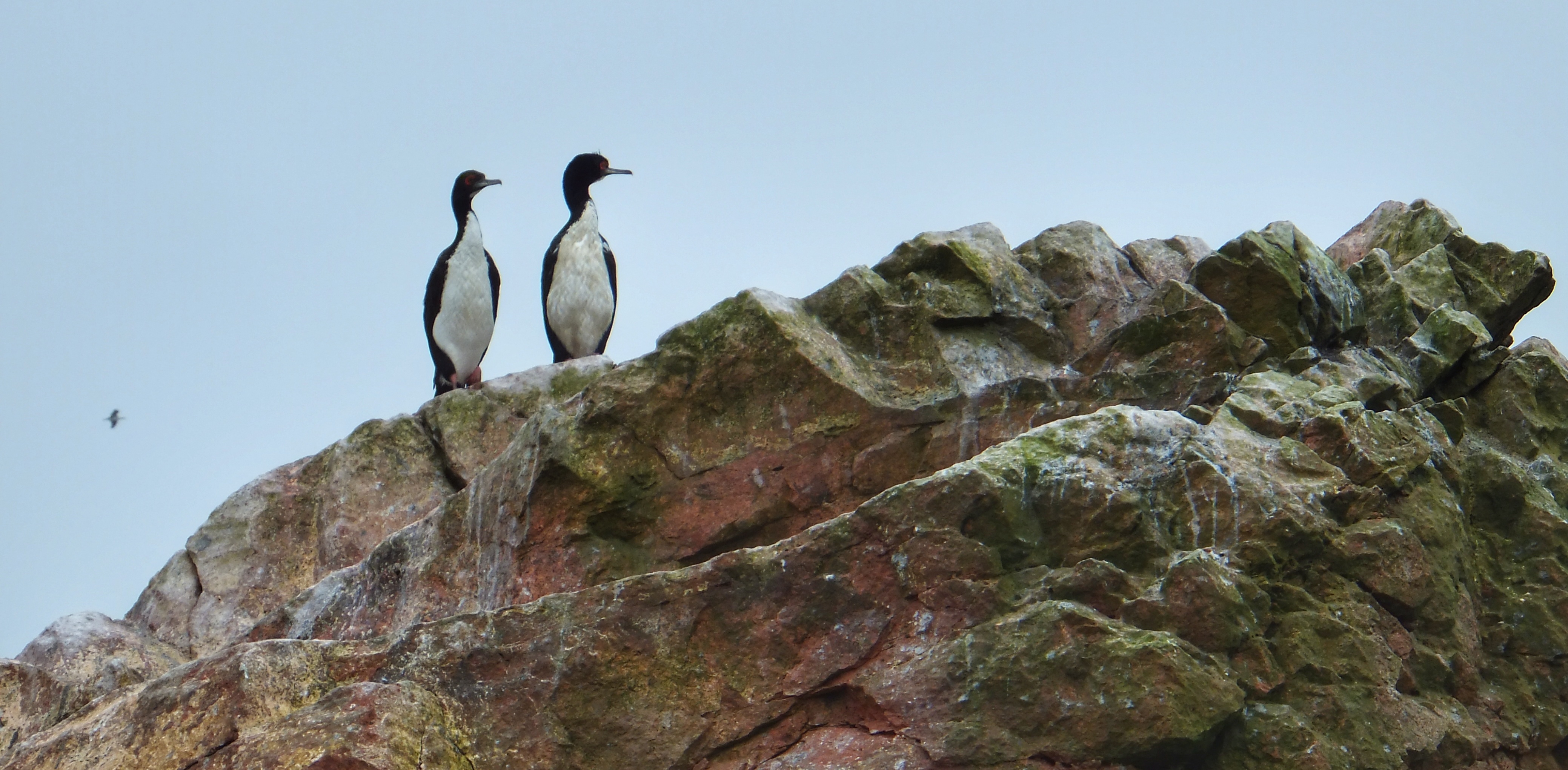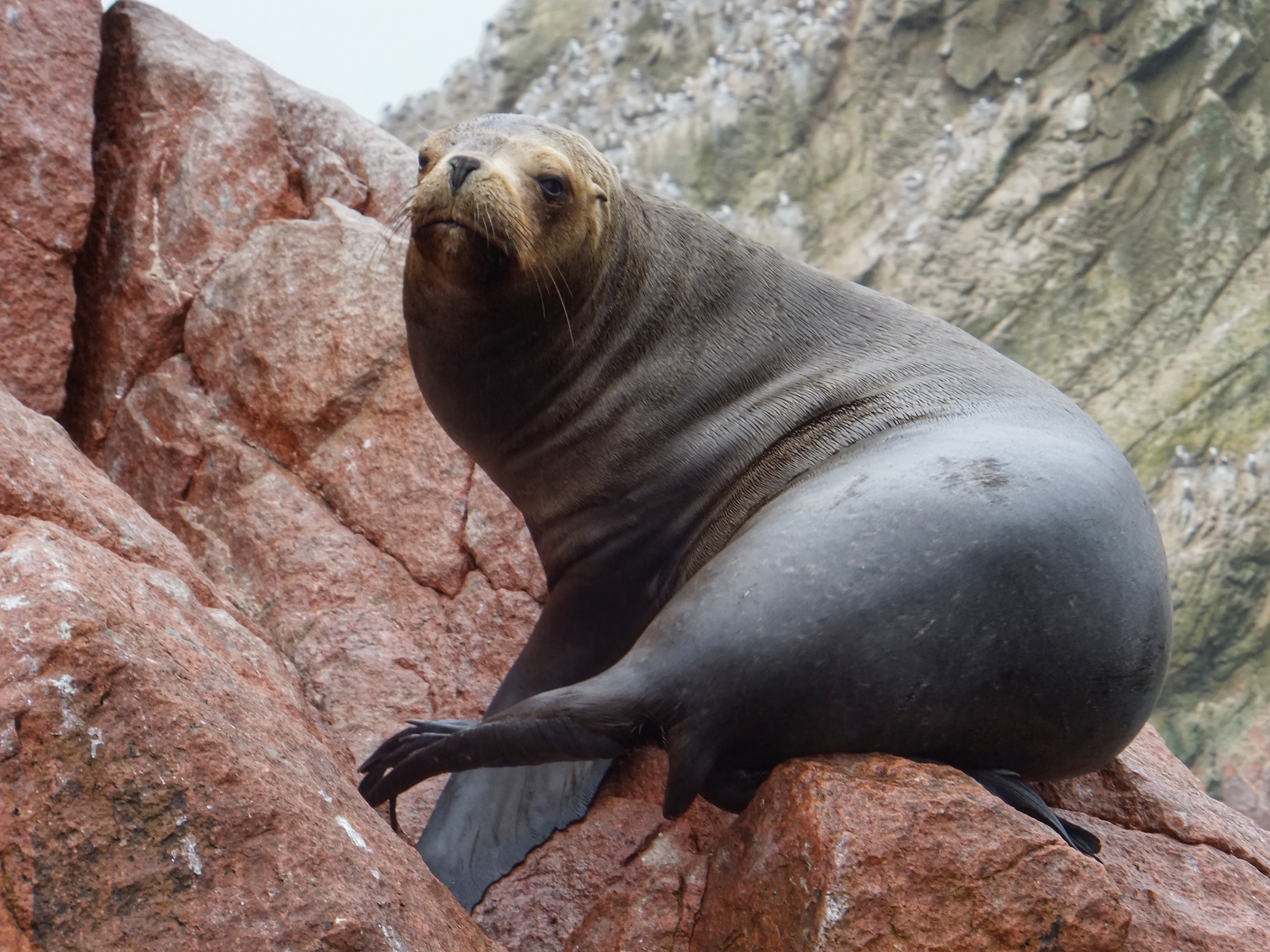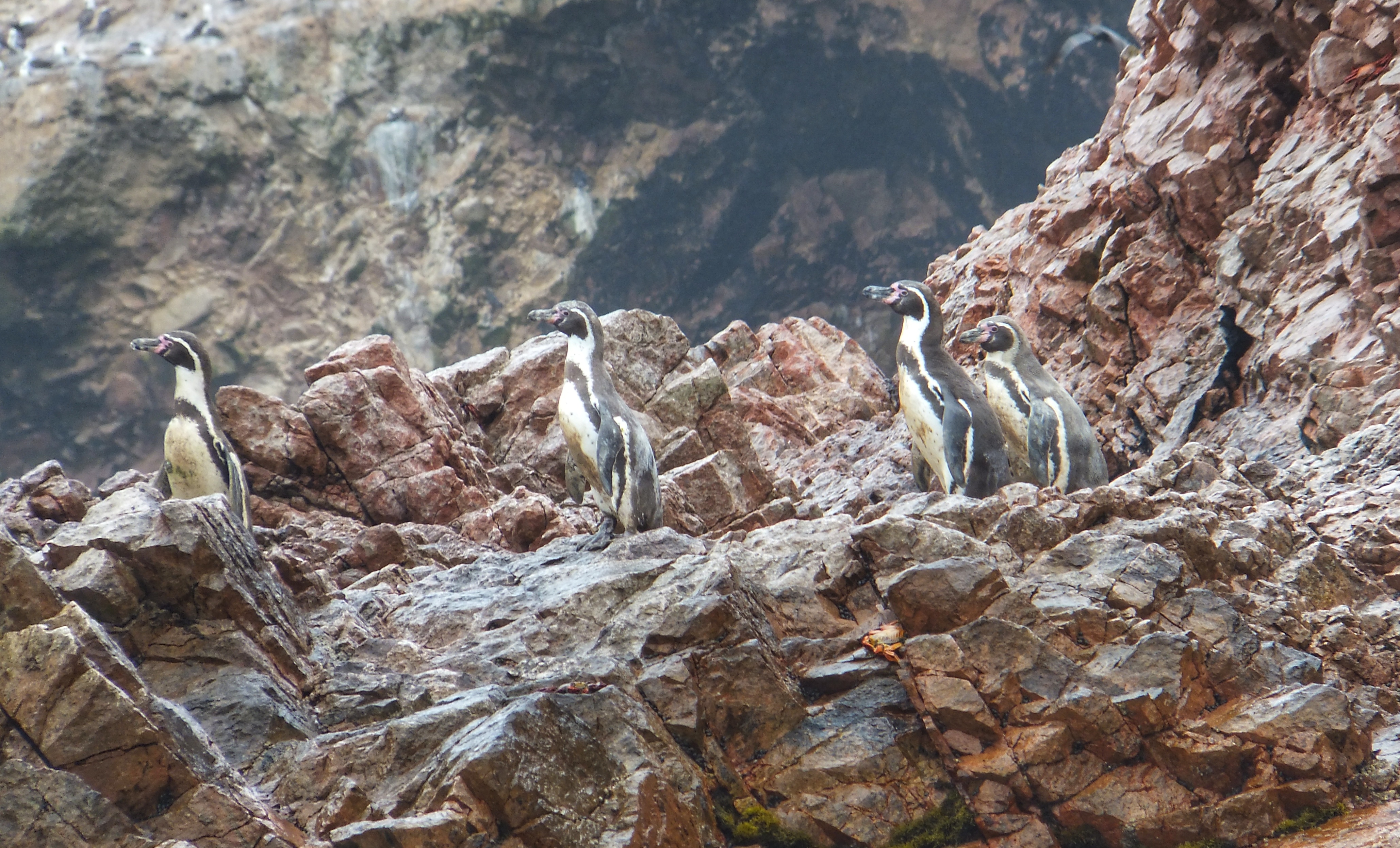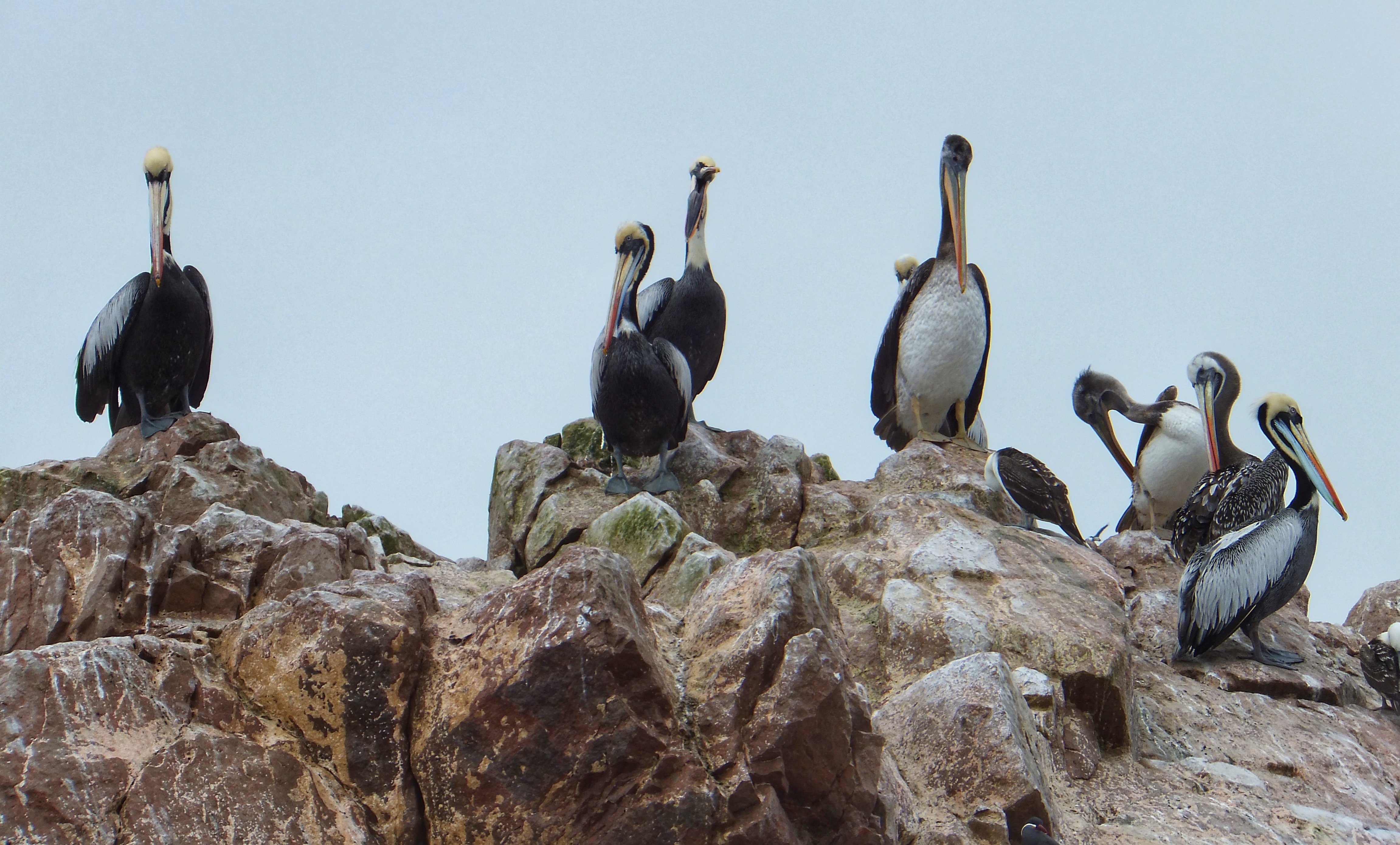 Obwohl wir schon um 6:40 für die etwa einstündige Fahrt nach Paracas verabredet waren, hatten wir noch genügend Zeit zu frühstücken. In dem kleinen Minibus durften wir während der Fahrt vorne sitzen. In Paracas leitete uns unser Fahren an eine langen Reihe wartender Passagiere vorbei zum nächsten freien Boot für unsere Tour zu den Ballestas, einer kleinen unter Naturschutz stehenden Inselgruppen. Dort bekamen wir allerlei Tiere zu sehen. Vor allem Vögel wie Kraniche, Pelikane und Humboldt-Pinguine aber auch Seelöwen, Krabben, Seesterne, Muscheln und einen Taucher. Wir lernten, dass auf den Inseln auch heute noch Guano geerntet wird, aber nur alle acht Jahre, wenn sich der Abbau wieder lohnt. Eine Nasca-Zeichnung gab es ebenfalls. Während der Überfahrt war es sehr kalt, der Himmel war bedeckt und die Wolken hingen tief. Aber als wir bei den Ballestas ankamen, klarte es auf.