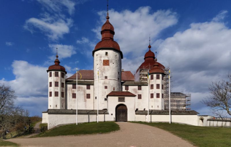 Heute wollen wir zum Schloss Läckö auf der östlichen Seite des Vänernsees, in der Nähe von Lidköping. Aber wir haben am Montag das letzte Mal unsere Gasflasche füllen lassen und wissen inzwischen, dass die wenigen Gashändler, die es hier gibt, am Wochenende nicht geöffnet haben. Also fuhren wir zunächst das kurze Stück nach Skövde zurück, um die Flasche wieder füllen zu lassen. Wir waren sehr sparsam in den letzten Tagen. Obwohl es Nachts immer bis auf 0 Grad zurückgeht, haben wir in den letzten vier Tagen nur 11 l verbraucht. Die Flasche hätte locker noch über das Wochenende gereicht. Aber man weiß nie, wofür es gut ist. Die Fahrt nach Läckö dauerte eine Stunde und dort wurden wir mit der ersten Möglichkeit überrascht, unser Grauwasser und die Toilette kostenlos entleeren zu können. Nur Frischwasser gab es dort noch nicht, da es noch abgestellt war. Aber das bekommen wir ja an jeder Tankstelle. Wir machten dann einen kleinen Spaziergang in der Frühlingssonne um das Schloss herum, die heute wieder wunderbar schien. Es war beinahe, als hätte es den gestrigen Tag mit Schnee nie gegeben. Das Schloss selbst hatte noch geschlossen, und auch das Hafenbecken, in dem im Sommer mit Sicherheit viele Boote liegen, war wie ausgestorben. Vermutlich ist das immer noch der frühen Jahreszeit geschuldet, denn aus Corona machen sich die Schweden nicht allzu viel. Als Nachtplatz suchten wir uns einen kleinen Wald am Vänersee aus, in dem wir - wie immer - ganz alleine nur mit den Geräuschen der Natur schlafen gehen konnten.