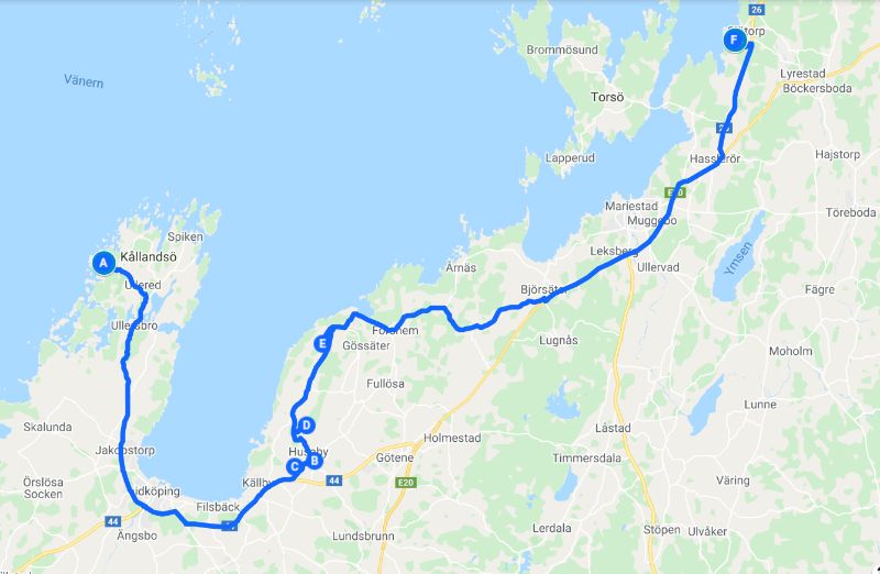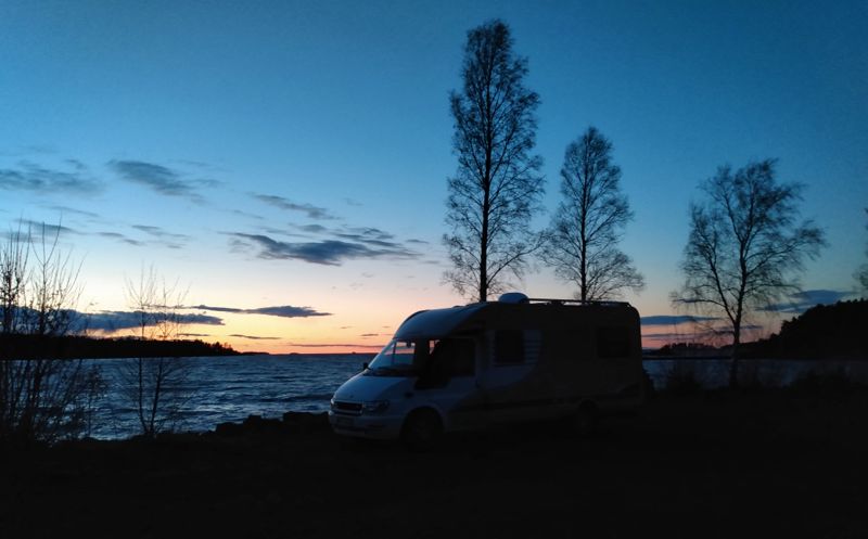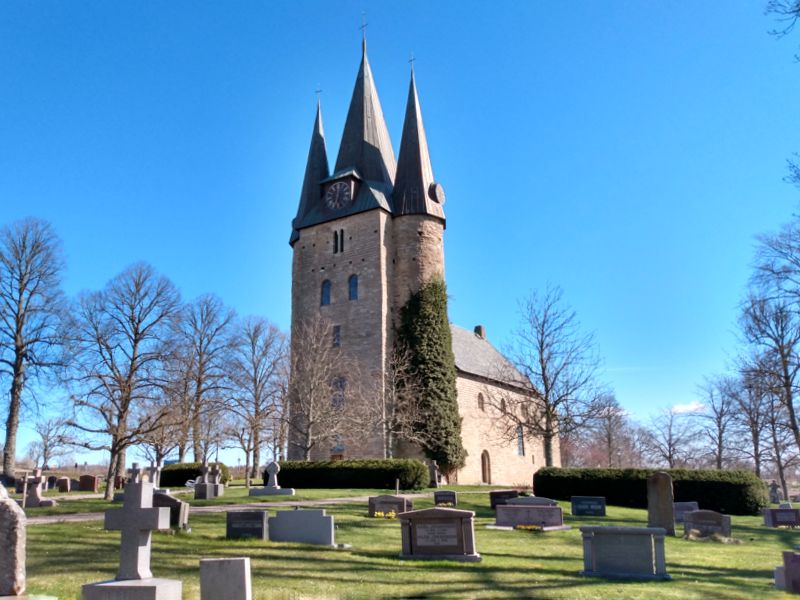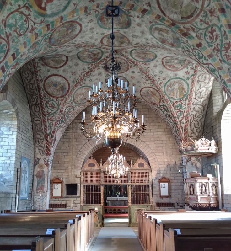 Schön sonnig aber unglaublich kalt war es, als wir bei stürmischem Wind in die alte Kirche von Husaby gingen. Anders als die innen weiß getünchten Kirchen, die wir bisher gesehen haben, waren hier Decken und Wände schön bemalt. Eine wirklich schöne Kirche. Ganz in der Nähe gab es ein altes Gemäuer unter einem Felsvorsprung, in dem sich 1860 ein Aussteiger - ja, so etwas gab es auch zu dieser Zeit schon - mit seiner Frau eingerichtet hat. Unabhängig von der Gesellschaft lebte er bis ins hohe Alter in dieser kleinen Unterkunft, die dann auch noch geplündert wurde. Es fiel uns schwer zu glauben, dass dies einmal ein gemütliches Heim gewesen sein soll. Wir fuhren weiter zum Matorpsfallet, einem kleinen Wasserfall, den wir uns zunächst erlaufen mussten. Quer durch einen an einen Olivenhain erinnernde Landschaft gingen wir auf einen vielleicht 20 m hohen Tafelberg, dorthin wo das Wasser in einem kleinen Rinnsal den Berg hinunterlief. Von unten war er etwas besser zu sehen. Aber das interessanteste waren noch die geschichteten Felsen ringsherum und der Bewuchs der sich dort an der Wand gebildet hatte. Wir genossen den Spaziergang, inzwischen war es merklich wärmer geworden und am Ende durfte sogar die Jacke geöffnet werden. Unser nächstes Ziel war ein Steinbruch, auf den wir von einem oberhalb gelegenen Parkplatz einen sehr schönen Blick hatten. Dann machten wir uns schon wieder auf den Weg zu unserem nächtlichen Stellplatz. Da wir morgen noch einmal in den Tiveden Nationalpark wollen, suchten wir uns einen Platz ein ganzes Stück weiter nördlich am Vänernsee. Hier konnten wir sogar noch ein wenig angeln, hatten aber leider erneut kein Glück.