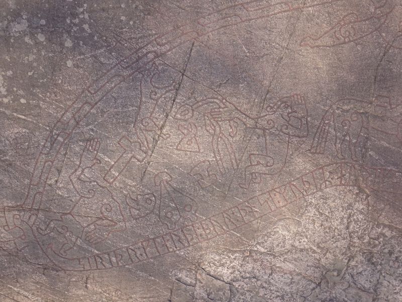 Nach einem morgentlichen Drohnenflug, inzwischen sind wir schon ganz gut geübt, fuhren wir nach Örebro, um uns das Freilichtmuseum Wadköping anzusehen. Das "Museum" besteht aus vielleicht 20 älteren Gebäuden, in denen sich kleine Läden, Handwerksbetriebe und Museen befinden. In den ersten Laden zog es uns gleich hinein. Es gab diverse hochwertige Artikel zu Harry Potter, wie z.B. eine Nachbildung von Olivanders Zauberstabladen. Jeder von uns bekam - natürlich zur Kontrolle der max. 6 Personen, die wegen Corona gleichzeitig im Geschäft sein durften - einen in die Hand. Aber auch diverse wundersame Brillen waren zu bestaunen. Beim Weitergehen stellten wir aber fest, das bis auf einen kleinen Andenkenladen noch alles geschlossen war. Leider auch die kleine Silberschmiede, die wir uns gerne angesehen hätten. Wir fuhren weiter, füllten unterwegs unseren Wassertank und erreichten dann Sigurds Ristningen, Felsritzungen, die zur Wikingerzeit entstanden sind. Diese waren auf einem großen Fels angebracht. Für ein gutes Foto leider zu hoch und zu schräg. Aber wir hatten ja unsere Drohne dabei. Also schnell noch einmal zurück zum Auto, Drohne geholt und dann ein paar tolle Fotos im richtigen Winkel geschossen. Zu guter letzt kam auch noch die Sonne raus. Perfekt. Danach noch eine kurze Fahrt zum nächsten Stellplatz, wieder an einem See und dann haben wir es uns wieder einmal in wunderbarer Ruhe gemütlich gemacht. Haben wir eigentlich schon einmal erwähnt, wie wohltuend die Geräusche der Natur sind?