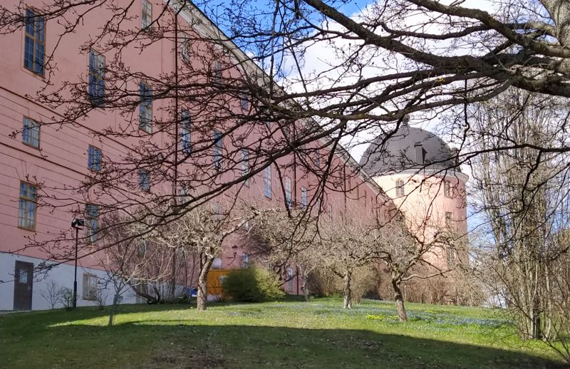 Als wir aufwachten stellten wir fest, dass es im Wohnmobil etwas kälter als üblich war. Das Gas war über Nacht so weit leer gelaufen, dass die Heizung nicht mehr ansprang. Zum Glück reichte es noch für einen morgentlichen Kaffee. Also fuhren wir nach dem Frühstück erst zum Gasflasche auffüllen nach Uppsala. Nach ein paar Diskussionen hatten wir dann auch den richtigen Preis. Ist schon merkwürdig, das das gleiche Gas unterschiedlich viel kostet, je nachdem, ob die Gasflasche im eingebauten Zustand befüllt wird oder ob sie herausgenommen und im Laden gefüllt wird. Aber egal, jetzt reicht es wieder für eine Woche. In der gesamten Stadt scheint es nur kostenpflichtige Parkplätze zu geben. Also stellten wir uns gleich auf den Parkplatz am Dom und mussten dann leider an der Kirchentür feststellen, dass der Dom geschlossen war. Im Internet stand, dass er jeden Tag von 9 bis 18 Uhr geöffnet sei. War er aber nicht. Wir sprachen mit einem älteren schwedischen Paar die gerade vorbeikamen. Die beiden sagten, dass dies vermutlich daran läge, dass heute Valborg (also Walpurgisnacht) sei. In ganz Schweden ein ganz besonderer Feiertag, an dem normalerweise hunderttausende nach Uppsala kommen und auf den Straßen den ganzen Tag gefeiert wird. Abends lodern dann überall Feuer. Aber dieses Jahr ist wie im letzten Jahr alles abgesagt worden. Aber der Dom war trotzdem zu. Wir gingen noch zum Schloss hinüber, das gleich auf dem angrenzenden Berg stand und mit seinen nur zwei Türmen etwas merkwürdig aussah. Dann fuhren wir weiter, um uns einen Stellplatz für das Wochenende zu suchen. Den ersten Platz, einen kleinen Wanderparkplatz verließen wir gleich wieder, da wir befürchteten hier morgens von Autos geweckt zu werden. Eine halbe Stunde später standen wir auf einer kleinen Wiese im Wald, die direkt an einem See mit Bootsanleger und Badestelle grenzte. Dies sah sehr einladend aus uns wir fühlten uns auch sofort wohl hier. Kurze Zeit später bruzzelten die Hähnchenkeulen und das Kräuterbaguette auf dem Grill.