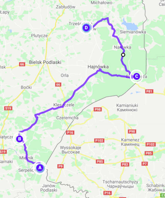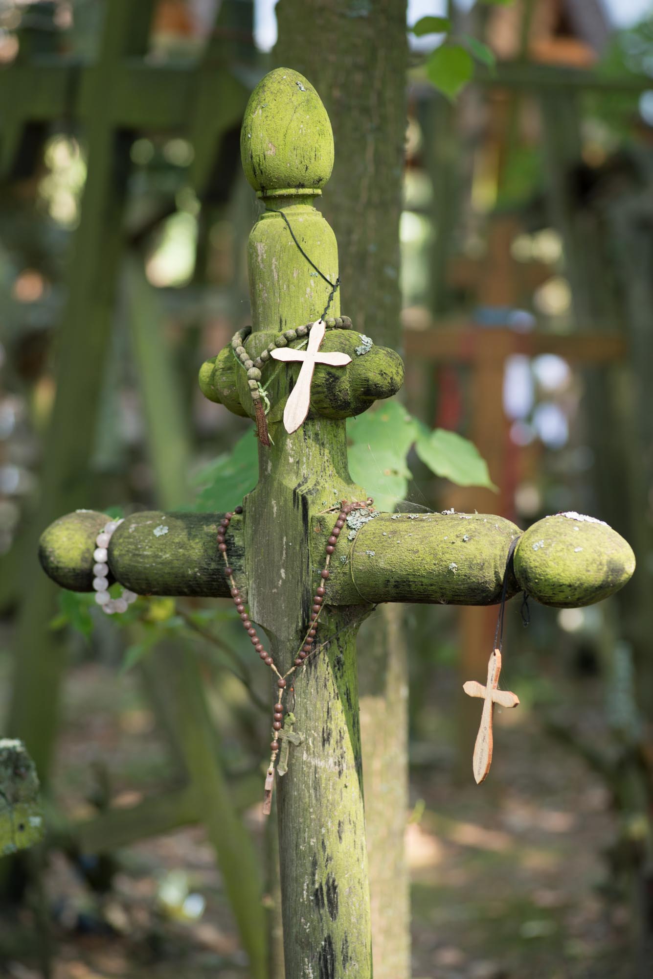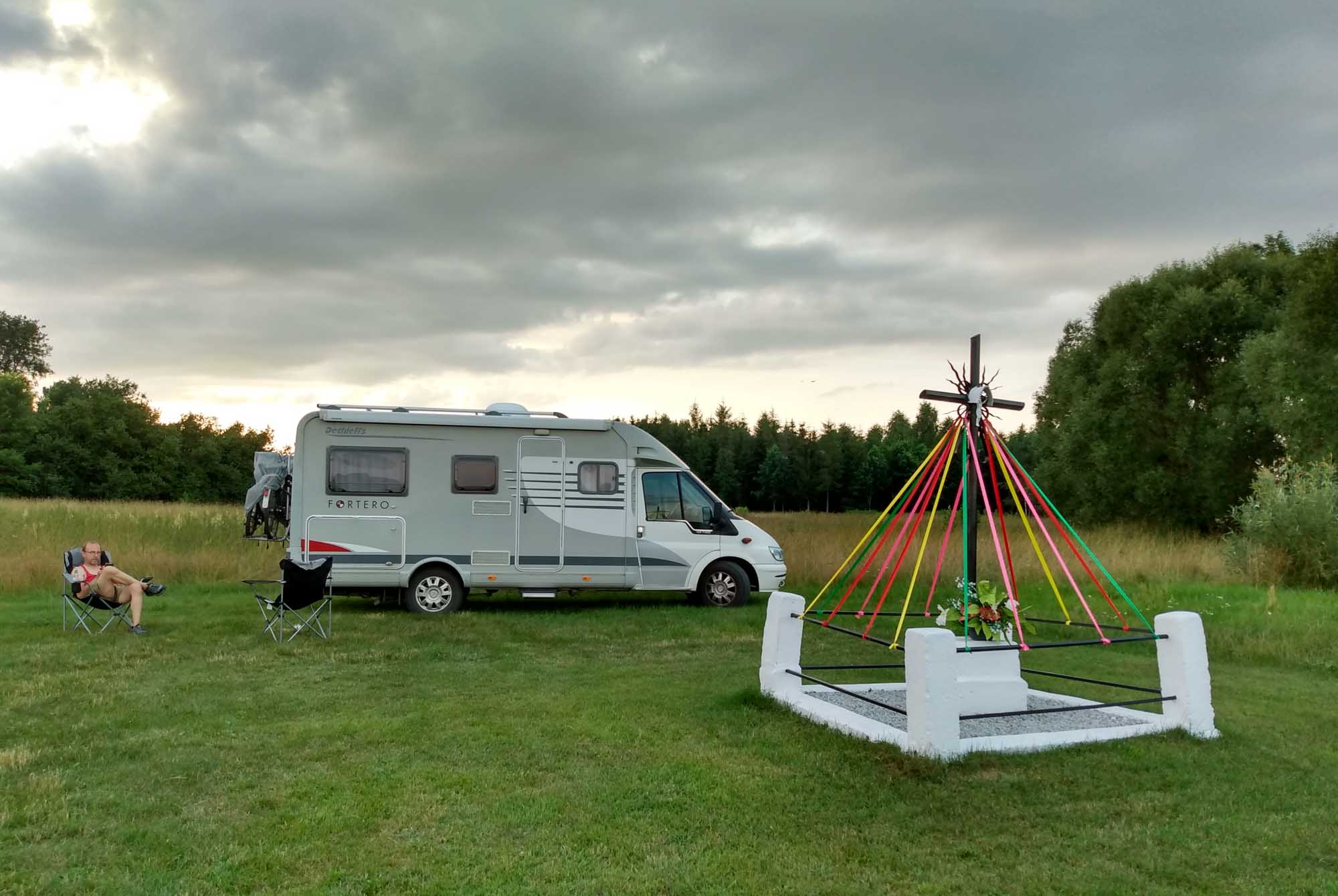Als wir morgens um 7:40 Uhr (!!!) aufstanden, hatten die Polen ihr Zelt bereits abgebaut und waren verschwunden. Wir freuten uns über die Kühle des frühen Morgens und versuchten uns noch mit Angeln bevor wir nach Grabarka fuhren, wo es einen Berg mit etwa (keiner hat sie wirklich gezählt) 7000 Kreuzen gibt. Als wir ankamen fand in einer der beiden Kirchen ein Gottesdienst statt, in der anderen eine Beerdigung. Es sind sehr viele offensichtlich sehr alte Kreuze aufgestellt worden, es gibt aber auch zahlreiche Kreuze aktuellen Datums, die dort eng bei eng stehen. Etliche von ihnen sind behängt mit Rosenkränzen oder anderen Ketten oder es stehen Figuren darauf. Danach fuhren wir zum Bialowieza Nationalpark, in dem es die letzten wild lebenden Bisons in Europa gibt. Gesehen haben wir sie auch. Allerdings die in dem kleinen Wildpark kurz vor der gleichnamigen Ortschaft. Es war auch heute über 30 Grad heiß und so waren wir froh, dass es nur ein vergleichsweise kleiner Spaziergang war. Anschließend fuhren wir noch gemütlich durch den Nationalpark und ließen den letzten Urwald Europas auf uns wirken. Den Schlafplatz fanden wir auf halben Weg nach Białystok an einem kleinen Fluss.