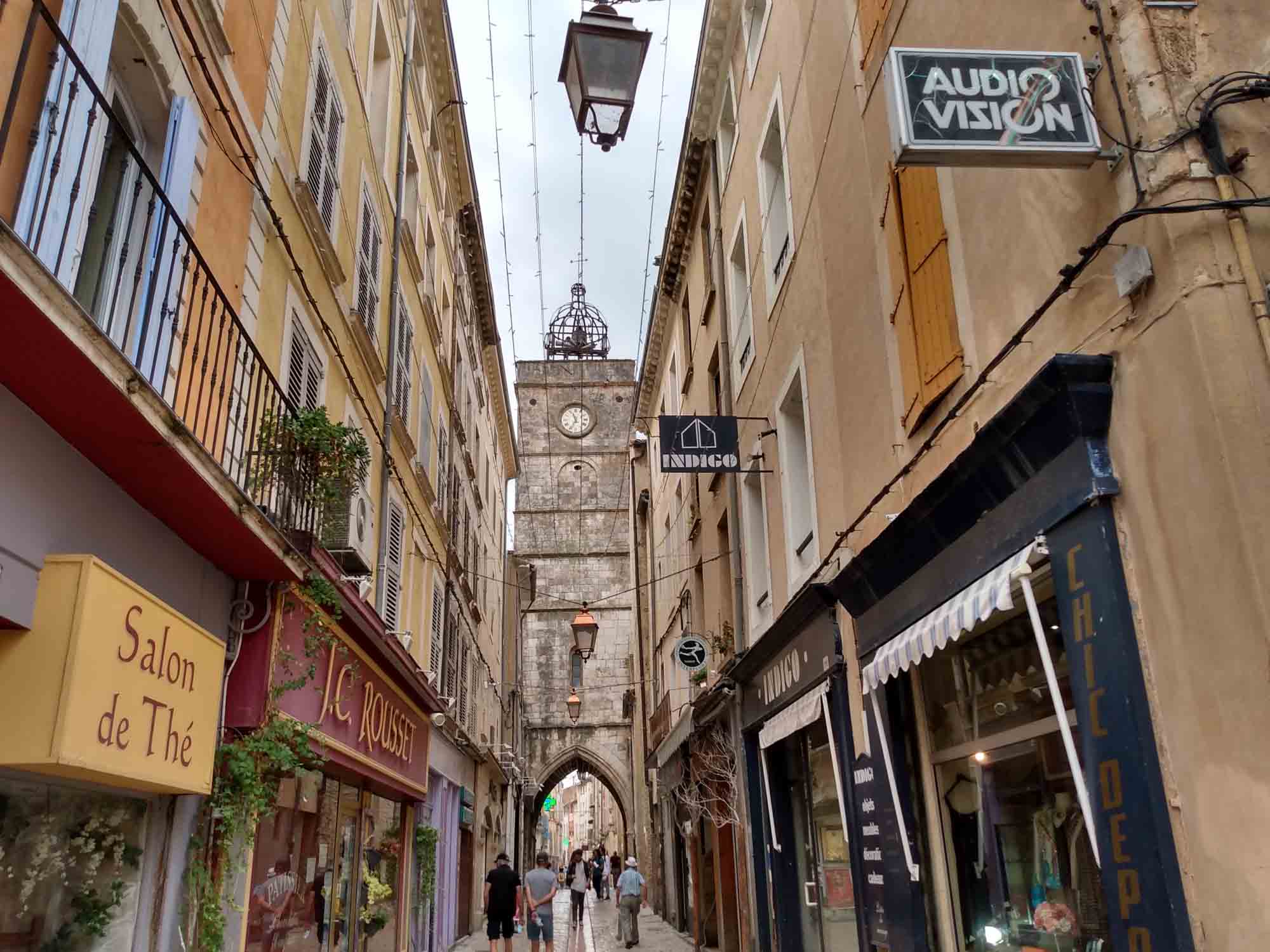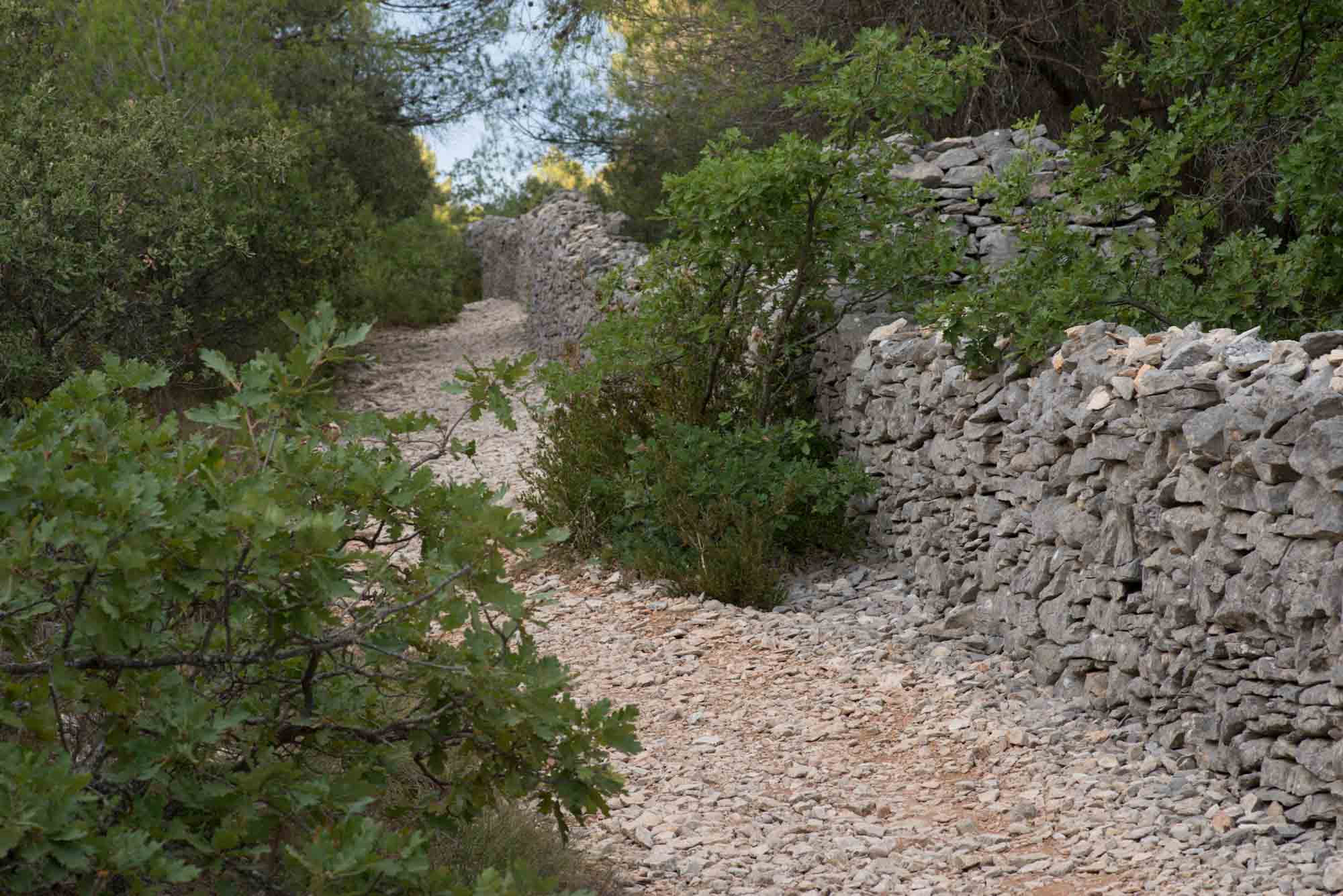 Wir bedauerten ein wenig, diesen schönen Platz zu verlassen, aber das Wetter machte uns den Abschied ein wenig leichter. Es war sehr windig und auch ziemlich bedeckt. Als erstes fuhren wir nach Apt, laut Reiseführer eine sehr sehenswerte Stadt. Den Wagen stellten wir auf einen Parkplatz unweit der Altstadt und gingen zu Fuß durch die enge Hauptgasse mit zahlreichen kleine Geschäften. Diese Straße war recht hübsch aber in der Nebengassen sahen wir recht merkwürdige Leute herumlungern. Die Kathedrale ist in der Stadt fast komplett eingebaut. Innen war sie düster und sah reichlich heruntergekommen aus. Fast würde man meinen, die Maskenpflicht in der Kathedrale wäre wegen des Schimmels an den Wänden und nicht wegen Corona. Insgesamt fühlten wir uns in der Stadt nicht wirklich wohl. Am Eingang des Parkplatzes standen zwei Polizisten und so war zumindest unser Wohnmobil gut bewacht gewesen. Wir fuhren weiter nach Roussilion, um dort die ockerfarbenen Felsen anzusehen. Leider war die Straße durch die Stadt selbst für Wohnmobile gesperrt, so dass wir außen herum fahren mussten. Wir fanden aber trotzdem ein kleines Plätzchen, an dem wir das Ockergestein bewundern konnten. Danach fuhren für zum Abbaye Notre-Dame de Sénanque, einem Kloster nahe des wunderschön auf einem Hügel gelegenen Dorfes Gordes. Diese Ansicht konnten wir uns nicht entgehen lassen. Das Kloster selbst wurde gerade restauriert und die vor dem Kloster liegenden Lavendelfelder blühten natürlich auch nicht mehr. Das Postkartenmotiv mussten wir uns daher auf den Postkarten des Klosterladens ansehen. Schließlich fuhren wir weiter und fanden auf einem kleinen Parkplatz im Wald bei Lagnes einen Platz, auf dem wir gut über Nacht stehen konnten. Zufällig lasen wir auf einem Schild, dass es hier auch noch etwas zu sehen gab. Bei einer kleinen Abendwanderung schauten wir uns daher die 500 m entfernte Pestmauer an, die während der Pest im 17. Jahrhundert errichtet wurde. Wachmänner waren entlang der ca. 20 km langen Mauer aufgestellt, um zu verhindern, das irgendwelche Personen von Süden her, wo die Pest bereits angekommen war, nach Norden kamen. Die weitere Ausbreitung der Pest wurde hier dadurch tatsächlich verhindert.