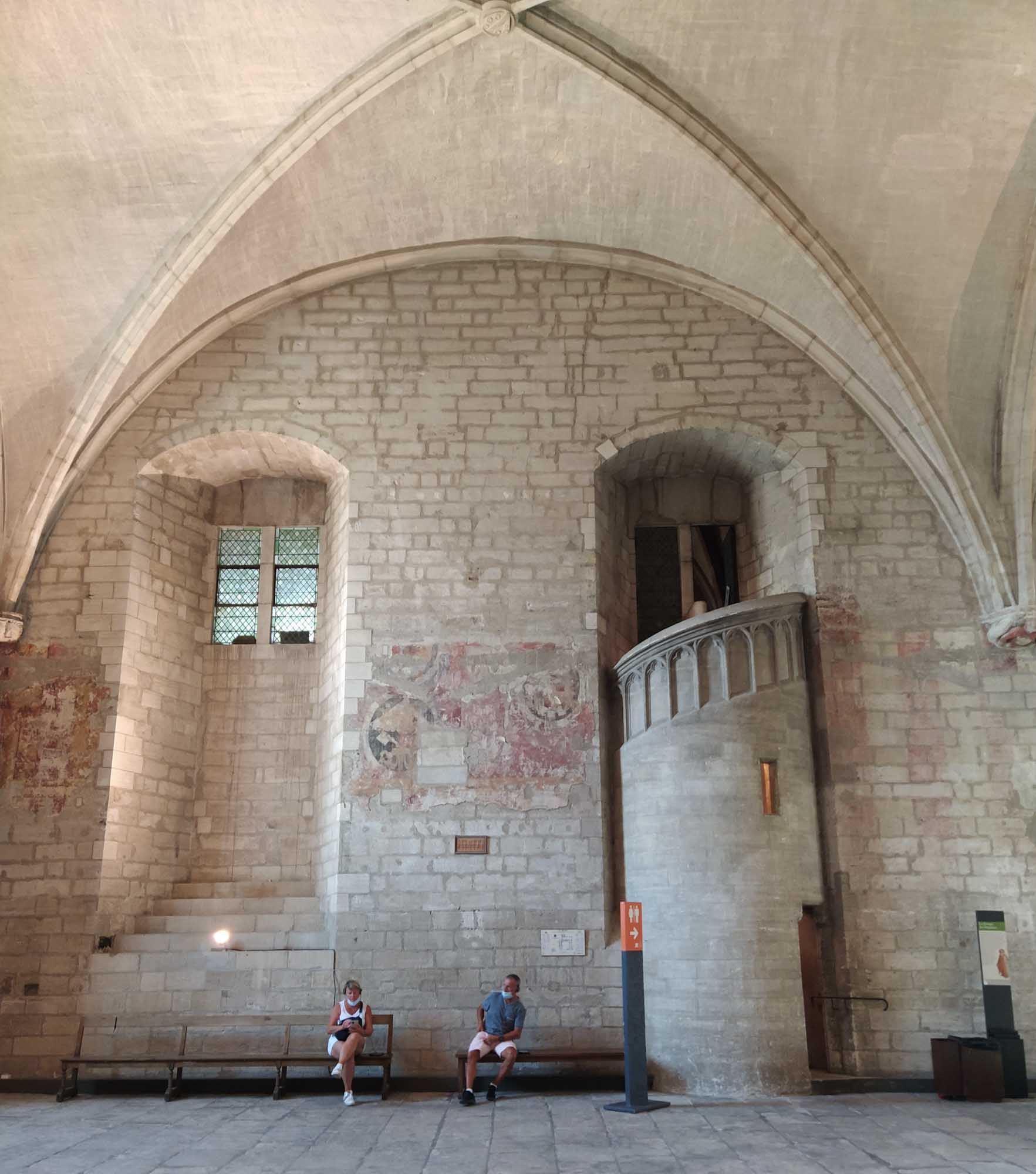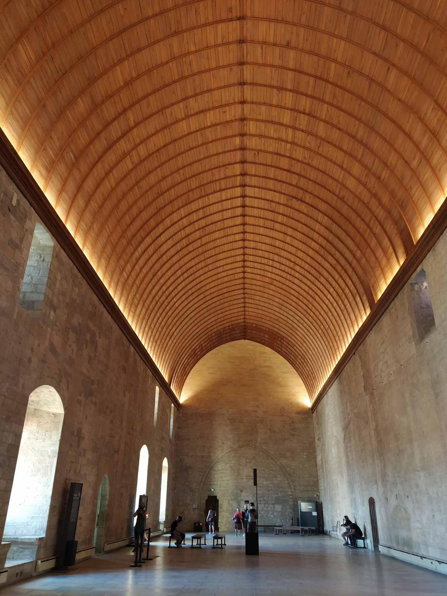 Das Wetter war wieder heil. Strahlend blauer Himmel und gefühlte 30 Grad ließen uns heute wieder schön schwitzen. Was will man mehr? Eine Stunde brauchten wir bis Avignon. Wir parkten außerhalb der Stadtmauer, die noch vollständig erhalten die gesamte Altstadt umschließt. Mit dem Fahrrad ging es dann in die Stadt. Die Altstadt ist größtenteils autofrei, was das herumschlendern sehr angenehmt machte. In der Einkaufspassage standen an einem Platz schöne alte amerikanische Wagen herum. Schon schick, so ein Caddilliac. Die Hauptattraktion ist sicherlich der Papstpalast, den wir ebenfalls besichtigten. Hier war von 1304 bis 1376 für 71 Jahre das katholische Zentrum der Welt. Der Palast wurde allerdings erst 1335 fertiggestellt. 7 Päpste lebten in dieser Zeit in Avignon. Das ist schon ganz schön lange her und man sieht es dem Bauwerk auch an. Zumindest der Teil, der den Besuchern zugänglich ist, war alt und zerfallen. Keine schönen Deckengemälde oder Wandbemalungen. Die kläglichen Reste kaum nennenswert. Es wäre schöner gewesen, einen gut restaurierten Palast zu besuchen, als sich das ganze virtuell auf den ausgehändigten Tablets anzusehen. Am Computer hätten wir uns den Palast auch zu Hause ansehen können. Aber die Größe der Räume war denn doch ein wenig beeindruckend und die animierte Darstellung vermittelte zumindest einen Eindruck, wie es vielleicht einmal gewesen sein könnte. Das Museum Le Petit Palais war unser nächstes Ziel. Hier gab es eine Sonderaususstellung italienischer Künstler. Eigentlich ganz schön. Aber es wäre vielleicht noch schöner gewesen, wenn die Ausstellung nicht ausschließlich kirchliche Motive beinhaltet hätte. Nach unzähligen Maria mit Kind, Heilige Drei Könige, Apostel und Jesusdarstellungen waren wir dann doch froh, wieder draußen zu sein. Dort erschallte laute Musik und Sprechgesang den Vorplatz des Papstpalastes. Eine Anti-Corona-Demo verschaffte sich gehör und skandierte "Liberté" (Freiheit). Nach dem, was wir gestern beim Einkaufen gesehen hatten, vielleicht auch verständlich. Vermutlich hatten sie sich nicht impfen lassen und wollten enfach mal wieder einkaufen gehen. Wie auch immer, die Stimmung war gut und Polizei war nirgends zu sehen. Wir spazierten noch ein wenig durch die oberhalb des Palastes gelegene Gartenanlage und bekamen von dort auch die berühmte Pont d'Avignon zu sehen. Die allerdings nur noch bis zur Mitte der Rhone führt. Anschließend fuhren mit den Fahrrädern zurück zum Auto und danach zum nördlich der Stadt gelegenen Fort Saint-André, einer Burganlage mit Abtei. Wir kamen allerdings dort erst um 19 Uhr an, genau die Zeit, wo die Türen der Burg abgeschlossen wurden. Trotzdem konnten wir noch kurz in das Innere gehen, das aber nicht wirklich sehenswert war. Die Silhuette der Burg von außen war viel eindrucksvoller. Zum Übernachten fuhren wir in den Nationalpark Alpilles, eine kleine bergige Landschaft südlich von Avignon. In der Dämmerung packten wir dann schnell noch unseren Grill aus. Aber die Nacht brach so schnell herein, dass wir unsere Lammkoteletts, die Schweinespieße und natürlich unser geliebtes Kräuterbaguette mit der Taschenlampe fertig grillen mussten.