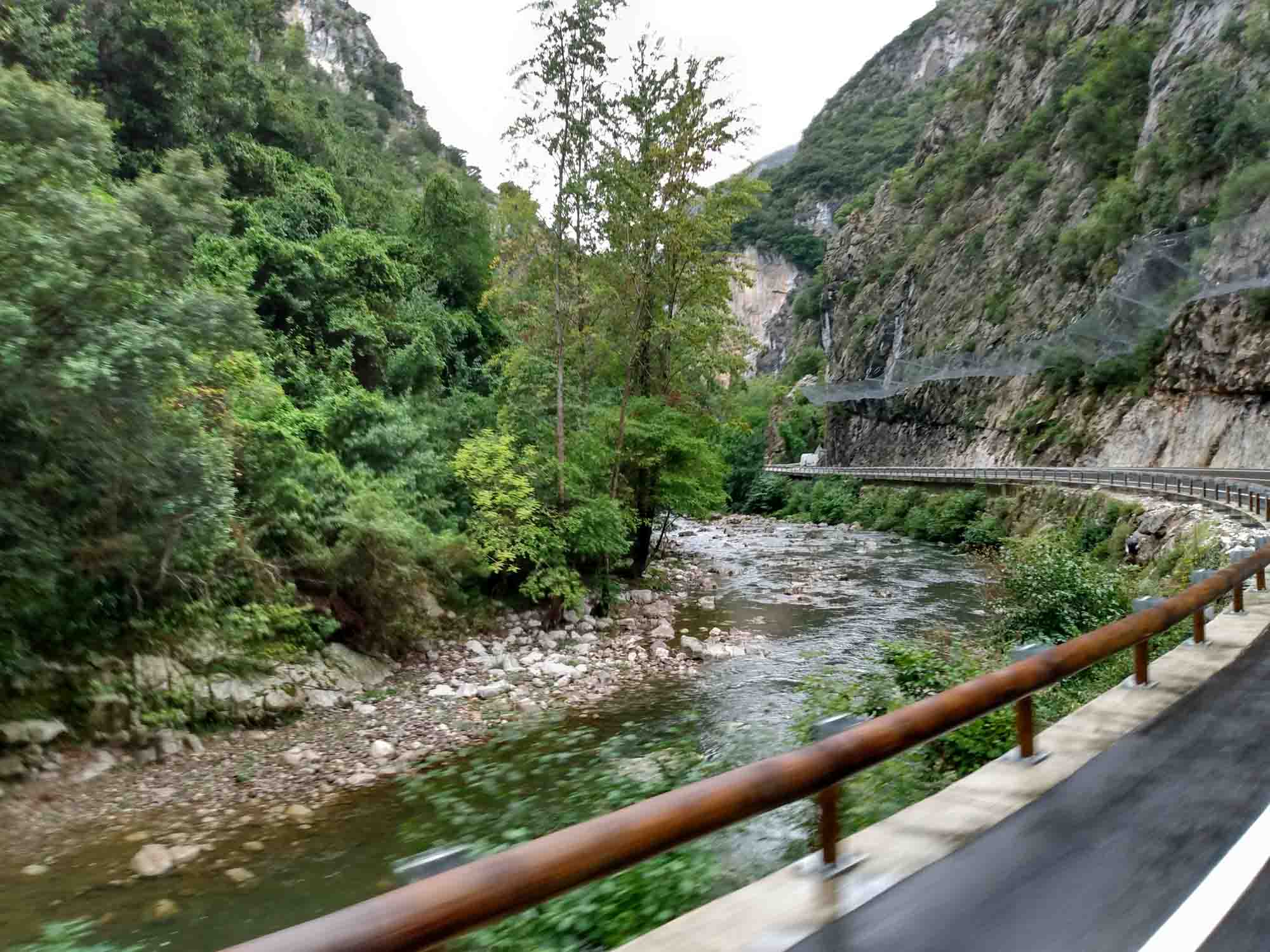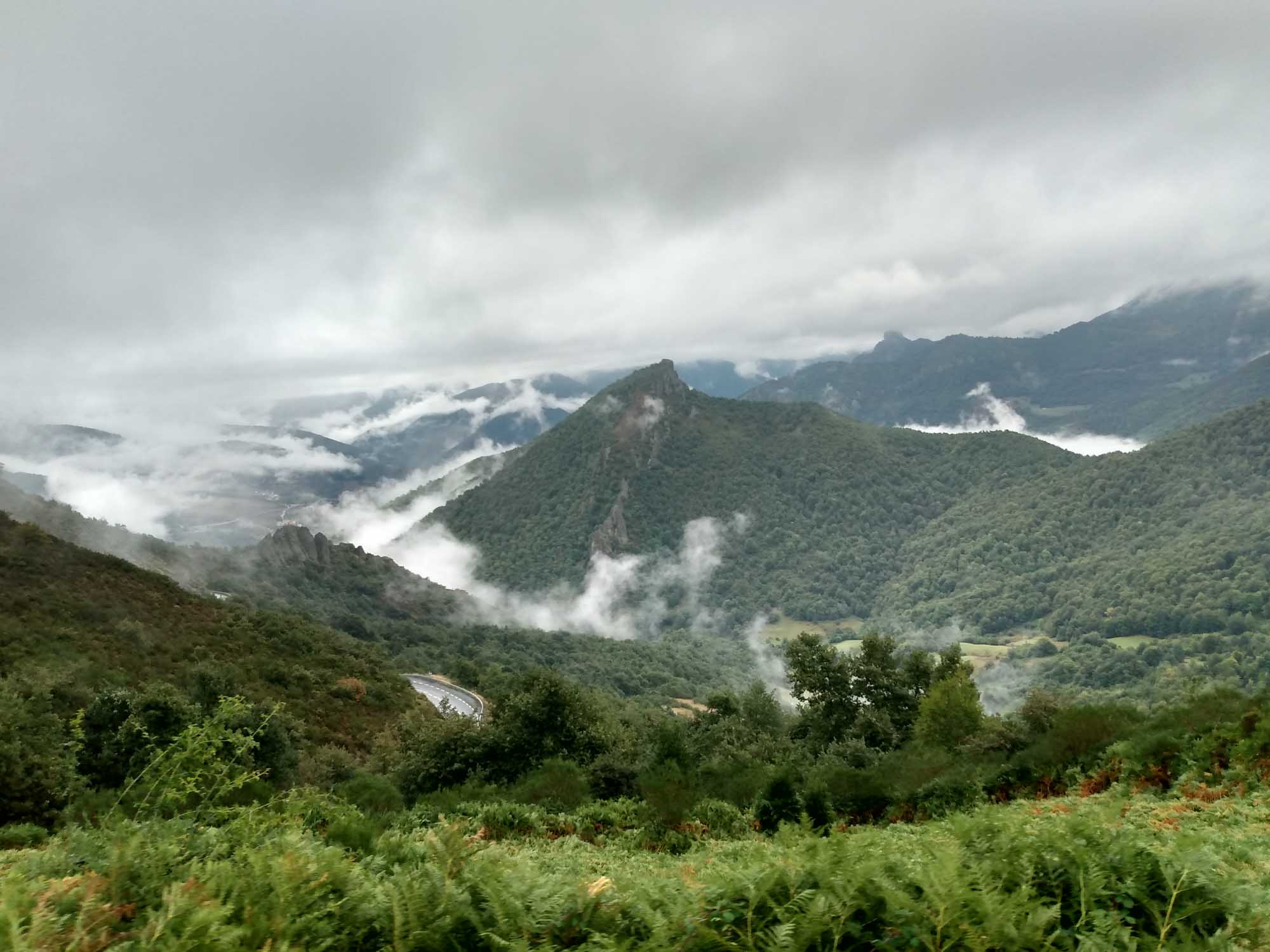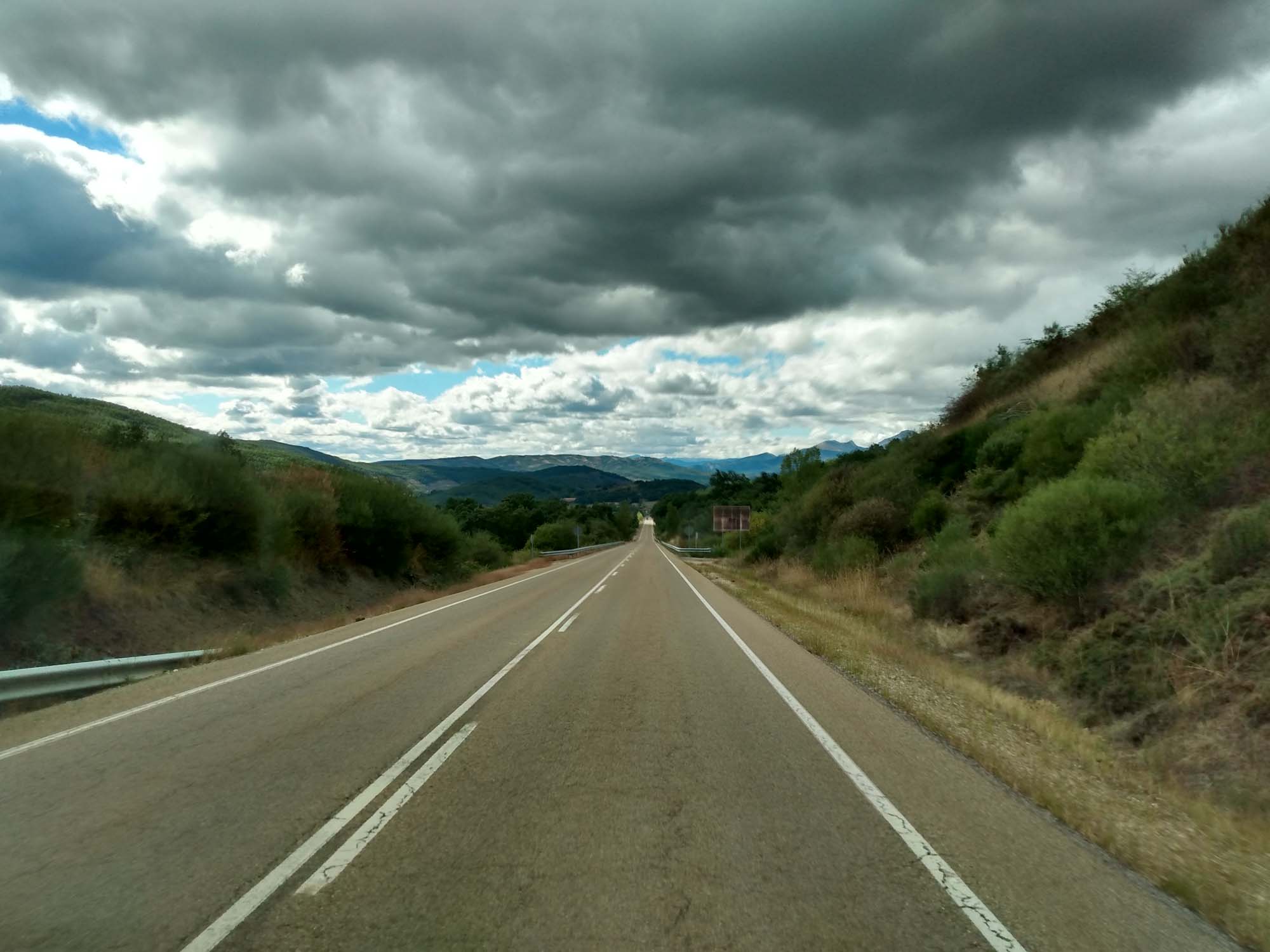 Regen, Regen, Regen. Nichts als Regen. Und der Himmel grau in grau. Keine Besserung in Sicht. Gut, dass wir mit dem Wohnmobil unterwegs sind und nicht mit dem Motorrad oder zu Fuß, wie die vielen Wanderer auf dem Jakobsweg, die wir unterwegs gesehen haben. Es schüttete ununterbrochen, als wir auf der N-634 gen Westen und kurz danach auf die N-621 in Richtung Süden fuhren. Diese Route führt über Panes und Potes, zwei sehr schöne Bergdörfer. Dazwischen aber liegt der Nationalpark Desfiladero de La Hermida. Die Straße führt hier entlang eines kleinen Flusses durch eine ziemlich hohe Schlucht, die beinahe an die von Verdon erinnert. Danach schängelte sich die Straße langsam bergauf, bis wir bei Portilla de la Reina den Pass bei 1609 m passierten. Hier bekamen wir fantastische Ausblicke auf die hier wunderschöne Landschaft. Besonders schön wurde es, weil es endlich aufklarte, als wir den Pass passiert hatten und in Richtung León fuhren. Die Sonne war wieder da und es wurde schlagartig wärmer. Die bergige Landschaft wechselte zu sanften Hügeln, von denen wir beim Herunterfahren immer wieder einen weiten Blick bis zum Horizont bekamen. Landschaftlich war diese Fahrt die Schönste, die wir bisher in Spanien hatten. In León schauten wir uns noch kurz die Kathedrale an. Es war bereits spät geworden und die Suche nach einem Stellplatz dauerte heute länger, als uns beiden lieb war. Der avisierte Platz war viel weiter von León weg, als wir gedacht hatten und war dann auch nicht erreichbar, weil die Zufahrt so eng und steil war, dass wir mit Sicherheit hinten aufgesetzt hätten. Also fuhren wir wieder in Richtung León zurück und fanden dann zum Glück abseits der Straße ein ruhiges Fleckchen. Es war dann aber auch schon 20:30 Uhr so machten wir uns nur noch schnell etwas zu essen.