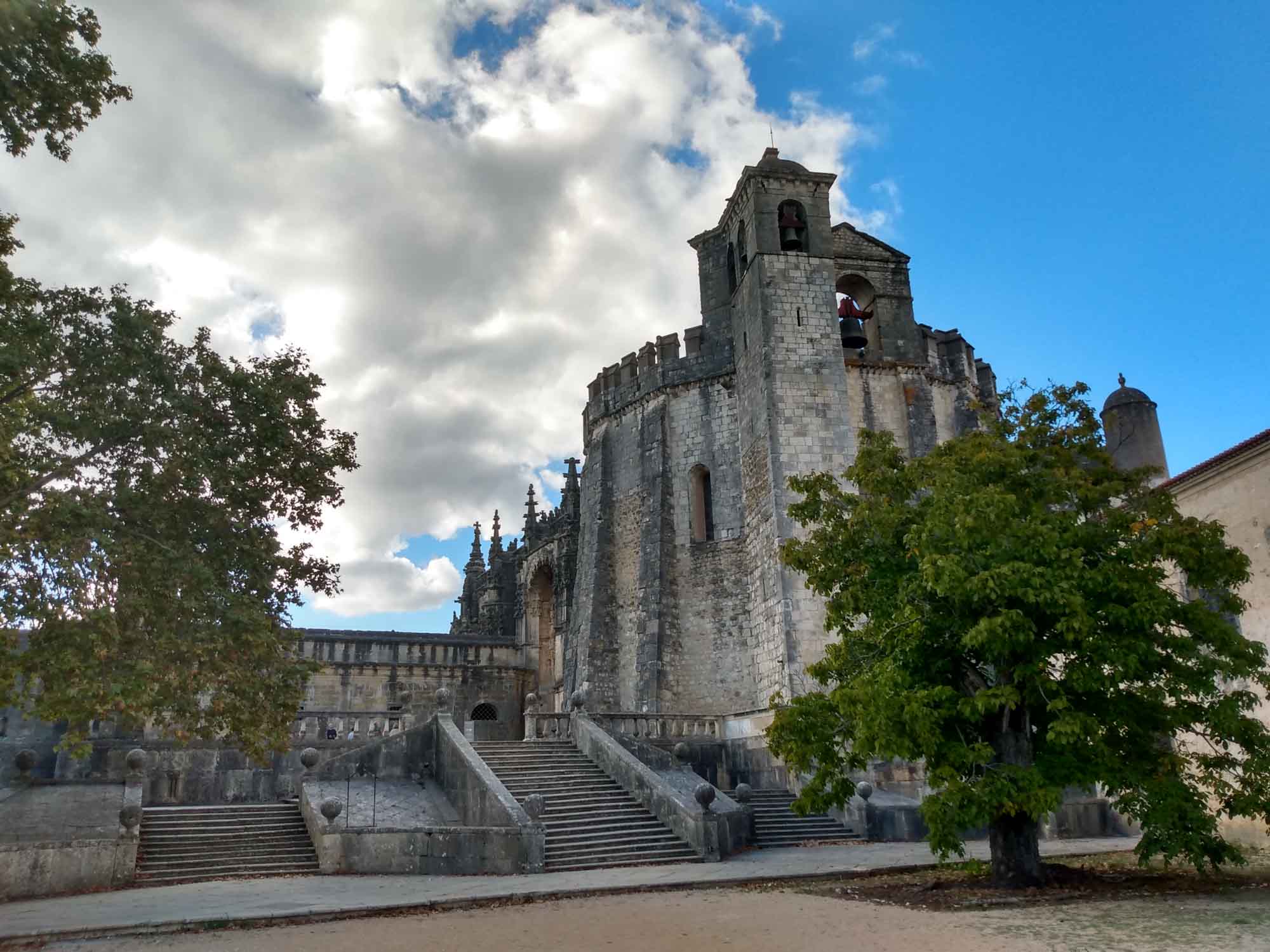 Und wieder war es ein wundervoller Tag mit herrlich viel Sonne. Die Nacht am Stausee war ruhig aber wir waren überraschend früh auf den Beinen. Das war auch gut so, denn wir hatten einiges an Strecke vor uns. Über Coimbra fuhren wir nach Tomar. Dort steht das recht gut erhaltene Kloster des Templerordens. Der Bau begann 1160, nachdem dort der Orden gegründet worden war. Insbesondere die Kirche mit einem beeindruckenden Altar, bestehend aus 8 zentralen Säulen und einer großen reich bemalten Kuppel über den Säulen und einem kleinen Rundgang ist sehr sehenswert. Der Rest der Anlage war mal gut, mal weniger gut erhalten. Man konnte jedoch auf jeden Fall den Eindruck gewinnen, dass es sich die Klosterbrüder hier haben gut gehen lassen. Zu unserem Stellplatz war es diesmal etwas weiter als üblich. Die Sonne war bereits untergegangen, als wir unseren Platz an einer stillgelegten Fähre über den Tejo bei Amieira do Tejo erreichten. Dafür waren wir wieder einmal alleine und hörten nur noch die Glocken der in der Nähe weidenden Kühe.