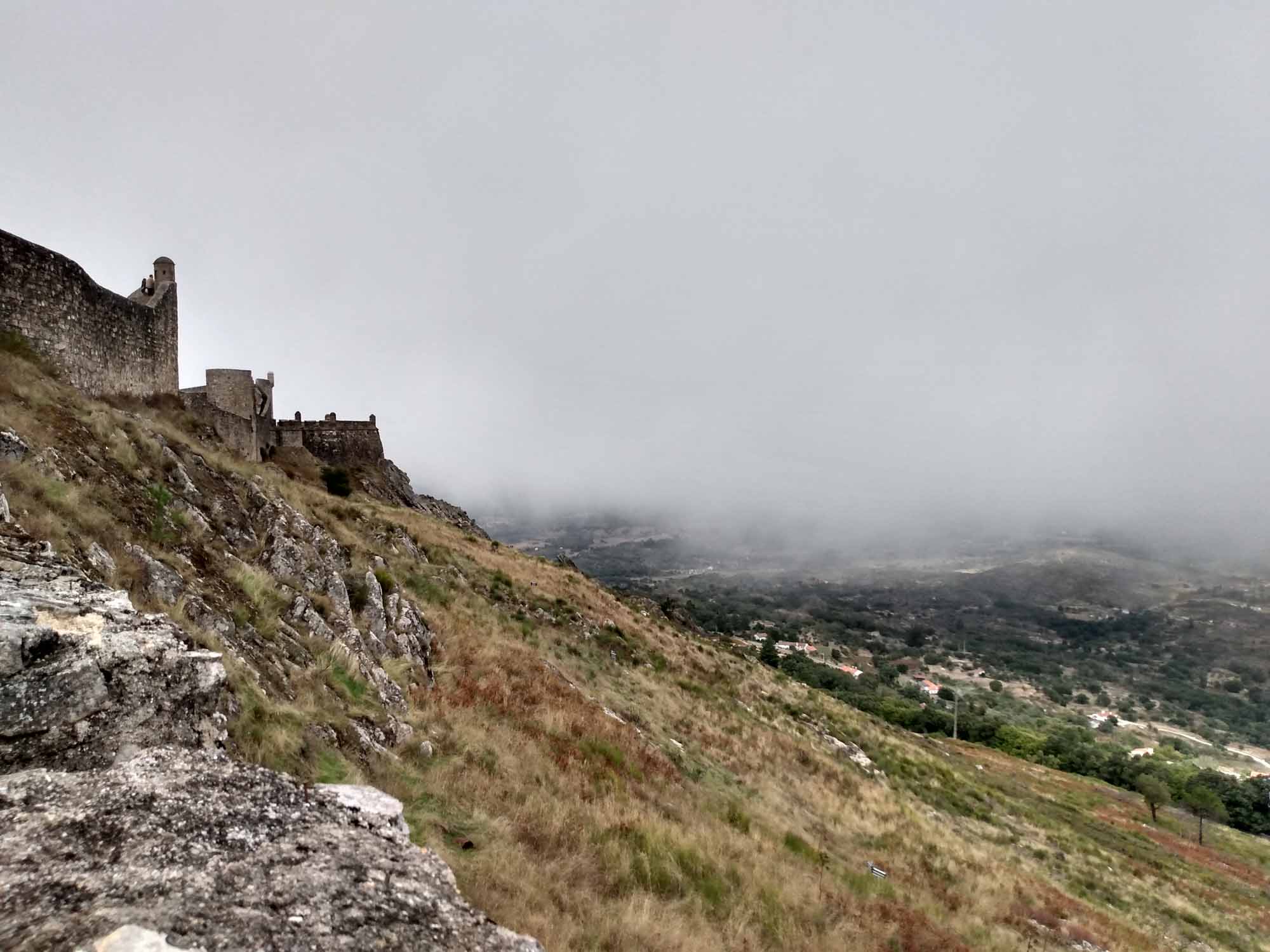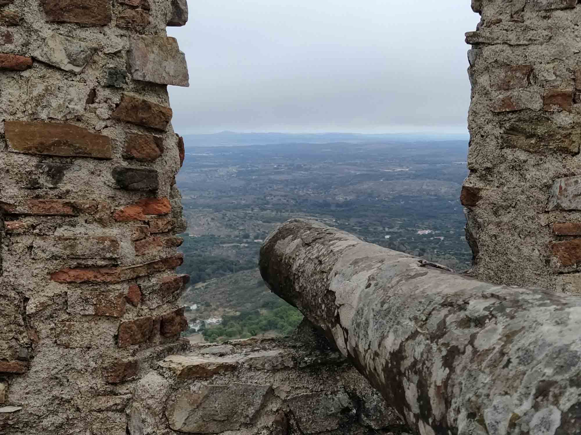 Morgens weckte uns eine Schar Wanderer, die sich just unseren einsamen Platz ausgesucht hatten, um ihre Wanderung zu beginnen. Auto um Auto kam und schnell war der kleine Parkplatz überfüllt. Die Fähre, die nach unseren Informationen stillgelegt sein sollte, sah bei näherer Betrachtung ziemlich neu aus. Sie hatte sogar Solarpanels auf dem Dach. Und siehe da, heute war der Tag, an dem die Fähre ihren Betrieb wieder aufnahm. Ganz leise fuhr sie bei ihrer ersten Leerfahrt über den Tejo. Für uns war die Fähre etwas zu klein, so dass wir nicht übersetzen konnten. Wir wollten aber ohnehin nach Süden und fuhren als erstes nach Marvão. Dort liegt auf einem Berg eine ehemalige Grenzfestung zu Spanien, die wir besichtigten und dabei ausgiebig auf den Mauern herumkletterten. In der darunter liegenden Stadt sind die Häuser alle herrlich weiß und man kann sehr schön durch die schmalen Gassen schlendern. Leider lag die Festung zunächst noch in Wolken und ringsherum hing der Nebel, so dass uns die schöne Aussicht auf Spanien noch verwehrt war. Später, als wir auch unseren obligatorischen Drohnenflug absolviert hatten und weiterfuhren, kam dann die Sonne heraus und wir bekamen doch noch den versprochenen Ausblick. Da Spanien in Reichweite war, fuhren wir kurzentschlossen zum Einkaufen und Tanken nach Badajoz. Das Preisniveau in Spanien ist erheblich niedriger, so dass sich dieser kleine Abstecher lohnte. Unterwegs hielten wir ein paarmal, um einzusammeln, was am Wegrand stand: Ein paar Feigen, Maronen natürlich und frische Kaktusfeigen, die wir von einem Kaktus pflückten. Nach dem Einkaufen waren wir zudem noch mit zwei frischen Fischen sehr gut versorgt. Unseren Stellplatz für die Nacht am Fluss Guadiana erreichten wir erst nach Sonnenuntergang. Aber nach einer kurzen Erkundung mit der Taschenlampe erschien er uns ganz brauchbar und zumindest heute Nacht nicht hochwassergefährdet zu sein.