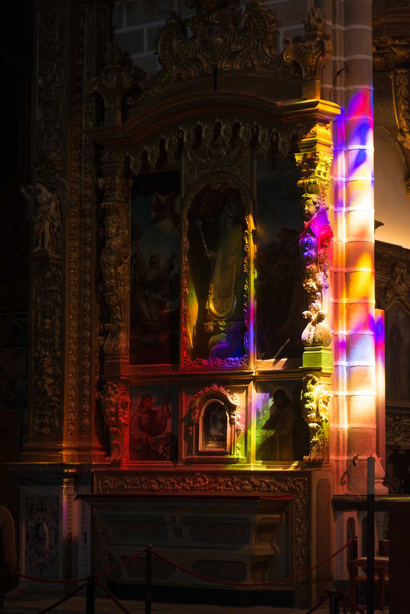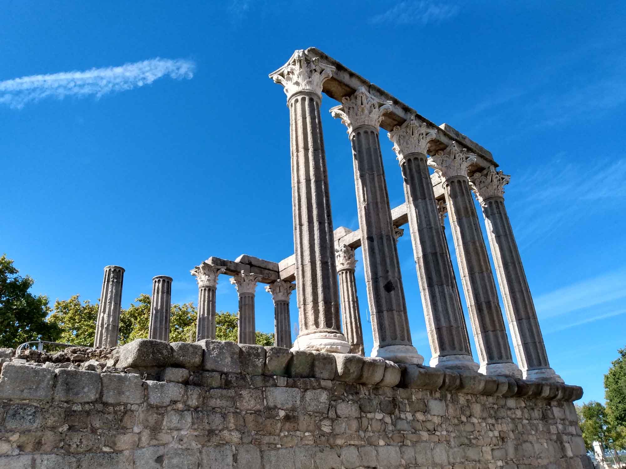 Bis Évora fuhren wir nur eine knappe halbe Stunde. Dort konnten wir unweit der Altstadt parken, so dass wir unsere Fahrräder nicht brauchten. Wir schlenderten ein wenig durch die Gassen, an der Kathedrale vorbei zu den Überreseten eines römischen Tempels. Danach gingen wir zur Capela dos Ossos. Diese liegt unmittelbar an der Kirche São Francisco, die ebenfalls sehr sehenswert ist. In der Kapelle gibt es einen großen Raum, der vollständig mit Gebeinen ausgekleidet ist. Anschließend schauten wir uns im dazugehörigen Museum, eine Sammlung von mehr als 200 Krippen an. Einige wenige waren sogar schön. Andere dagegen eher skuril oder kitschig. Insbesondere die Versuche aus Ton, hatten geradezu grotesk wirkende Gesichter. Danach hatten wir noch eine lange Fahrt vor uns. An Lissabon vorbei fuhren wir bis zum Farol do Cabo Raso, wo wir auf den Klippen direkt am Meer unser Nachlager aufschlugen. Hoffentlich bleiben wir hier allein und hoffentlich kommt heute Abend niemand vorbei, um uns wegzuschicken.