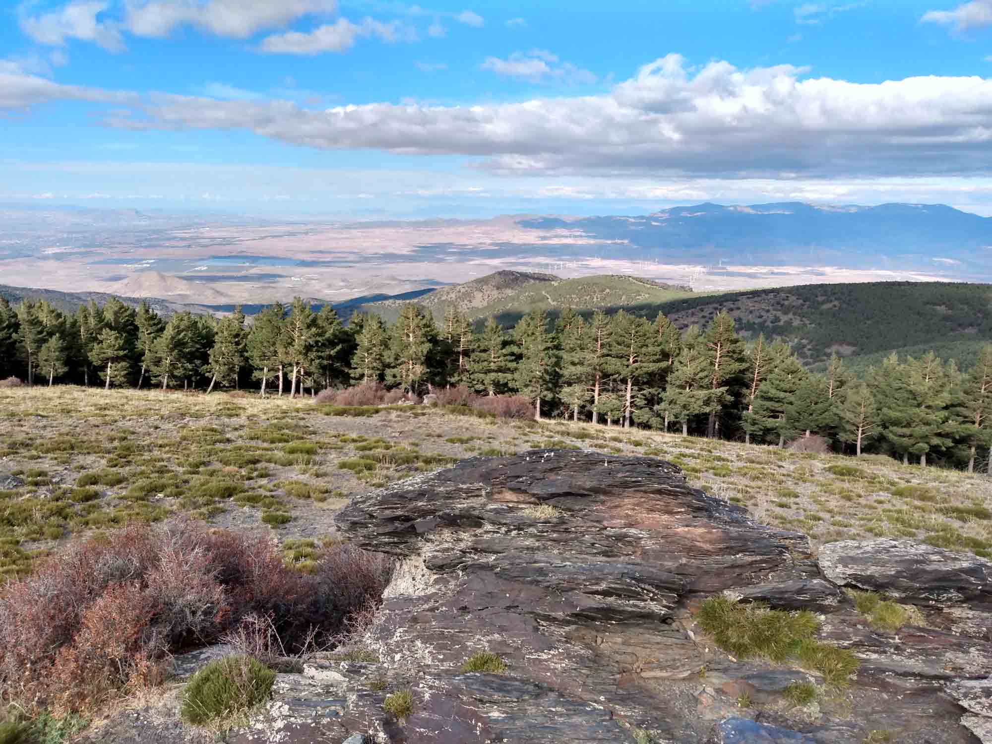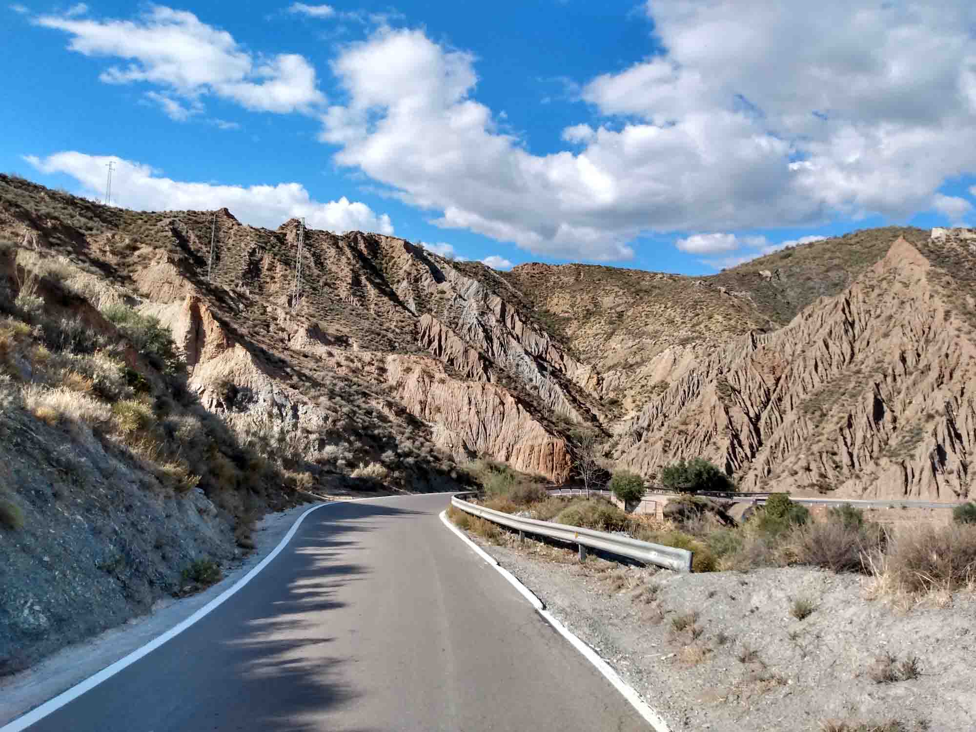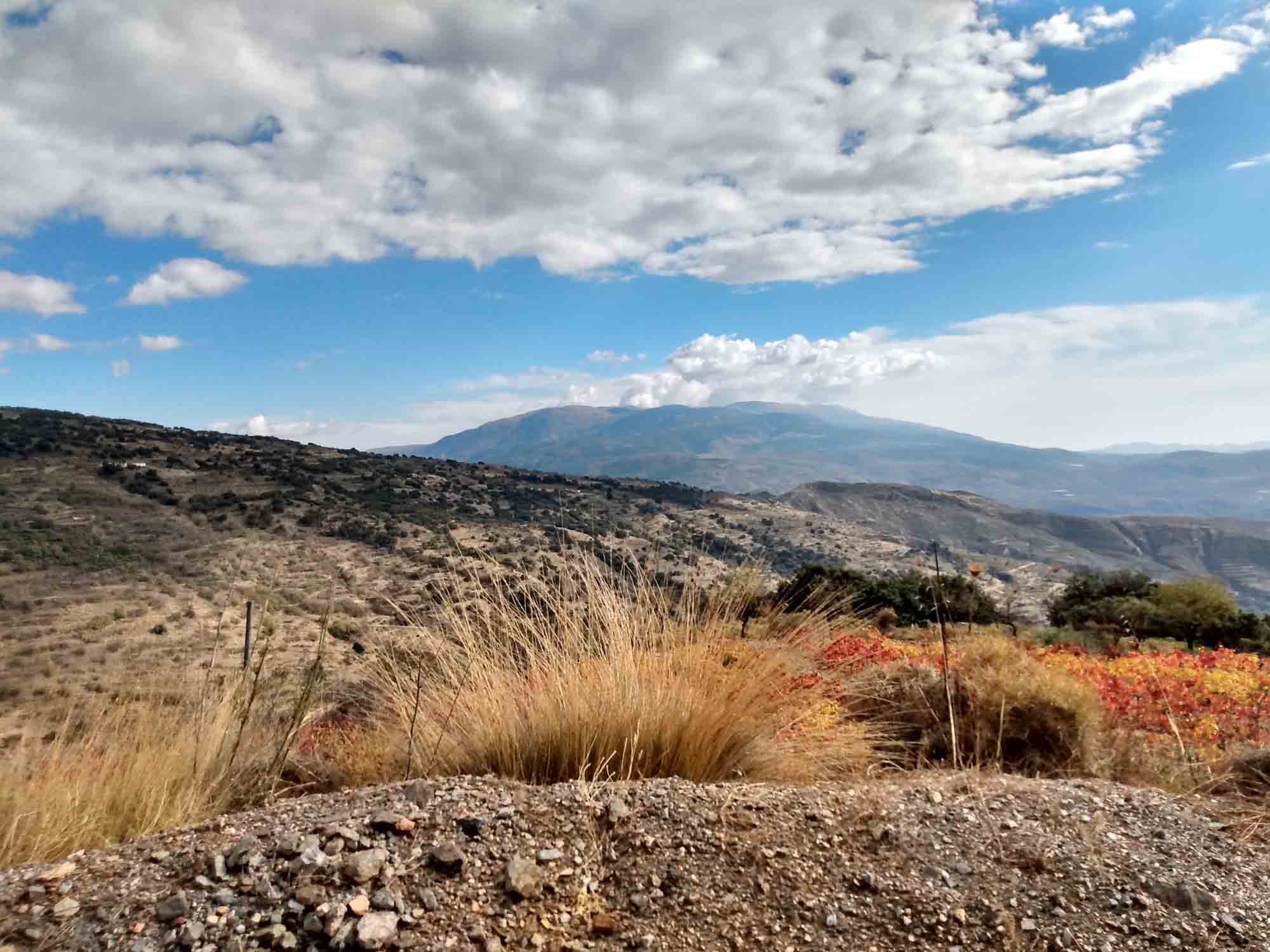 Am Morgen ging Michael mit Berta am Strand spazieren, während Aneta für beide das Frühstück zubereitete. Nach dem Essen fuhren wir nach El Ejido, um in einem Heimtiergeschäft noch eine lange Leine und ein Halsband für Berta zu kaufen. Den Laden wollte sie nicht betreten. Vermutlich wegen des Hundes, der zum Geschäft gehörte. Dieser war zwar sehr lieb, Berta respektierte aber offensichtlich sein Revier. Anschließend erledigten wir noch ein paar Einkäufe und fuhren dann nach Norden quer durch die Sierra Nevada. Am Pass Puerto De La Ragua auf 2000 m Höhe machten wir einen weiteren Spaziergang und erklommen dort einen Gipfel, von dem aus wir auf die nördlich gelegene Hochebene blicken konnten. Dann fuhren wir weiter bis nach La Calahorra. Dort liegt auf einer kleinen Anhöhe das Castillo de La Calahorra, das zwar geschlossen war, aber dennoch wunderbar als Kulisse für eine Drohenaufnahme diente. Aneta ging in der Zwischenzeit mit Berta spazieren. In Guadix fuhren wir noch eine Entsorgungsstation an, bevor wir uns auf die Suche nach einem Übernachtungsplatz machten. Der erste entpuppte sich als Feldweg, der wahrscheinlich ein Zufahrtsweg für ein Haus war. Also völlig ungeeignet. Also mussten wir weiter und kamen erst nach Sonnenuntergang beim nächsten Platz in der Nähe von Gorafe an. Hier konnen wir bei einem Nachtspaziergang im Mondschein die Reste alter Hühnengräber bestaunen. Berta kam in den Genuß der langen Leine und konnte so trotz Leine fast so laufen, als wäre sie ganz frei. Danach gab es für alle etwas zu essen und es dauerte nicht lange, bis erst unsere Kleine einschlief und etwas später auch wir müde im Bett verschwanden