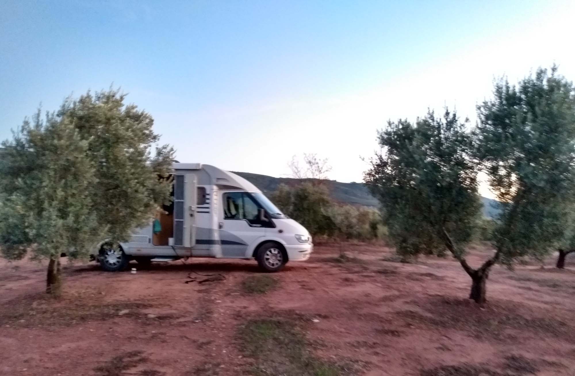 Der morgentliche Spaziergang fiel heute etwas länger aus. Aneta war drauf und dran eine Vermisstenmeldung abzugeben, als Michael mit Berta nach einer Stunde wiederkam. Der Morgen war wunderschön, die Sonne schien und es war bereits um 9 Uhr angenehm warm. Heute sollte es nicht allzuweit gehen. Wir wollten uns nur ein gemütliches Plätzchen suchen, wo Berta frei laufen kann und die nächste Straße etwas weiter weg ist. Unser Traumplatz, an einem Stausee sah im Internet fantastisch aus und sollte nur 30 Minuten weg sein. Die sandige Straße, die dorthin führte war kürzlich begradigt worden, so dass sie sich sehr gut fahren ließ. Auch die Steigungen waren kein Problem. Bis wir, ca. 1 km vor dem Ziel plötzlich inmitten von Olvienbäumen standen und weder vor noch zurück konnten. Das Auto wirkte von außen plötzlich viel viel größer, als es so von den eng stehenden Olivenbäumen eingerahmt wurde. Natürlich ging es dann doch irgendwie zurück und nach vielleicht 300 m Rückwärtsfahrt durch den Olivenwald fanden wir eine Stelle, an der wir wenden konnten. Schade, der Platz wäre bestimmt toll gewesen. Den nächsten Platz sollte es in der Nähe des Passes Puerta de Tiscar (1183 m) geben. Bis dahin fuhren wir noch einmal 45 Minuten. Aber auch aus diesem Platz wurde nichts, denn genau beim Pass war heute ein großer Andrang von Menschen und Fahrzeugen, denn hier fand irgendeine Art von Wettlauf statt und der Pass war das Ziel. Also weiter nach Cazorla, noch einmal 45 Minuten. Der Platz sollte im gleichnamigen Nationalpark liegen. An der Zufahrt zum Nationalpark standen jedoch zwei nagelneue Verbotsschilder, die die Weiterfahrt für Wohnmobile untersagten. Bis hierhin wurden wir durch die fantastische Landschaft getröstet, durch die wir gefahren sind. Herrlich kleine Bergstraßen, auf denen wir maximal 40 km/h fahren konnten, ließen uns ausgiebig Zeit zum Genießen. Aber so langsam wurde es spät und wir hatten unseren Platz noch immer nicht gefunden. Wir suchten noch einmal und fanden einen, der im Wald am Ende einer Sackgasse sein sollte aber noch einmal über eine Stunde Fahrzeit bedeutete. Aber gut, immerhin ging es in die richtige Richtung. Nur des Pech mit den Plätzen hielt heute an: Es war keine Sackgasse, sondern nur eine Grünfläche abseits einer zumindest wenig befahrenen Straße. Nur war kürzlich ein Graben zwischen der Straße und dieser Grünfläche gezogen worden, vermutlich in Vorbereitung auf die kommenden Regenfälle. Und dieser Graben verhinderte erfolgreich, dass wir auf dieses Grün fahren konnten. Letzlich landeten wir inmitten eines Olivenhains, der auch an dieser Straße lag. Und es war auch noch so früh, dass wir unseren gemeinsamen Abendspaziergang im Hellen machen konnten. Aber leider doch so dicht an der Straße, dass es halt auch nicht das perfekte Plätzchen für die nächsten Tage werden wird. So werden wir morgen leider weitersuchen müssen.
