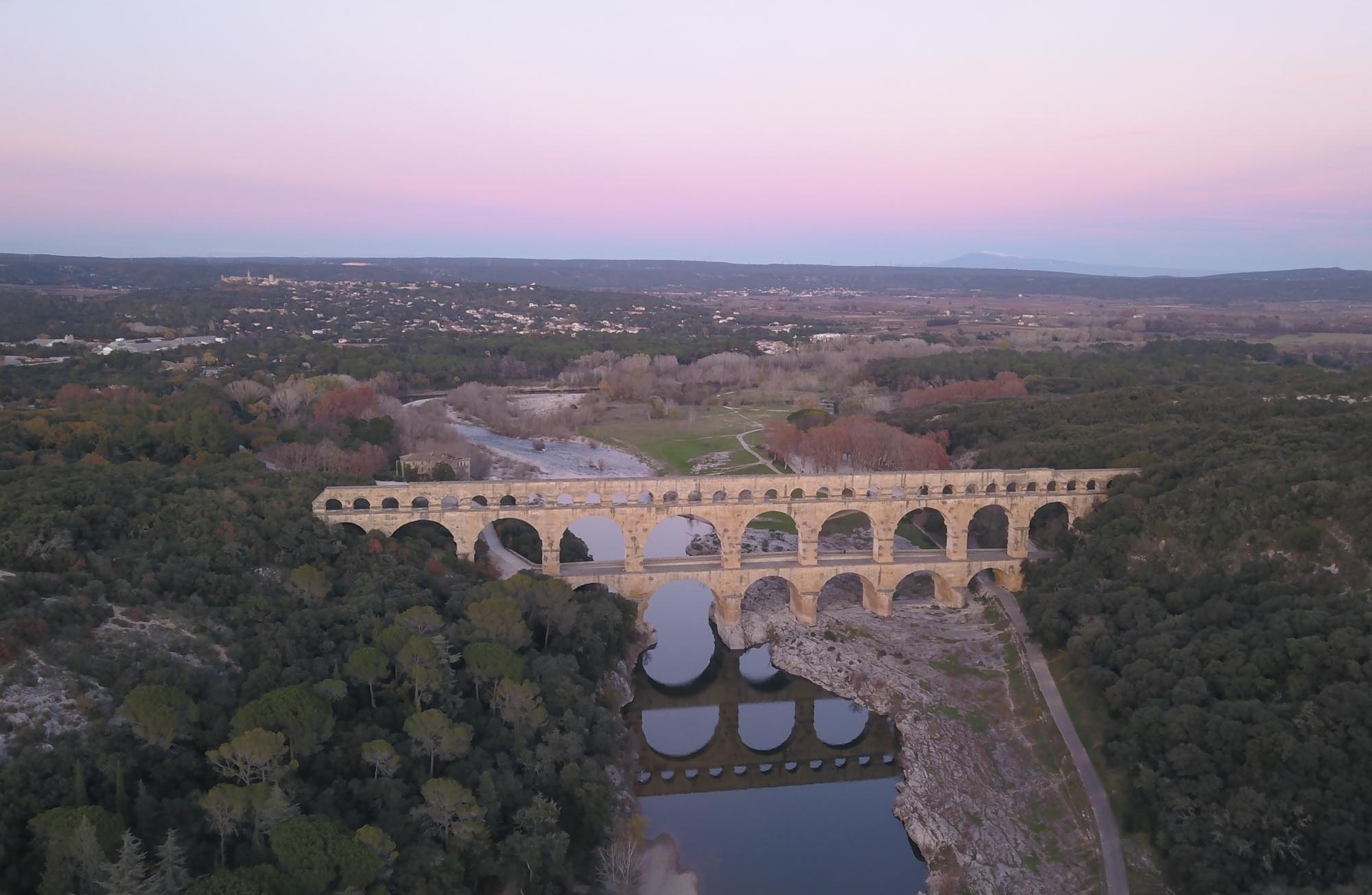 Die Sonne schien schon wieder herrlich und das Eis knirschte unter unseren Füßen, als wir unseren ersten Spaziergang machten. Bis auf einen alten Weinbauern trafen wir niemanden. Er war gerade dabei, seinen Elektroschrauber zu reparieren und wir tauschten ein paar Worte aus. Auf dem Rückweg stand er in seinem Feld und befestigte einige seiner Rebstöcke. Nunmehr bekannt, grüßte er herzlich zurück als wir ihm zuwinkten. Mit einem kurzen Halt zum Einkaufen (diesmal hat es mit den Austern geklappt), fuhren wir zum Pont du Gard. Dort kamen wir erst kurz vor Sonnenuntergang an. Beim Aufdrehen der Gasflasche kam dann eine böse Überraschung. Die Heckschürze hinten links war jetzt auch defekt. Irgendjemand muss uns heute, während wir geparkt haben, hinten rein gefahren sein. Wir vermuteten, dass dies vor dem Tierladen passiert ist. Aber genau wissen wir es nicht. Das Gute daran ist aber, dass wir jetzt sowohl die rechte (von dem Unfall am Anfang unserer Reise) und die linke Heckschürze austauschen müssen. Dann sehen sie wenigstens gleich aus. Wir ließen uns die gute Laune nicht verderben und liefen den Berg hinauf zum Pont du Gard. Bis wir tatsächlich dort waren, war die Sonne schon untergangen. Aber das Licht reichte trotzdem noch für den Drohnenflug, für den wir gekommen waren. Berta lief wie immer frei und während Michael mit seiner Drohne spielte, ging Aneta mit ihr herum. Auf dem Rückweg war auch alles prima, bis wir wieder an die Straße kamen. Dort schlüpfte Berta und einem Zaun hindurch und ließ sie auch nicht zurückrufen. Wir gingen erstmal weiter. Normalerweise kommt sie dann nach kurzer Zeit. Aber nicht diesmal. Also wieder zurück, den Berg hinauf und noch einmal rufen. Nach ein paar Minuten dann ein kurzes Bellen. Ging es Berta gut? Wurde sie gerade entführt? Hatte sie sich verletzt oder irgendwo verfangen? Michael lief um das Grundstück herum und rief erneut. Außer ein wenig Rascheln war jedoch nichts zu hören. Inzwischen war es dunkel geworden und mit der Taschenlampe liefen wir weiter um das Grundstück herum, bis wir zu einer Einfahrt mit einem kleinen Bungalow und einer Art Container kamen. Und hinter diesem Container war sie und schaute angestrengt darunter. Aber auch jetzt ließ sie sich nicht herbeirufen. Stattdessen krabbelte sie unter den Container und jagte dem, was auch immer darunter gewesen war, durch die dahinter liegenen Büsche hinterher. Hin- und wieder tauchte sie im Licht der Taschenlampe auf, um gleich darauf wieder zu verschwinden. Dann kam der Besitzer mit seinem Auto zurück. Ausgesprochen freundlich erlaubte er gleich, dass wir Berta auf seinem Grundstück weiter suchen durften. Die machte aber noch immer keinerlei Anstalten, auf irgendwas oder -wen zu hören. Es dauerte noch ein Weilchen, bis sie Aneta in die Hände lief und diese sie festhalten konnte. Danach ging es an die Leine und dann doch wieder zurück zum Wohnmobil. Unterwegs stellten wir fest, dass es zwei neue Kratzer an ihrem Ohr gab, die natürlich wieder bluteten. Das war dann wohl die nächste Begegnung mit einer Katze. Daran werden wir wohl noch arbeiten müssen. Nachdem wir sie dann einigermaßen überreden konnten, doch wieder mit uns mitzukommen, nahm sie dann sehr gerne ihr Abendbrot von uns entgegen und legte sich dann gleich wieder schlafen. Sie wachte noch nicht einmal auf, als wir uns das Essen machten und danach noch ein wenig spielten. Wahrscheinlich träumte sie davon, wieviel Spaß es macht, einer Katze hinterherzujagen.