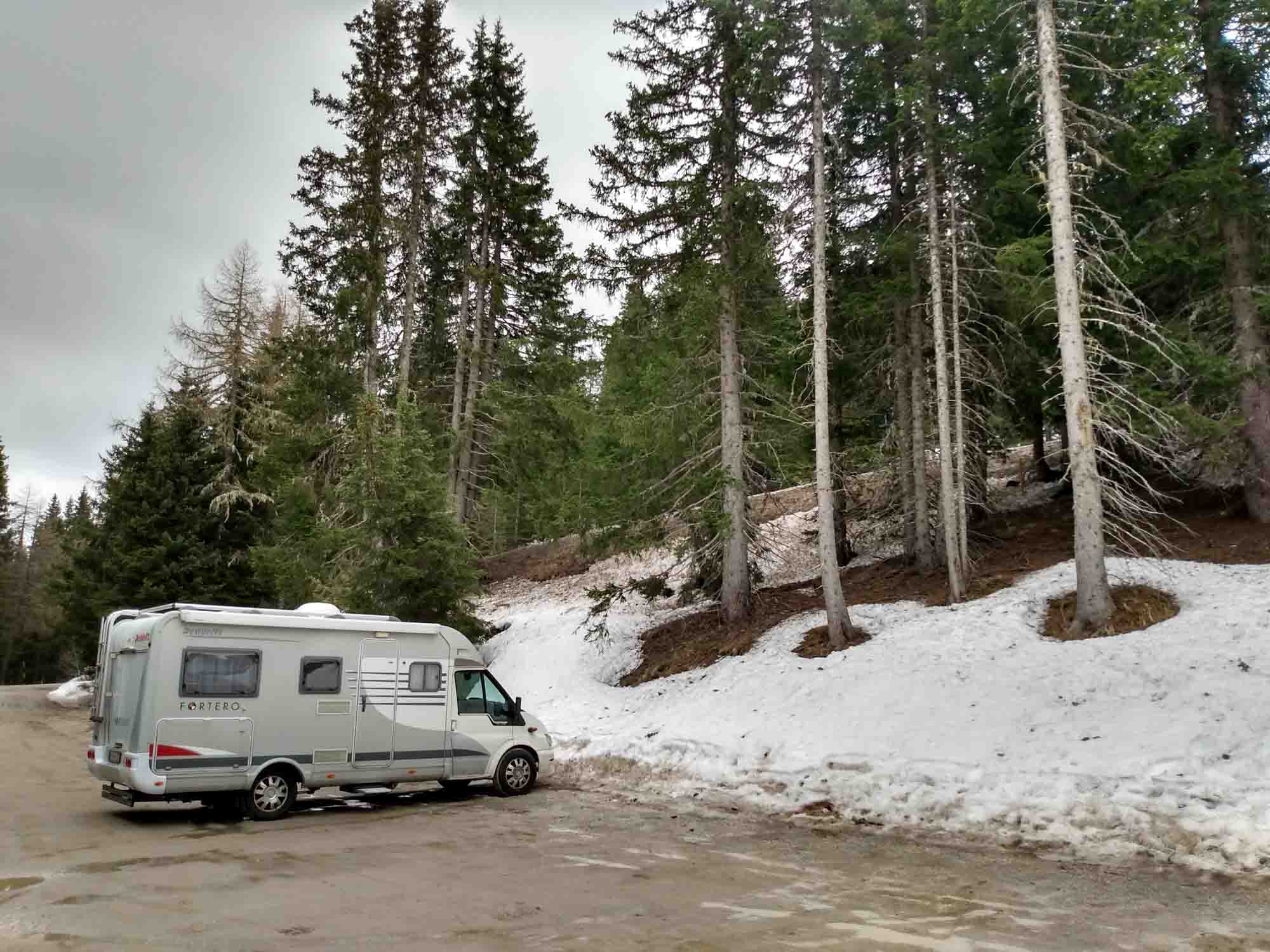 Wir ließen uns morgens etwas länger Zeit, damit Berta nach dem Frühstück noch ein wenig schlafen konnte. So langsam bräuchten wir mal wieder einen Platz, wo wir viel draußen sein können und mal ein oder zwei Tage nicht fahren müssen. Hier bleiben ging jedoch nicht. Zu groß das Risiko doch von freundlichen Polizisten auf die Regelungen in Österreich aufmerksam gemacht zu werden. Wir fuhren also weiter. Über Telfs, Zirl, Innsbruck und dann weiter auf der kurvigen Landstraße über den Brenner nach Italien. Dort versuchten wir in Sterzing unseren Gastank wieder aufzufüllen. Leider machte uns der nette Tankwart darauf aufmerksam, dass das hier verboten sei. Zu ärgerlich, zumal wir heute an keiner weiteren LPG-Tankstelle mehr vorbeikommen würden und das Gas so gut wie alle sein dürfte. Hoffen wir mal, dass es noch für die Nacht reicht. Hinter Sterzing bogen wir ab in Richtung des Jauffenpass. Noch vor dem Pass fanden wir auf ca. 1.900 m Höhe einen großen fast leeren Wanderparkplatz auf dem wir es uns gemütlich einrichteten. Heute war drinnen angesagt. Kurz nachdem wir ankamen fing es an zu regnen und hörte auch bis zum Abend nicht wieder auf.