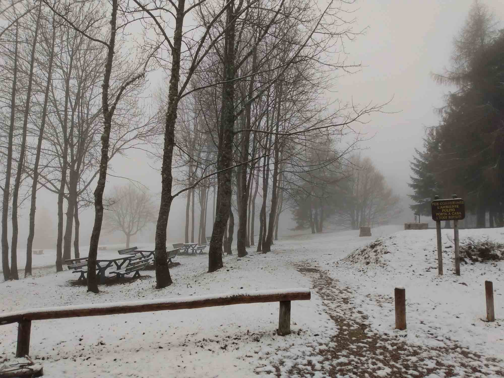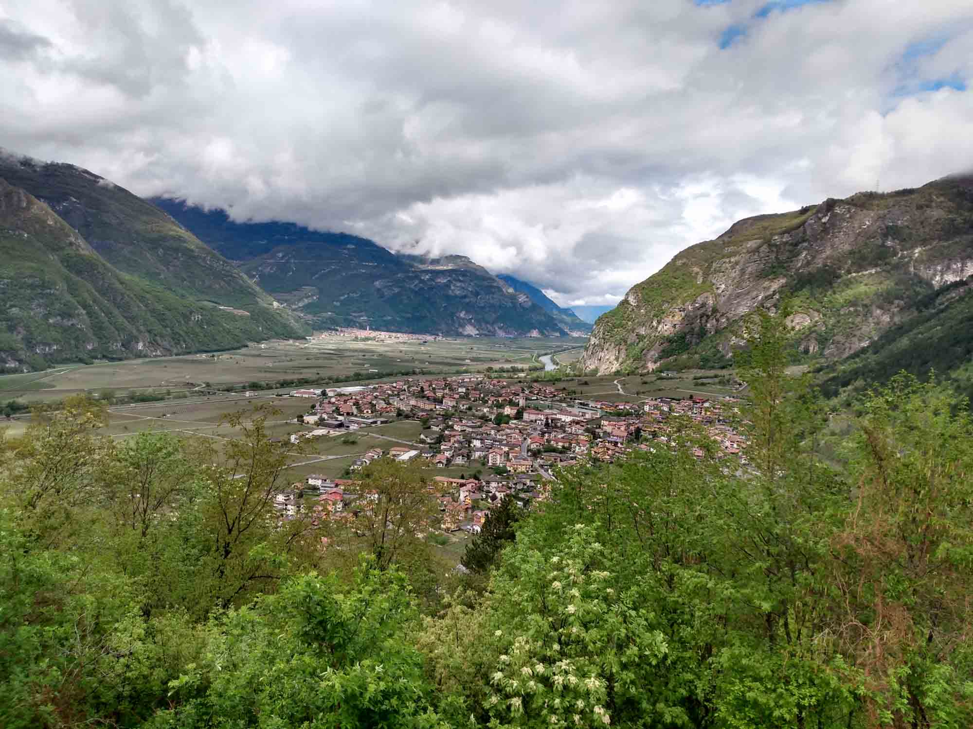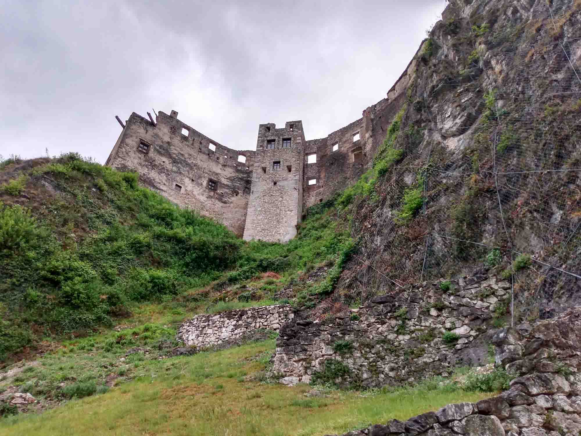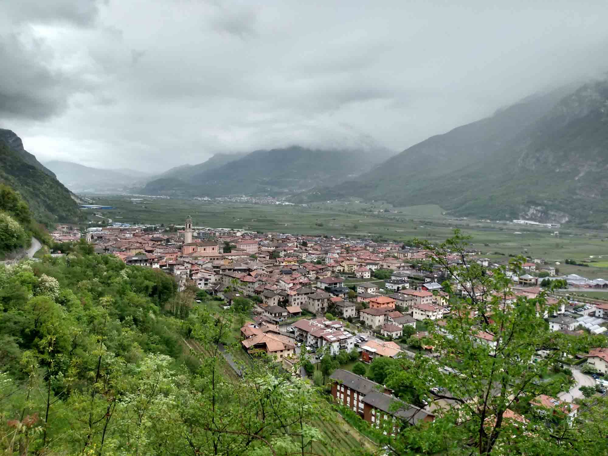 Der Wetterbericht hatte für die Nacht Regen vorhergesagt. Dachten wir jedenfalls. Aber was passiert mit Wasser, wenn es kalt wird? Genau: Als wir morgens aufwachten, sahen wir dass wir hoch in den Bergen eingeschneit waren. Ein wenig Gedanken machten wir uns schon über die steile enge Abfahrt, die wir gestern hochgekommen waren. Aber zunächst genossen wir den herrlich knirschenden Schnee bei einem frühmorgendlichen Spaziergang durch die Berge. Bären haben wir nicht gesehen, obwohl es hier ca. 90 Braunbären geben soll. Aber bei den Spuren, die durch den frischen Neuschnee gingen, war neben Vögeln, Rehen, Kaninchen auch ein kleiner Bär dabei. Den Vormittag verbrachten wir im Wohnmobil und schauten uns die vorbeiziehenden Nebelschwaden an. Und so ganz allmählich taute der Schnee ab und das Gras der Wiesen kam wieder durch. Gegen Mittag machten wir uns dann auf die Abfahrt, die dann auch völlig problemlos war. Als erstes fuhren wir zum Castel Beseno bei Besenello. Dort machten wir einen kleinen Spaziergang zu der großen Burg aus dem 16. Jahrhundert. Ein Drohnenflug war leider nicht möglich. Zu viele Besucher und Drohnen waren explizit untersagt. Unten im Tal war es sehr viel wärmer als auf dem Berg und auch die Sonne schien wieder. Wir versuchten südlich von Volano zwei Plätze anzufahren, auf denen wir vielleicht hätten übernachten können. Aber die extrem kleinen, steilen und leider auch sehr übergangslos steil werdenden Straßen machten uns das Erreichen unmöglich. So entschieden wir uns in Frenten einen kostenlosen Wohnmobilstellplatz anzufahren. Dort würden wir sowohl unser schmutziges Wasser loswerden, also auch neues Wasser bekommen. Die Fahrt dorthin war erfreulich einfach und absolut perfekt ausgeschildert. Mehrmals wollte uns Google wieder auf irgendwelche "Abkürzungen" schicken, die sich dann als schwierig bis unmöglich herausstellen würden. Wir folgten aber einfach den Schildern und kamen auf einem kleinen aber recht hübschen Platz an, wo wir uns zwischen zwei andere Wohnmobile stellten. Die Tür konnten wir endlich wieder offen lassen und Berta verbrachte den Nachmittag vor der Tür auf ihrer Decke. Auch wir machten es uns gemütlich und freuten uns mal wieder auf eine warme Dusche.