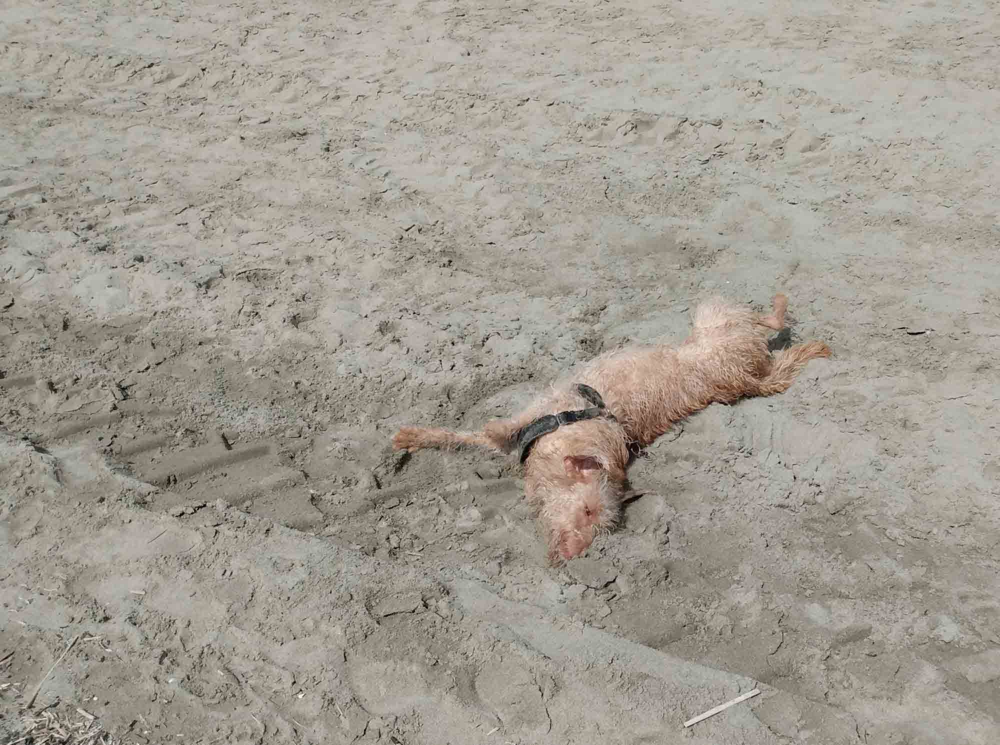 Der Spaziergang am Morgen führte uns über ein Mini-Dörfchen, bestehend aus zwei Häusern und einer Kirche mit Namen San Geminiano (nicht zu verwechseln mit dem wunderschönen Ort bei Siena, worauf wir uns schon sehr freuen) bis auf den höchsten Berg in der näheren Umgebung. Wir wanderten die Skipiste bis nach oben und wurden mit einem tollen Blick über die bergige Landschaft der Appenien belohnt. Dann fuhren wir die holperigen, schmalen und sich in engen Serpentinen schlängelnden Straße quer durch die Berge nach Süden bis wir bei Forte dei Marmi das Mittelmeer erreichten. Wir ließen den Wagen stehen und gingen an den Strand. Berta durfte frei laufen und genoss das Rennen im warmen Sand. Die Wellen des Meeres beängstigten sie überhaupt nicht mehr. Sie lief ein Stück durch das flache Wasser, legte sich dann hin und ließ sich von den sanften Wellen umspülen. Danach wälzte sie sich etliche Male im Sand. Kurz: Sie hatte Spaß. Nach einem kleinen Strandspaziergang entlang des etwa 20 km langen Sandstrandes gingen wir zurück zum Wagen und machten uns auf Stellplatzsuche. In Camaiore entsorgten wir mal wieder unser Wasser und tankten frisches. Um zu dem kleinen Parkplatz bei Chiatri zu gelangen, auf dem wir übernachten wollten, fuhren wir einen kleinen Umweg, da es in den Kommentaren hieß, dass der Weg in Richtung Viareggio sehr schmal sei. Die Straßen, die wir hierfür nahmen, waren dann aber wirklich sehr sehr schmal. Nur gut, dass uns auf der gesamten Strecke nur einmal ein Auto entgegenkam. Nachdem wir einen Wagen überholen ließen, winkte er uns und fuhr in den Kurven hupend vor uns her. Das war mal ein netter Italiener. Schließlich erreichten wir den Platz und machten es uns gemütlich.