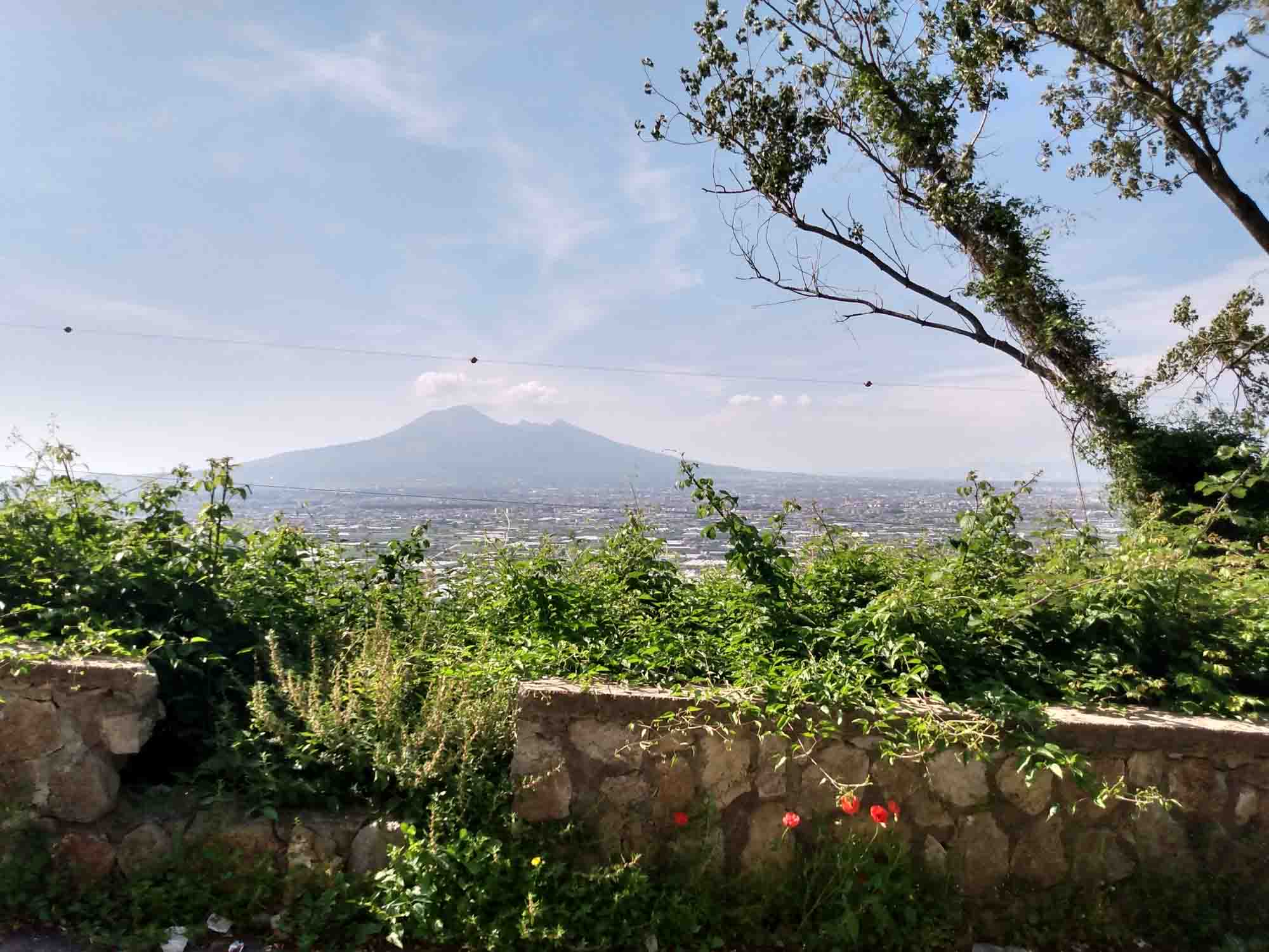 Eigentlich sollte es nur eine kurze Etappe bis zu einem kostenlosen Wohnmobilstellplatz in Santa Maria Capu Vetere, nördlich von Neapel, werden. Aber der Platz war weder sonderlich schön, noch machte die Gruppe von vermutlich Demonstranten, die am nördlichen Ende des Platzes ein bengalisches Feuer entzündet hatten, einen sehr vertrauenserweckenden Eindruck. Also erledigten wir mal wieder das Entleeren und Neubefüllen unserer diversen Tanks und fuhren weiter. Weiter? Nur wohin? Stellplätze sind in der Region von Neapel absolute Mangelware. Die nächstbeste Möglichkeit, um morgen früh in Pompeii zu sein, erschien uns der Parkplatz des Castello di Lettere, das etwas südlich von Pompeii liegt. Nach etwa zwei weiteren Stunden Fahrt bei mittlerweile ziemlich heißen Temperaturen, standen wir vor einem steilen Stück Straße, das nur für Anwohner erlaubt war. 1,8 km dahinter sollte der Parkplatz der Burg sein. Wir fuhren weiter und fuhren die mit Sicherheit steilste Straße hinauf, die wir jemals gefahren sind, immer hoffend, dass auf dieser engen Straße kein Gegenverkehr kommt. Zwei Passagen wurden durch Ampeln geregelt, der Rest war pures Glück. Vor der zweiten Ampel wollten wir eigentlich drehen, was aber auf der schrägen Straße ebenfalls unmöglich war. Eine hinter uns wartende Frau kam uns zu Hilfe, fragte uns, wo wir hinwollten und erklärte, dass wir auch mit unserem Wohnmobil zur Burg fahren könnten. Sie fuhr vorneweg und wir hinterher und so erreichten wir wohlbehalten den kleinen Parkplatz der Burg. Vielleicht 10 Fahrzeuge passten dort hin und auch wir fanden einen passenden Parkplatz. Allerdings stand auf dem ersten Parkplatz bereits ein Polizeiwagen. Und auch sonst war dies nicht der passende Ort für eine Übernachtung. Wir suchten noch einmal und fanden dann die ideale Lösung für heute: Einen Campingplatz direkt am Eingang von Pompeii. Eine halbe Stunde später waren wir dort und stellten den Wagen unter Orangenbäumen ab. 5 Minuten später waren wir am Eingang von Pompeii und brachten in Erfahrung, dass wir unsere Berta morgen würden mitnehmen können. Ziemlich müde von dem aufregenden und anstrengenden Tag fielen wir nach dem Abendbrot bald in den Schlaf.