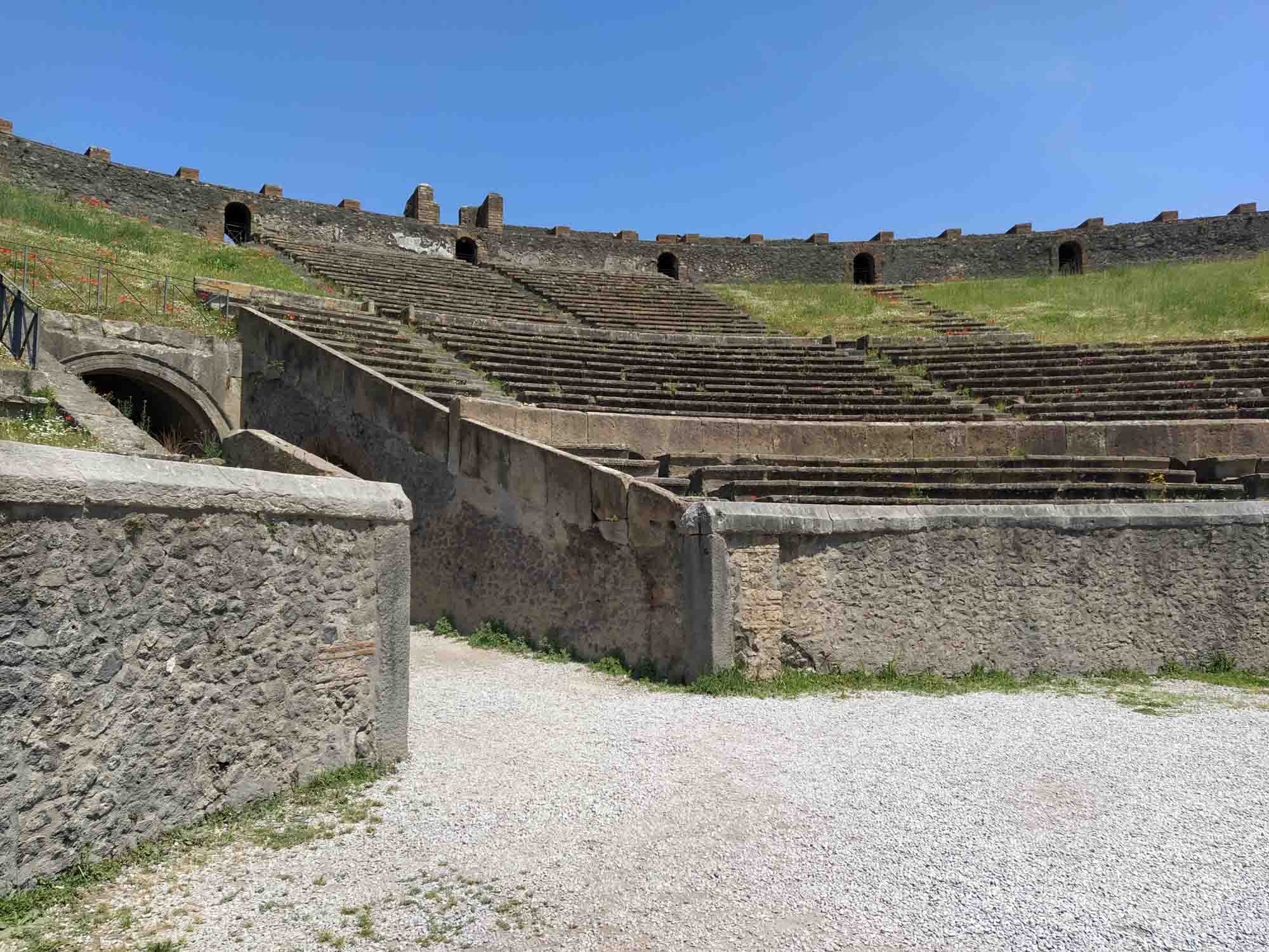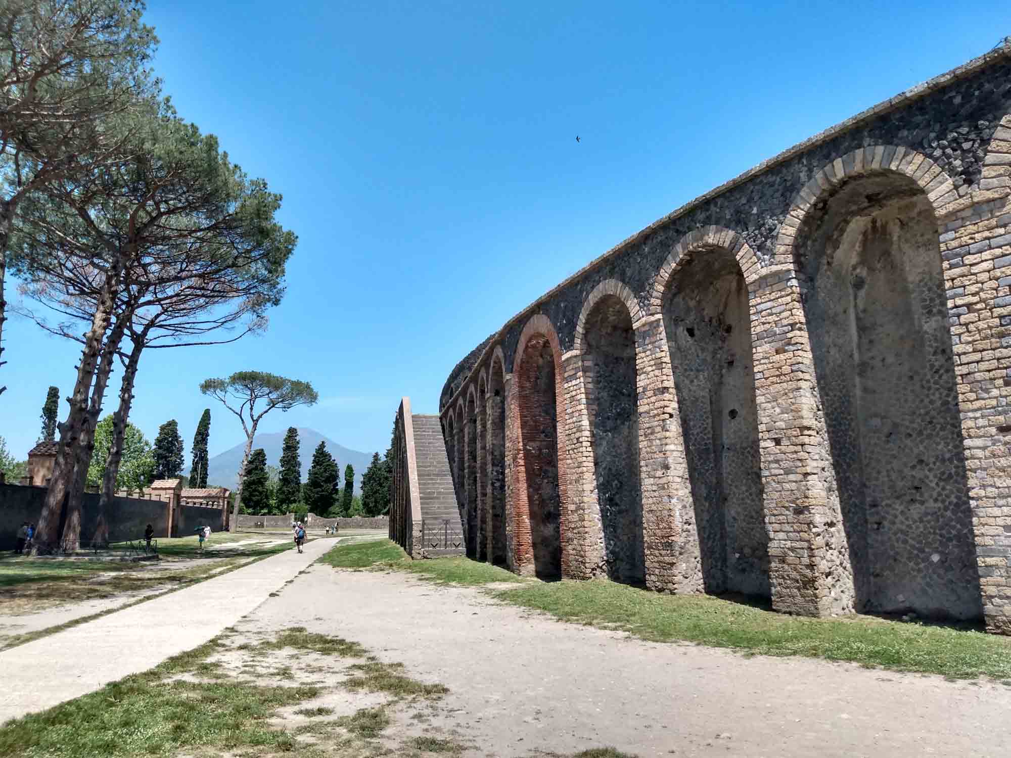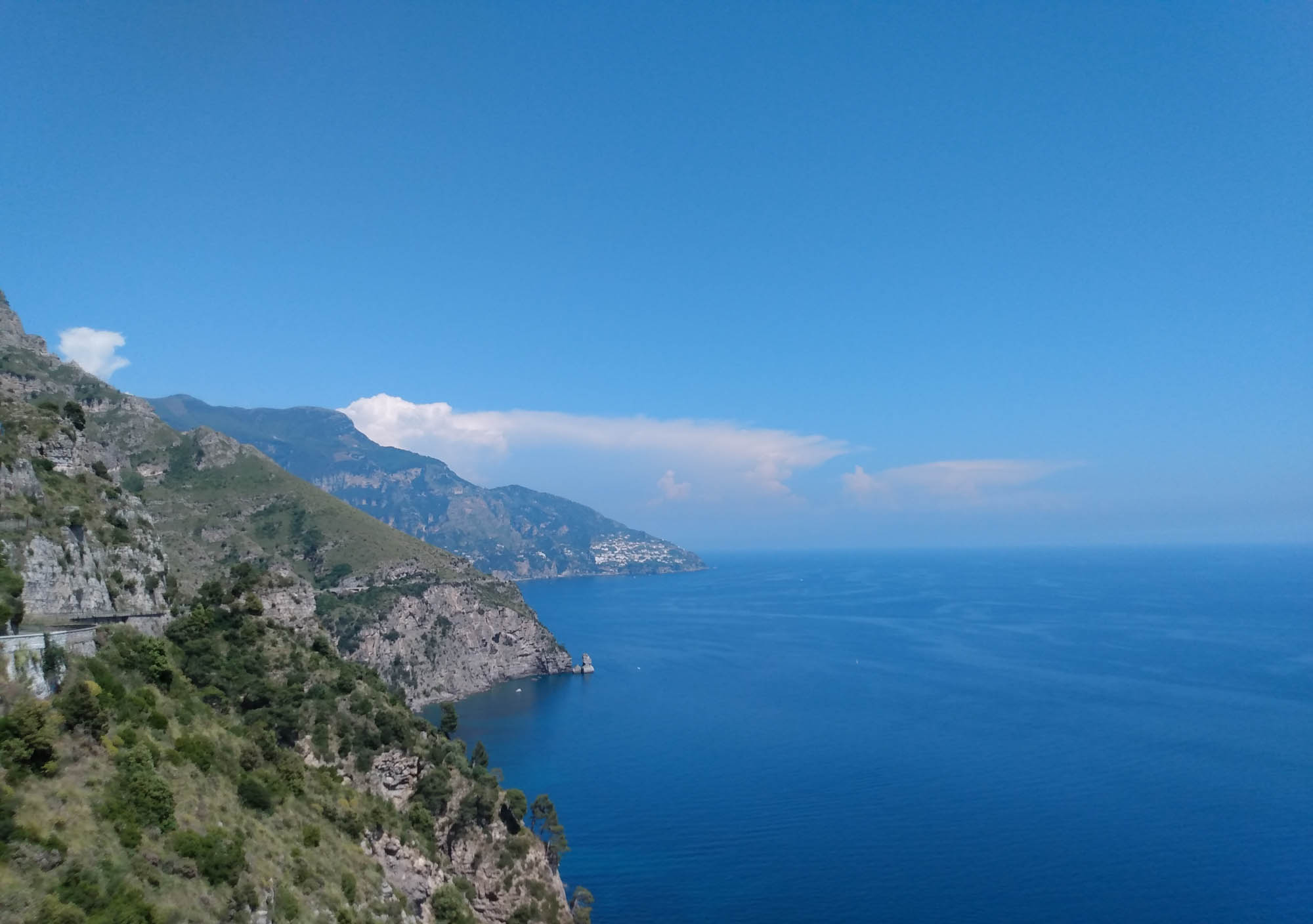Der Wecker klingelte um 8 Uhr und bereits um kurz nach 9 Uhr waren wir an den Pforten von Pompeii. So früh morgens war es noch angenehm kühl und extrem leer. Aber das Gelände ist sehr groß (es war halt eine Stadt) und es gab unglaublich viel zu sehen. So allmählich füllte sich die Ruinenstadt und als wir gegen Mittag wieder beim zentralen Platz ankamen, erkannten wir den Platz vor lauter Menschen kaum wieder. Berta hat prima durchgehalten, wenngleich sie am Ende doch jede Wartezeit im Schatten ausnutzte, um sich hinzulegen. Als wir wieder beim Wohnmobil waren, ließen wir sie noch ein wenig draußen schlafen, bis wir Punkt 14 Uhr zur Auscheckzeit losfuhren. Perfekt. Über Castellammare di Stabia, Vico Equense und Meta fuhren wir auf die Halbinsel an deren Südküste Amalfi und die berühmte Amalfiküste liegt. Den letzten Zipfel ließen wir aus und fuhren quer nach San Pietro auf die Amalfiana. Kurze Zeit später sahen wir ein stark irritierendes Einfahrtsverbot für Wohnmobile. Diese dürfen die Straße an der Südküste nach Salerna nur in der Zeit zwischen 0:00 und 6:30 Uhr befahren. Wenn wir das vorher gewusst hätten, wären wir sicher nicht bis hierher gefahren. Nun aber war der Weg - so dachten wir zumindest - über die Amalfiana der kürzeste und schnellste. Die Straße war zwar eng, aber wir hatten schon sehr viel schmalere Straßen bewältigt. Also fuhren wir weiter. In der ersten Stadt, die wir erreichten, sprach uns eine Polizistin an und sprach irgendetwas in schnellem italienisch. Wir vermuteten, dass Sie uns zu verstehen geben wollte, dass wir hier nicht fahren dürften und doch bitte umkehren möchten. Allerdings war der Ort so eng, dass sich keine Möglichkeit zum Wenden bot. Hin und wieder kam uns ein Bus entgegen, was uns zumindest das Gefühl gab, dass wir schon irgendwie durchkommen würden. Aber Gefühle können trügerisch sein. Zunächst einmal genoß die nicht-fahrende-Hälfte von uns den tollen Blick entlang der Küste auf die malerisch liegenden Ortschaften, die großen Hotels und die Jachten, inkl. einer Megajacht und die teuren Autos. Und natürlich jede Menge Fotos zu machen. Die andere Hälfte kümmerte sich derweil darum, immer einen kleinen Abstand zwischen der sich windenden Betonbegrenzung zu rechten und einen kleinen Abstand zwischen den entgegenkommenden Fahrzeugen zu halten. Mit 20 km/h tasteten wir uns mehr durch die Kurven, als dass wir fuhren. 50 km können so ziemlich lang werden. Hin und wieder hielten wir an, um die hinter uns herfahrende Schlange von Autos vorbeizulassen. Wir fuhren durch Amalfi, Altrani, San Cosma und Minon. Dort standen wir dann plötzlich einem entgegenkommenden Bus gegenüber, wo sich der PKW vor uns gerade noch durchgezwängt hatte. Natürlich klärte uns auch der Busfahrer darüber auf, dass wir hier nicht sein dürften, begann dann aber gleich das Problem zu lösen, und setzte rückwärts, was die hinter ihm stehenden Fahrzeuge sogleich veranlasste ebenfalls zurückzusetzen. Bis zu einer breiteren Stelle wären es vielleicht 10 m gewesen. Leider ließen wir uns bereits nach 4 m auf seine Aufforderung ein, jetzt vorbeizufahren. Noch enger an den Beton auf der rechten Seite und links am Spiegel nur noch 2 cm. Es war eng. Aber es hätte gepasst. Wenn nicht der Busfahrer losgefahren wäre, als wir gerade neben ihm waren. So touchierte sein Spiegel kurz mit unserer linken Seite. Ein kurzer Augenkontakt mit der Bestätigung, dass wir beide nicht länger die Straße blockieren wollten, so ging es typisch italienisch weiter. Eine Dreiviertelstunde später waren wir sehr froh, es ohne weiteren Schaden und ohne von der Polizei angehalten worden zu sein bis Salerno geschafft zu haben. Danach fuhren wir der Küste folgend noch eine Stunde weiter bis wir bei Paestum einen schönen Platz für die Nacht direkt am Strand gefunden haben. Natürlich gingen wir sofort an den Strand und Berta war nach diesem langen Fahrtag sichtlich froh, wieder etwas Bewegung zu bekommen.