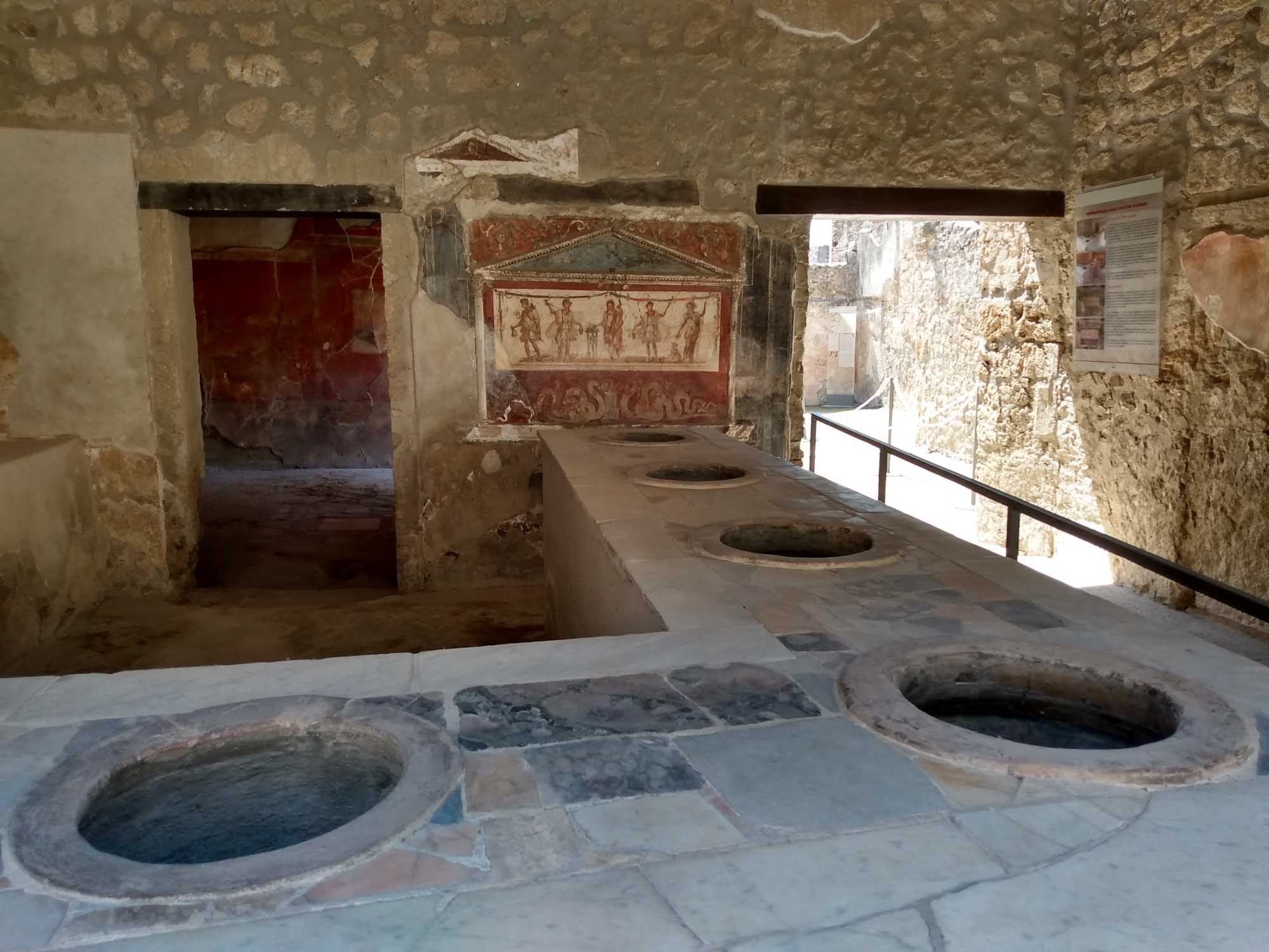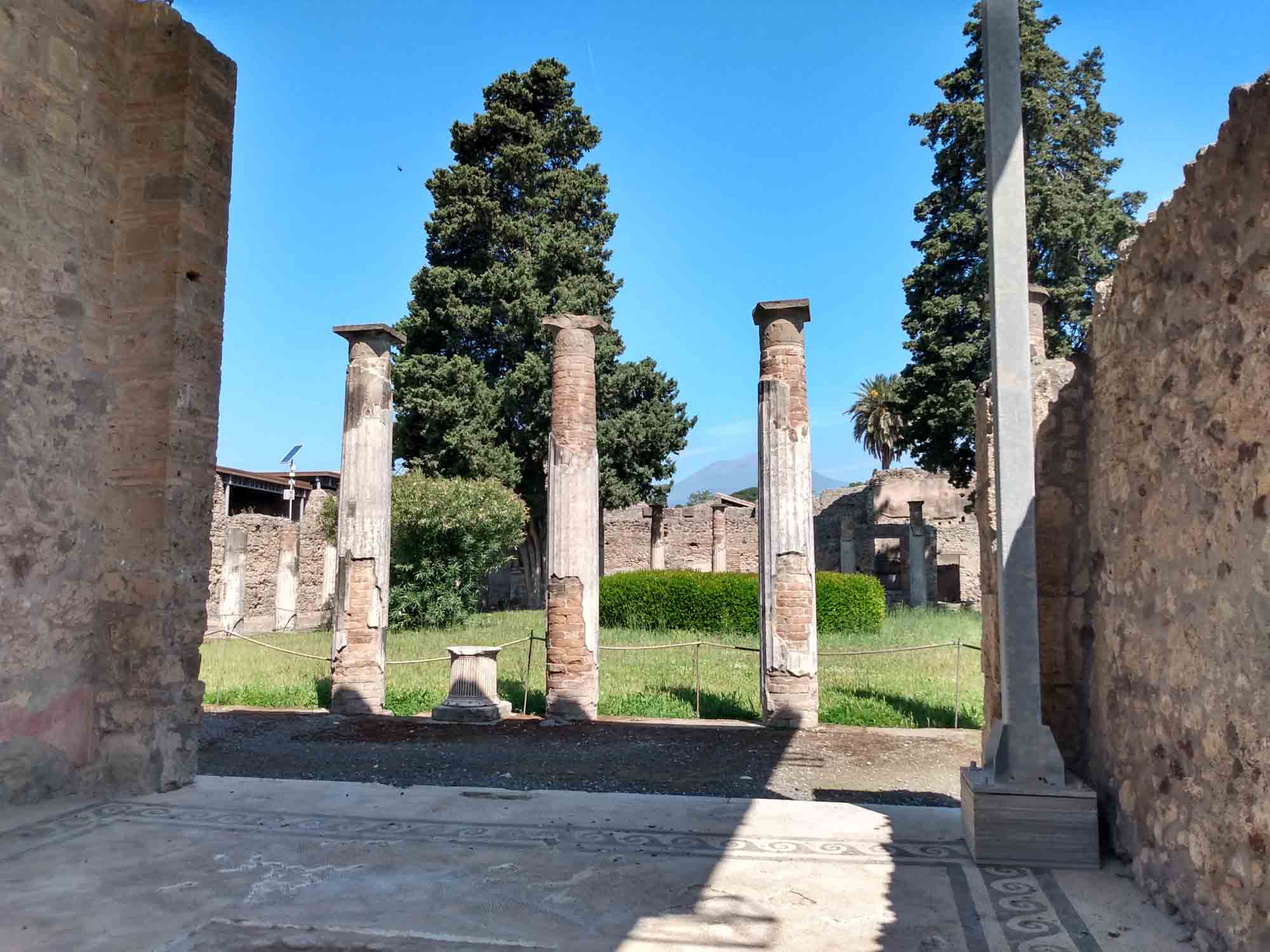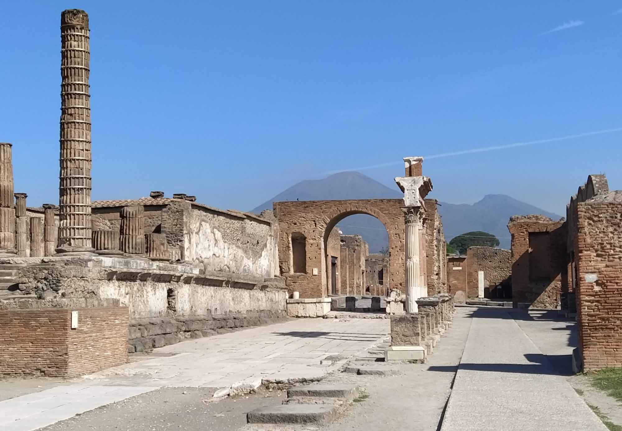 Der Wecker klingelte um 8 Uhr und bereits um kurz nach 9 Uhr waren wir an den Pforten von Pompeii. So früh morgens war es noch angenehm kühl und extrem leer. Aber das Gelände ist sehr groß (es war halt eine Stadt) und es gab unglaublich viel zu sehen. So allmählich füllte sich die Ruinenstadt und als wir gegen Mittag wieder beim zentralen Platz ankamen, erkannten wir den Platz vor lauter Menschen kaum wieder. Berta hat prima durchgehalten, wenngleich sie am Ende doch jede Wartezeit im Schatten ausnutzte, um sich hinzulegen. Als wir wieder beim Wohnmobil waren, ließen wir sie noch ein wenig draußen schlafen, bis wir Punkt 14 Uhr zur Auscheckzeit losfuhren. Perfekt. Über Castellammare di Stabia, Vico Equense und Meta fuhren wir auf die Halbinsel an deren Südküste Amalfi und die berühmte Amalfiküste liegt. Den letzten Zipfel ließen wir aus und fuhren quer nach San Pietro auf die Amalfiana. Kurze Zeit später sahen wir ein stark irritierendes Einfahrtsverbot für Wohnmobile. Diese dürfen die Straße an der Südküste nach Salerna nur in der Zeit zwischen 0:00 und 6:30 Uhr befahren. Wenn wir das vorher gewusst hätten, wären wir sicher nicht bis hierher gefahren. Nun aber war der Weg - so dachten wir zumindest - über die Amalfiana der kürzeste und schnellste. Die Straße war zwar eng, aber wir hatten schon sehr viel schmalere Straßen bewältigt. Also fuhren wir weiter. In der ersten Stadt, die wir erreichten, sprach uns eine Polizistin an und sprach irgendetwas in schnellem italienisch. Wir vermuteten, dass Sie uns zu verstehen geben wollte, dass wir hier nicht fahren dürften und doch bitte umkehren möchten. Allerdings war der Ort so eng, dass sich keine Möglichkeit zum Wenden bot. Hin und wieder kam uns ein Bus entgegen, was uns zumindest das Gefühl gab, dass wir schon irgendwie durchkommen würden. Aber Gefühle können trügerisch sein. Zunächst einmal genoß die nicht-fahrende-Hälfte von uns den tollen Blick entlang der Küste auf die malerisch liegenden Ortschaften, die großen Hotels und die Jachten, inkl. einer Megajacht und die teuren Autos. Und natürlich jede Menge Fotos zu machen. Die andere Hälfte kümmerte sich derweil darum, immer einen kleinen Abstand zwischen der sich windenden Betonbegrenzung zu rechten und einen kleinen Abstand zwischen den entgegenkommenden Fahrzeugen zu halten. Mit 20 km/h tasteten wir uns mehr durch die Kurven, als dass wir fuhren. 50 km können so ziemlich lang werden. Hin und wieder hielten wir an, um die hinter uns herfahrende Schlange von Autos vorbeizulassen. Wir fuhren durch Amalfi, Altrani, San Cosma und Minon. Dort standen wir dann plötzlich einem entgegenkommenden Bus gegenüber, wo sich der PKW vor uns gerade noch durchgezwängt hatte. Natürlich klärte uns auch der Busfahrer darüber auf, dass wir hier nicht sein dürften, begann dann aber gleich das Problem zu lösen, und setzte rückwärts, was die hinter ihm stehenden Fahrzeuge sogleich veranlasste ebenfalls zurückzusetzen. Bis zu einer breiteren Stelle wären es vielleicht 10 m gewesen. Leider ließen wir uns bereits nach 4 m auf seine Aufforderung ein, jetzt vorbeizufahren. Noch enger an den Beton auf der rechten Seite und links am Spiegel nur noch 2 cm. Es war eng. Aber es hätte gepasst. Wenn nicht der Busfahrer losgefahren wäre, als wir gerade neben ihm waren. So touchierte sein Spiegel kurz mit unserer linken Seite. Ein kurzer Augenkontakt mit der Bestätigung, dass wir beide nicht länger die Straße blockieren wollten, so ging es typisch italienisch weiter. Eine Dreiviertelstunde später waren wir sehr froh, es ohne weiteren Schaden und ohne von der Polizei angehalten worden zu sein bis Salerno geschafft zu haben. Danach fuhren wir der Küste folgend noch eine Stunde weiter bis wir bei Paestum einen schönen Platz für die Nacht direkt am Strand gefunden haben. Natürlich gingen wir sofort an den Strand und Berta war nach diesem langen Fahrtag sichtlich froh, wieder etwas Bewegung zu bekommen.