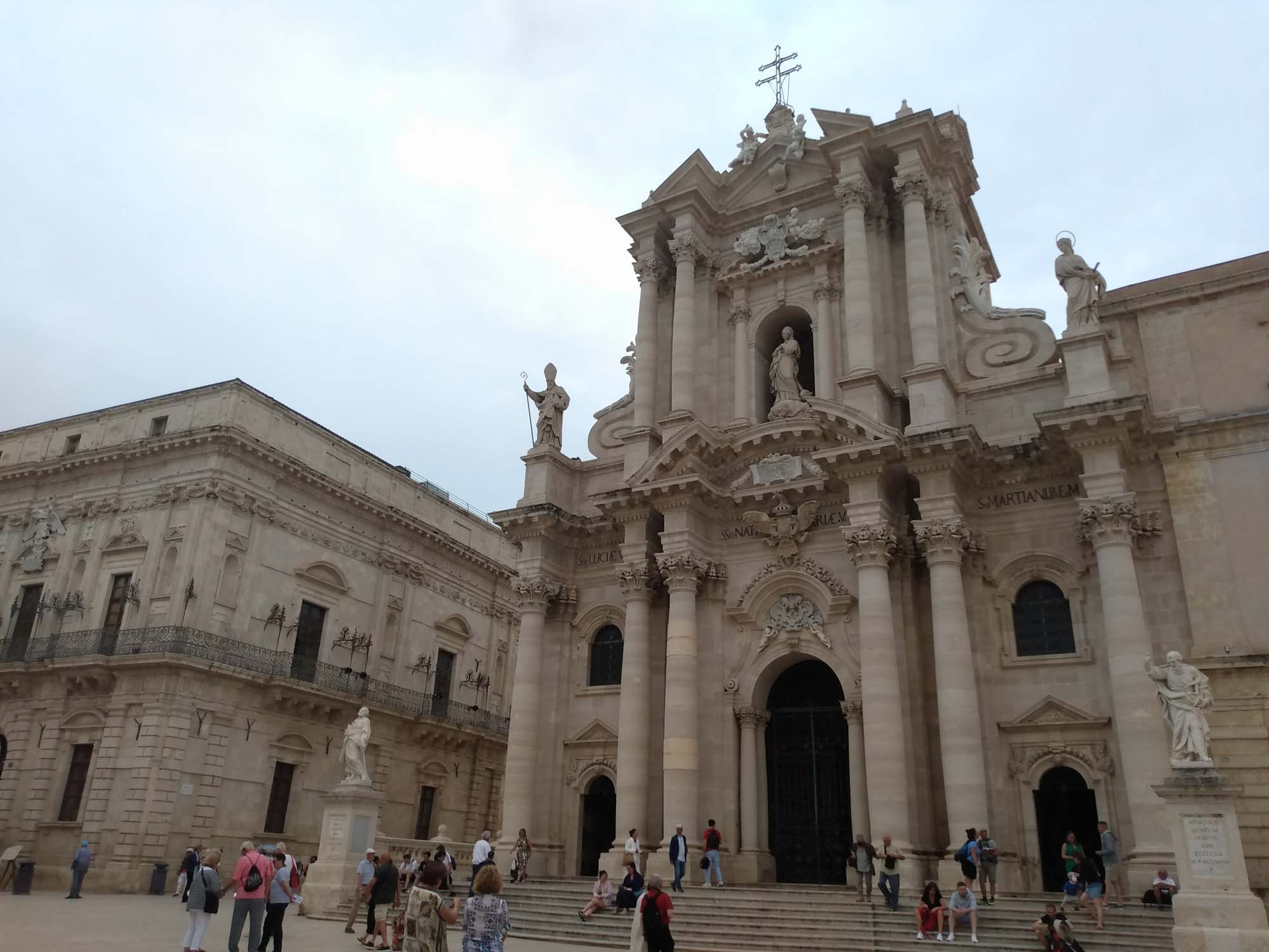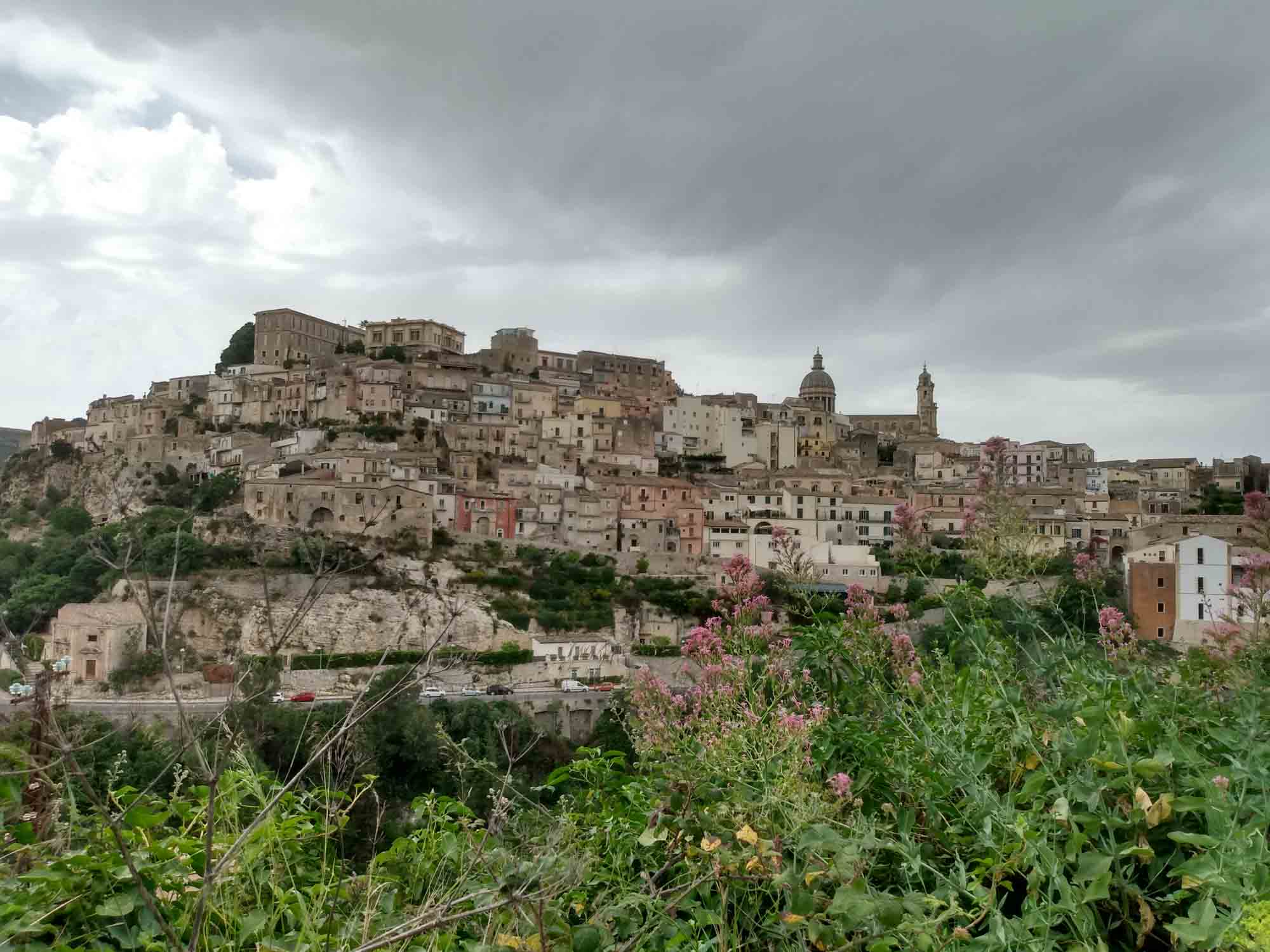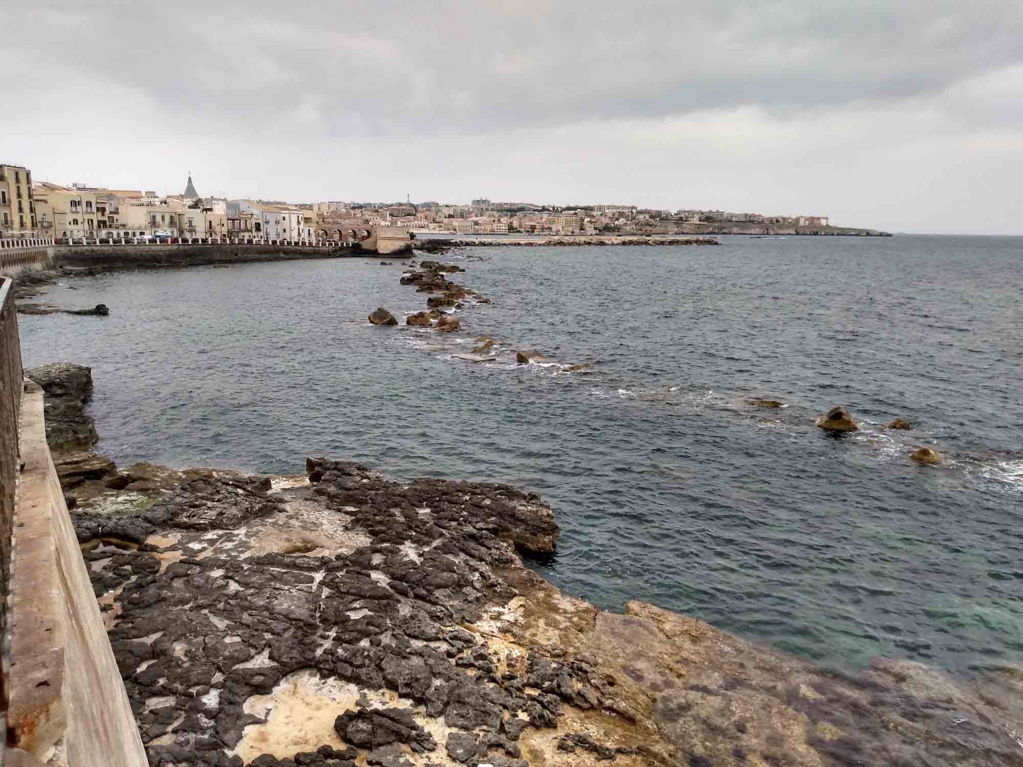 Einen nicht ganz so heißen Tag, es waren "nur" 29 Grad angesagt, nutzten wir, um mit dem Mietwagen von Jutta und Manfred, einem kleinen Fiat Panda, einen Ausflug zu machen. Als erstes sahen wir uns Syrakus an, waren aber zunächst etwas entäuscht, da wir viel mehr historische Bauten erwartet hatten. Stattdessen bot sich das typische Bild italienischer Kleinstädte: Lieblose Fassaden alter Häuser mit heruntergefallenem Putz. Aber der Weg auf der alten Mauer am Wasser auf der kleinen Halbinsel, auf der die Altstadt steht war schon sehr schön und als wir für den Rückweg quer durch die Altstadt gingen, gab es doch einen Platz, der uns sehr gut gefallen hat. Dort testeten wir Cannoli, eine syrakusische Spezialität bestehend aus einem Waffelröllchen gefüllt mit einer nicht-süssen Creme. Wir entschieden, das wir das nicht unbedingt noch einmal haben müssten. Etwas süsser wäre uns wohl lieb gewesen. Oder ein Eis. Ein Eis ist immer gut. Danach ging es über Noto nach Modica, einer Stadt, die zum Weltkulturerbe gehört und im Tal mehrerer Schluchten liegt. Hier gönnten wir uns das besagte Eis, das größtenteils sehr lecker war. Nur die Sorte "Nutella" hätten wir nicht wählen sollen. Dieses war nämlich lediglich sehr sehr kaltes Nutella und entsprechend süss und fettig und kaum zu essen. Wir teilten es auf und freuten uns über die anderen Sorten. Die Stadt selbst war kaum eine Reise wert: Alt und verfallen und eher aus der Ferne zu genießen. Weiter ging es nach Ragusa, der letzten Weltkulturerbe-Stadt an diesem Tag. Nachdem wir den Wagen abgestellt hatten, spazierten wir in die Altstadt. Die Stadt war in einem deutlich besseren Zustand, als die anderen, die wir heute gesehen hatten. Entlang einer kleinen Einkaufsstraße spazierten wir bis zum Dom in dessen Garten, geschützt durch einen Zaun, eine Katze saß, für die sich Berta sichtlich interessierte. Sie bellte immer wieder aber die Katze blieb einfach still sitzen. Nach einer Weile beruhigte sich Berta und hatten dann Zeit, die Katze zu beobachten. Allerdings nicht, ohne es hin und wieder mit einem weiteren Bellen zu probieren. Die Katze blieb geduldig sitzen und durch nichts aus der Ruhe bringen. Danach gingen wir wieder zum Auto und fuhren zurück zum Ferienhaus, wo bereits ein leckeres Abendbrot auf uns wartete.