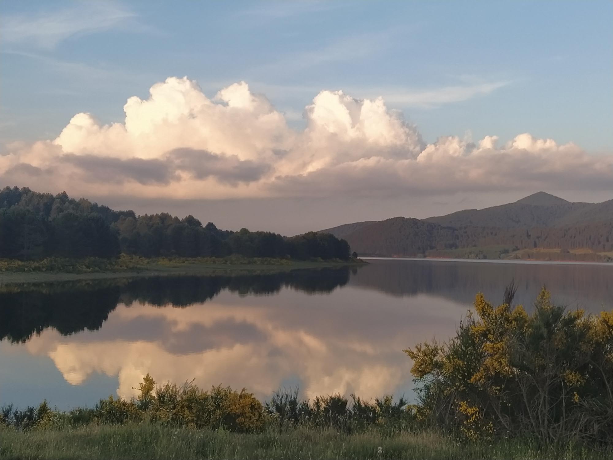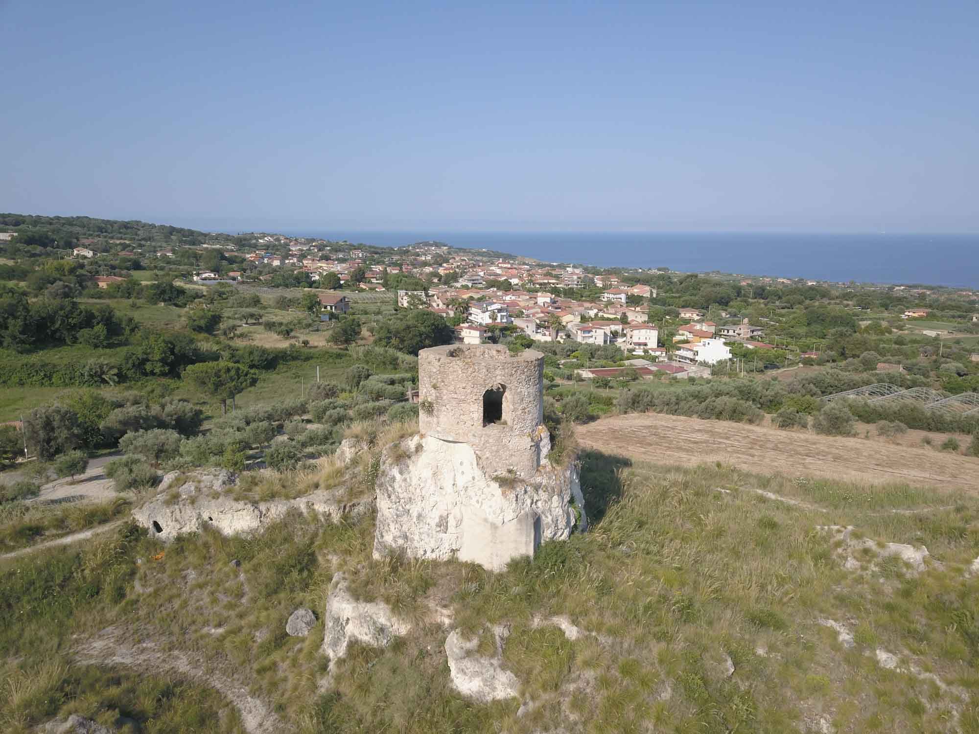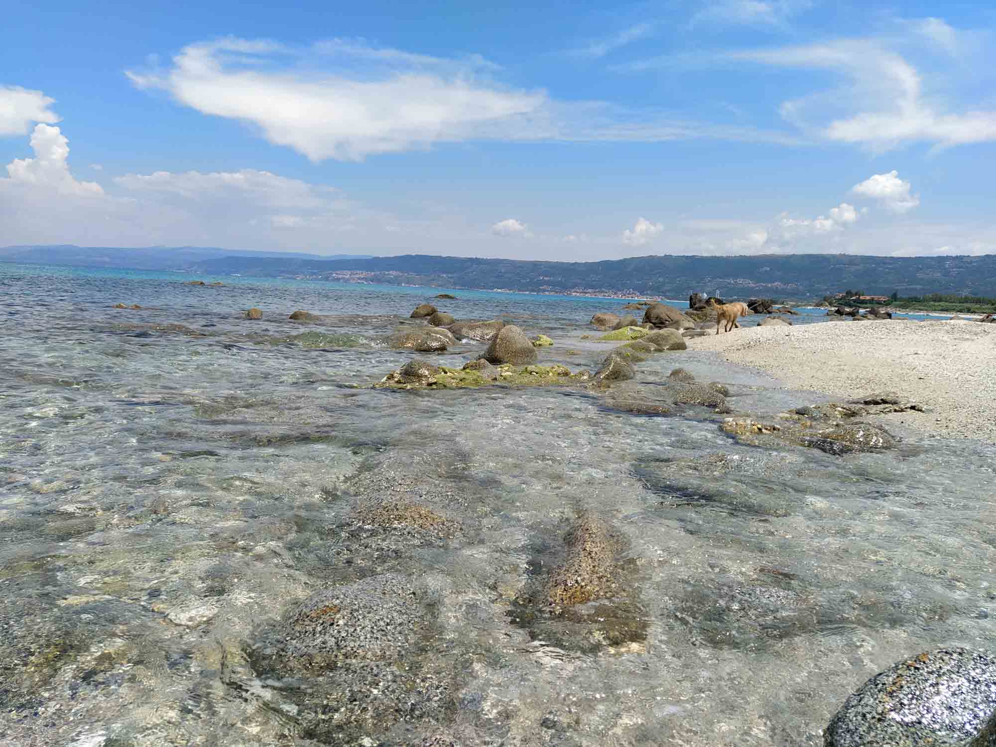 Vor dem Losfahren machten wir noch einen Drohnenflug von der Ruine des Turmes, wo wir übernachtet hatten. Dann ging es nach Tropea. Mal wieder ein kleines Örtchen mit überschaubar breiten Straßen. Ein entgegenkommendes Wohnmobil hielt kurz an, um uns mittzuteilen, dass es hier kein Weiterkommen gab. Eine Brücke sei mit 2,80 m zu niedrig und die andere Strecke gesperrt. Wir versuchten es trotzdem und bekamen kurz vor besagter Brücke sogar einen kostenlosen Parkplatz. Bei unserem Spaziergang in die Altstadt war es schon wieder ziemlich warm geworden. Und so verzichten wir auf den Abstieg zum Strand und die Besichtigung der Kirche am Strand und machten nur von oben einige Fotos. Die Altstadt erinnerte uns ein wenig an die von Cefalù, obwohl sie deutlich kleiner war. Für ein Eis war es uns noch zu früh und so fuhren wir weiter. Natürlich unter der Brücke durch, auf der sehr deutlich ein Schild mit 2,80 m angebracht war. Über unserem Wohnmobil (Höhe 2,85 m) war bestimmt noch 1 m Platz. Sie hatten wohl gerade dieses Schild gehabt und es passt auch irgendwie ganz hübsch dorthin. Danach führte uns der Weg in die Berge oberhalb von Tropea zu dem kleinen Örtchen Zungri. Dort genehmigten wir uns erst einmal einen Espresso und einen Cappuchino bevor wir gemütlich durch das niedliche Örtchen zu den Grotten von Zungri spazierten. Berta durfte mit hinein und die zahlreichen Felsenbehausungen bewundern, die irgendein Völkchen vor tausend Jahren hier in den Kalkstein gehauen hat. Auch das zugehörige Museum, in dem Alltagsgegenstände aus dem 18. Jahrhundert ausgestellt waren, war durchaus sehenswert, zumal es angenehm gekühlt war. Weiter ging es wieder zum Meer, wo wir uns mit einer Wassermelone erfrischten und Berta sich im Meer abkühlte. Nach dieser kleinen Pause fuhren wir nach Pizzo, wo wir auch diesmal kein Tartuffo kauften, sondern die Chiesa die Piedigrotta besichtigten. Dies ist eine Felsenhöhle am Strand, in der unterschiedliche Künstler zahlreiche Skulpturen aus dem Fels gehauen haben. Einige der Figuren hatten schon ziemlich unter dem Zahn der Zeit zu leiden gehabt, waren aber noch immer unbedingt bewundernswert. Als wir aus der Kühle der Höhle wieder herauskamen, waren wir von der Hitze draußen regelrecht erschlagen. Danach ging es wieder in die Berge. Allerdings wollten wir vorher noch einkaufen, da es in der Abgeschiedenheit des Nationalparks Sila keine Einkaufsmöglichkeiten mehr geben würde. Dies stellte sich jedoch komplizierter dar als erwartet. Insgesamt mussten wir drei Conads anfahren, um zumindest halbwegs mit Brot und Wasser versorgt zu sein. Anstelle der geplanten Wachteln wird es Kaninchen geben. Und das wird auch nicht gegrillt werden, sondern natürlich geschmort. Aber dazu morgen mehr. Wir fuhren noch eine weitere Stunde immer höher in die Berge und allmählich wurde es auch wieder angenehm kühler. Um zu unserem Stellplatz auf einer Wiese am Lago Avro zu kommen mussten wir ein Tor aus Stacheldraht öffnen (und natürlich hinter uns wieder schließen) und danach einem ziemlich schlechten Feldweg in den bereits etliche Büsche hineingewachsen waren bis zum Wasser des Sees folgen. Aber am Ende wurden wir mit einem fantastischen Platz mit Blick auf den See, an dessen Ufer gelb blühende Ginsterbüsche standen belohnt. Im See sprangen die Fische und wollten geangelt werden. Aber heute nicht mehr. Im Kühlschrank war kein Platz. Nach einer kleinen Erkundungstour über die Wiese und am Seeufer entlang gab es Abendbrot und unsere Kleine legte sich müde von dem heißen Tag und der anstrengenden Fahrt hin und schlief sofort ein.