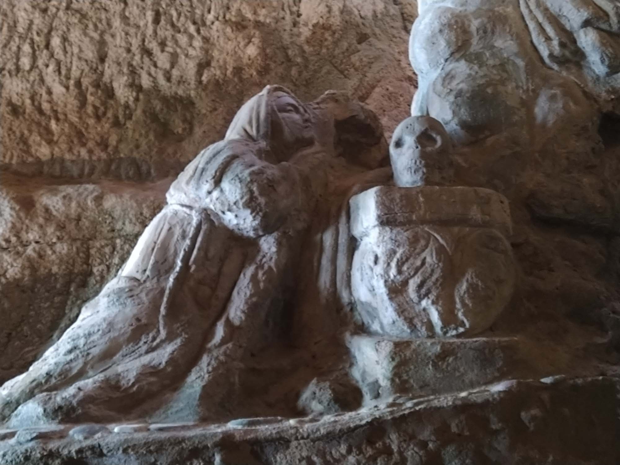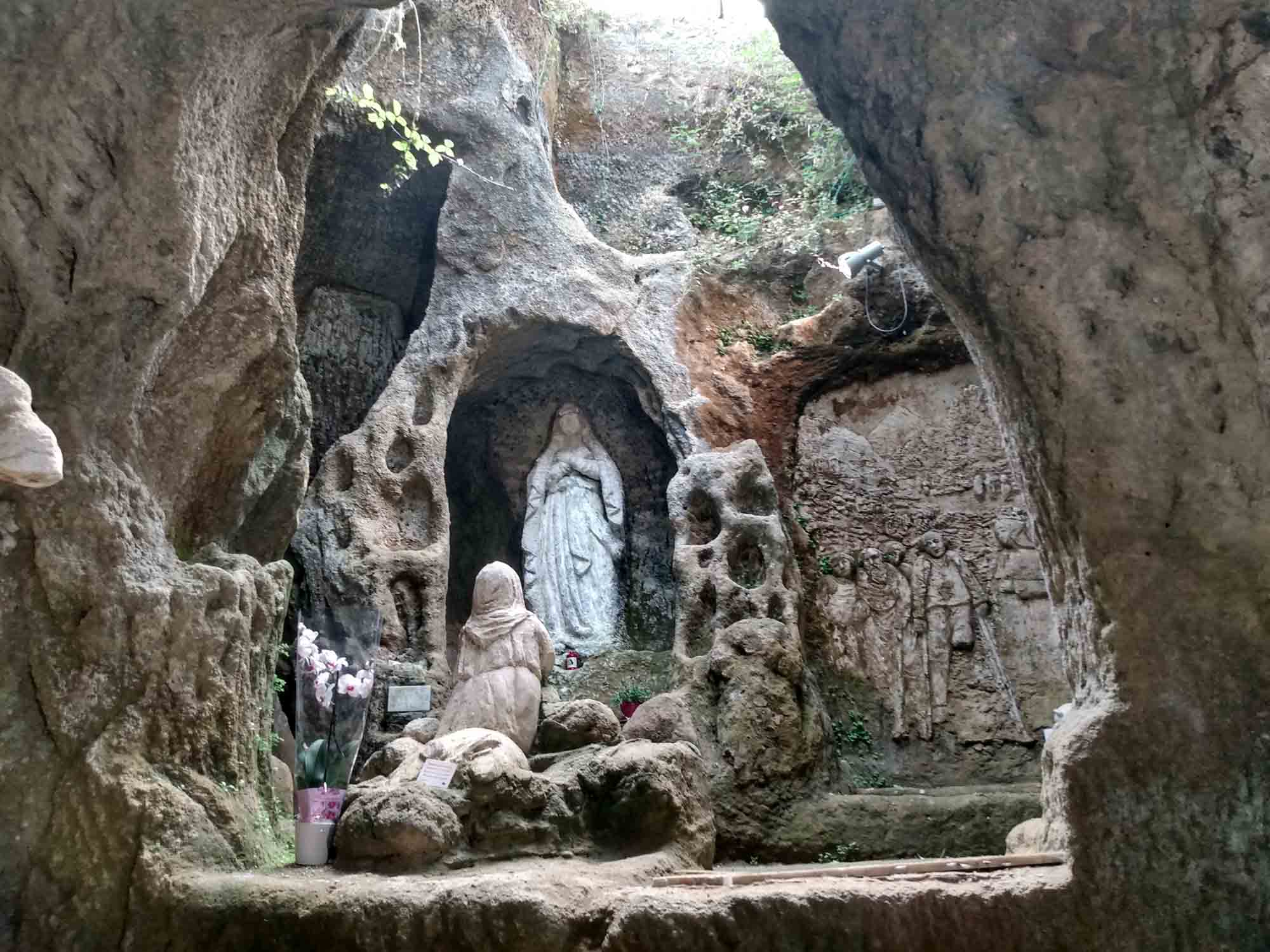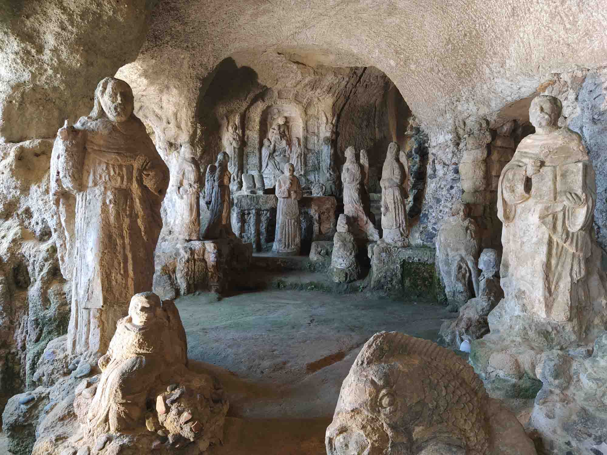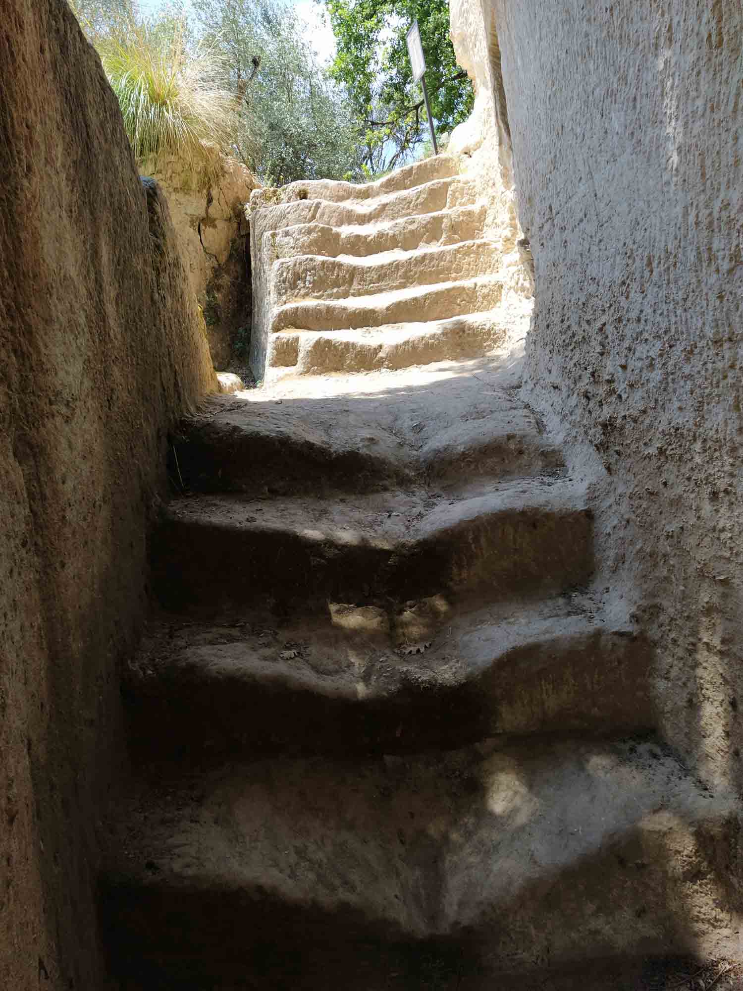 Vor dem Losfahren machten wir noch einen Drohnenflug von der Ruine des Turmes, wo wir übernachtet hatten. Dann ging es nach Tropea. Mal wieder ein kleines Örtchen mit überschaubar breiten Straßen. Ein entgegenkommendes Wohnmobil hielt kurz an, um uns mittzuteilen, dass es hier kein Weiterkommen gab. Eine Brücke sei mit 2,80 m zu niedrig und die andere Strecke gesperrt. Wir versuchten es trotzdem und bekamen kurz vor besagter Brücke sogar einen kostenlosen Parkplatz. Bei unserem Spaziergang in die Altstadt war es schon wieder ziemlich warm geworden. Und so verzichten wir auf den Abstieg zum Strand und die Besichtigung der Kirche am Strand und machten nur von oben einige Fotos. Die Altstadt erinnerte uns ein wenig an die von Cefalù, obwohl sie deutlich kleiner war. Für ein Eis war es uns noch zu früh und so fuhren wir weiter. Natürlich unter der Brücke durch, auf der sehr deutlich ein Schild mit 2,80 m angebracht war. Über unserem Wohnmobil (Höhe 2,85 m) war bestimmt noch 1 m Platz. Sie hatten wohl gerade dieses Schild gehabt und es passt auch irgendwie ganz hübsch dorthin. Danach führte uns der Weg in die Berge oberhalb von Tropea zu dem kleinen Örtchen Zungri. Dort genehmigten wir uns erst einmal einen Espresso und einen Cappuchino bevor wir gemütlich durch das niedliche Örtchen zu den Grotten von Zungri spazierten. Berta durfte mit hinein und die zahlreichen Felsenbehausungen bewundern, die irgendein Völkchen vor tausend Jahren hier in den Kalkstein gehauen hat. Auch das zugehörige Museum, in dem Alltagsgegenstände aus dem 18. Jahrhundert ausgestellt waren, war durchaus sehenswert, zumal es angenehm gekühlt war. Weiter ging es wieder zum Meer, wo wir uns mit einer Wassermelone erfrischten und Berta sich im Meer abkühlte. Nach dieser kleinen Pause fuhren wir nach Pizzo, wo wir auch diesmal kein Tartuffo kauften, sondern die Chiesa die Piedigrotta besichtigten. Dies ist eine Felsenhöhle am Strand, in der unterschiedliche Künstler zahlreiche Skulpturen aus dem Fels gehauen haben. Einige der Figuren hatten schon ziemlich unter dem Zahn der Zeit zu leiden gehabt, waren aber noch immer unbedingt bewundernswert. Als wir aus der Kühle der Höhle wieder herauskamen, waren wir von der Hitze draußen regelrecht erschlagen. Danach ging es wieder in die Berge. Allerdings wollten wir vorher noch einkaufen, da es in der Abgeschiedenheit des Nationalparks Sila keine Einkaufsmöglichkeiten mehr geben würde. Dies stellte sich jedoch komplizierter dar als erwartet. Insgesamt mussten wir drei Conads anfahren, um zumindest halbwegs mit Brot und Wasser versorgt zu sein. Anstelle der geplanten Wachteln wird es Kaninchen geben. Und das wird auch nicht gegrillt werden, sondern natürlich geschmort. Aber dazu morgen mehr. Wir fuhren noch eine weitere Stunde immer höher in die Berge und allmählich wurde es auch wieder angenehm kühler. Um zu unserem Stellplatz auf einer Wiese am Lago Avro zu kommen mussten wir ein Tor aus Stacheldraht öffnen (und natürlich hinter uns wieder schließen) und danach einem ziemlich schlechten Feldweg in den bereits etliche Büsche hineingewachsen waren bis zum Wasser des Sees folgen. Aber am Ende wurden wir mit einem fantastischen Platz mit Blick auf den See, an dessen Ufer gelb blühende Ginsterbüsche standen belohnt. Im See sprangen die Fische und wollten geangelt werden. Aber heute nicht mehr. Im Kühlschrank war kein Platz. Nach einer kleinen Erkundungstour über die Wiese und am Seeufer entlang gab es Abendbrot und unsere Kleine legte sich müde von dem heißen Tag und der anstrengenden Fahrt hin und schlief sofort ein.