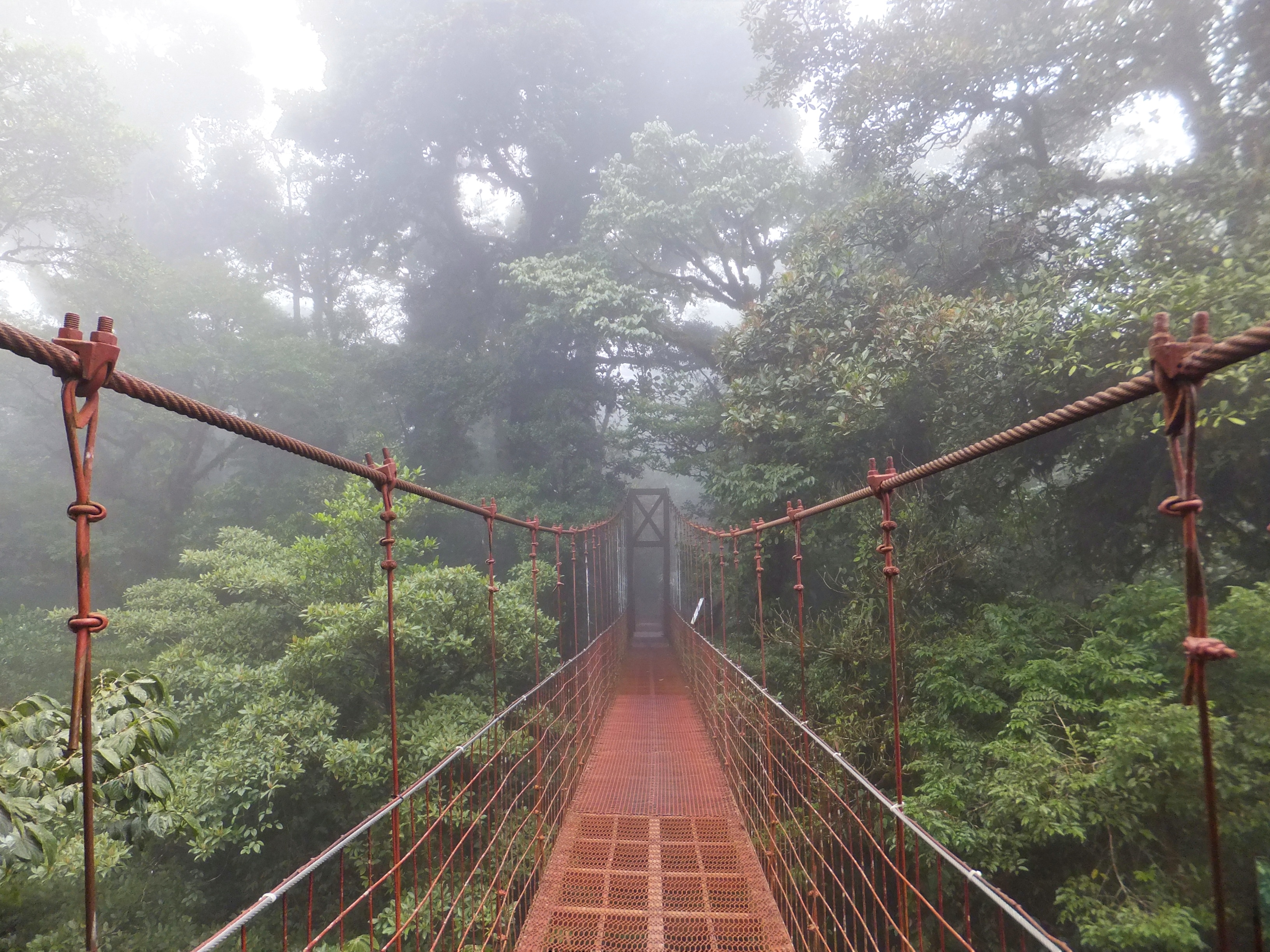 Nachdem wir uns vorgestern bei 29 Grad einen Tag Auszeit gegönnt und gestern eine sehr schöne Strecke um den Arenal-Stausee herum und quer durch die hügelige Landschaft nach Monteverde gefahren sind, haben wir heute wieder einen ausgiebigen Spaziergang durch den Nationalpark in Monteverde gemacht. Der Nebelwald machte seinem Namen alle Ehre. Es war kalt und über den Hügeln waberte dichter Nebel. Wir nutzten die Zeit bis zur Schließung des Parks um 16:00 Uhr gut aus und bekamen während unseres Spaziergangs einiges zu sehen. Vor allem die überall zu sehenden verschiedenen Blüten hatten es uns angetan. Aber uns liefen auch ein paar Aguties über den Weg.