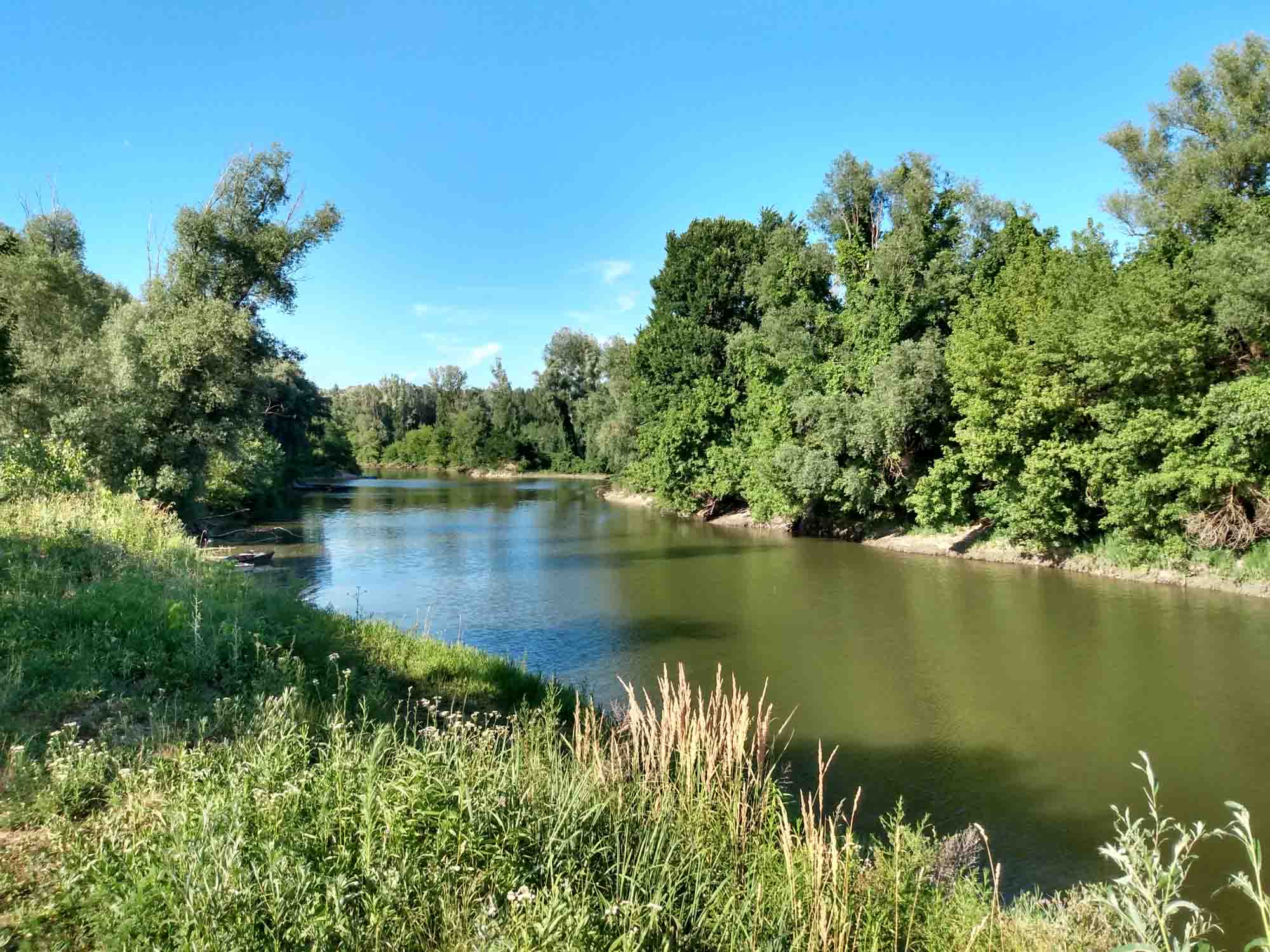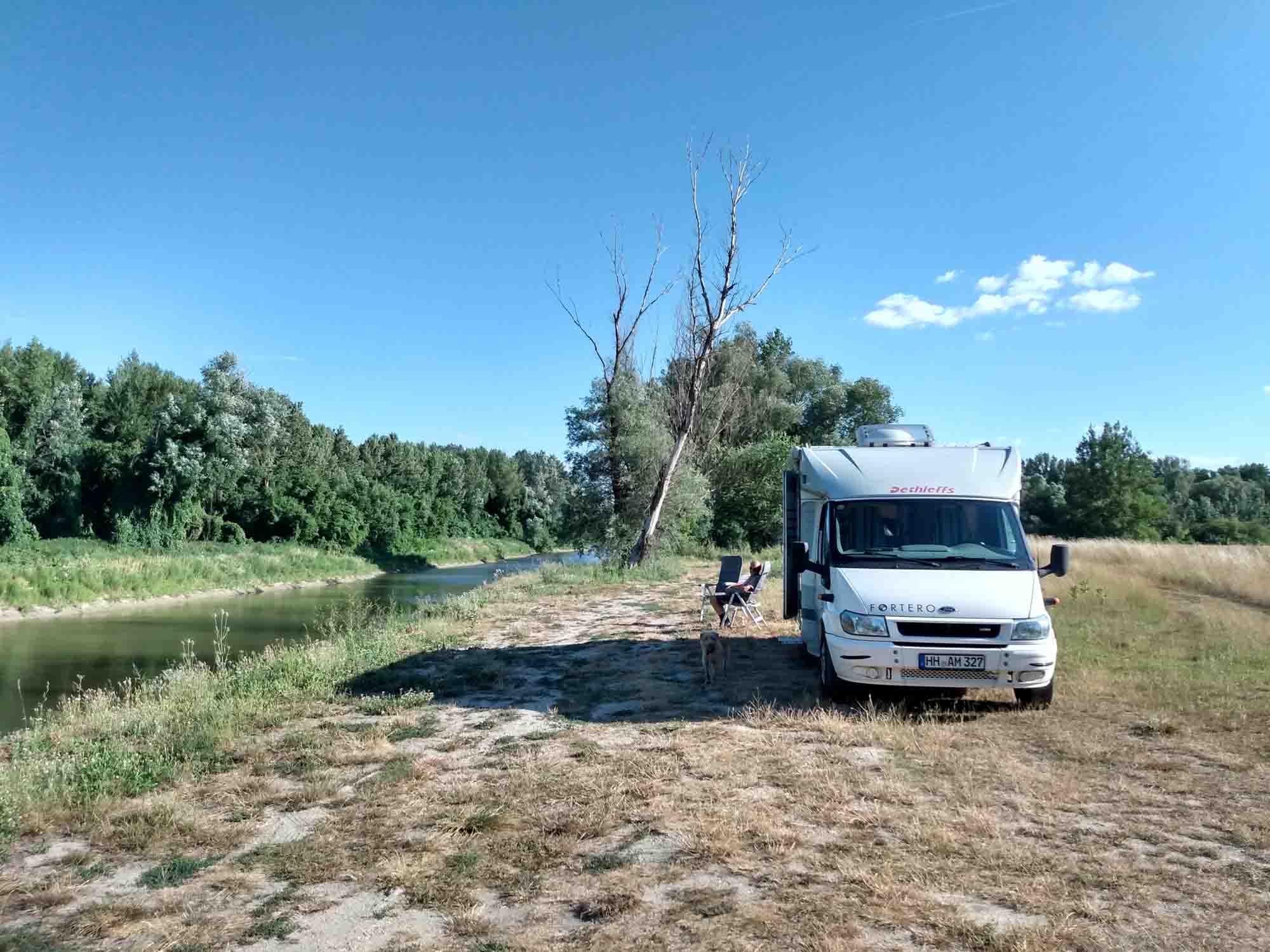 Nach einem großzügigen Abschiedsspaziergang und Austoben von Berta, die diesmal nichts zu jagen gefunden hatte, aber dennoch viel gerannt ist, machten wir uns auf den Weg nach Tihany. Dies ist ein kleines Dorf mit einer Abtei auf einer Halbinsel im Plattensee. Wir waren sehr erstaunt so viele kleine Souvenierläden zu sehen, in denen Lavendel verkauft wurde. Aber als wie weiterfuhren sahen wir die großen blühenden Felder, die wir im letzten Jahr in der Provence verpasst hatten. Trotz der vielen Besucher war es im Dorf unglaublich ruhig. Die Ungarn sind so völlig anders als die Italiener. Ruhig, zurückhaltend, freundlich, zuvorkommend, rücksichtsvoll. Wir glauben, wir mögen die Ungarn. Bis zu unserem nächsten Stellplatz brauchten wir eine gute Stunde, die wir durch große Felder mit Sonnenblumen, Mais und abgeerntetem Getreide fuhren. Der Platz selbst lag kurz vor Budapest direkt an der Donau, die hier noch ziemlich schmal ist. Außer kleinen Anglerbooten fährt hier noch nichts. Angeln wollen wir morgen wieder. Heute gab es Hähnchenkäulen vom Grill.