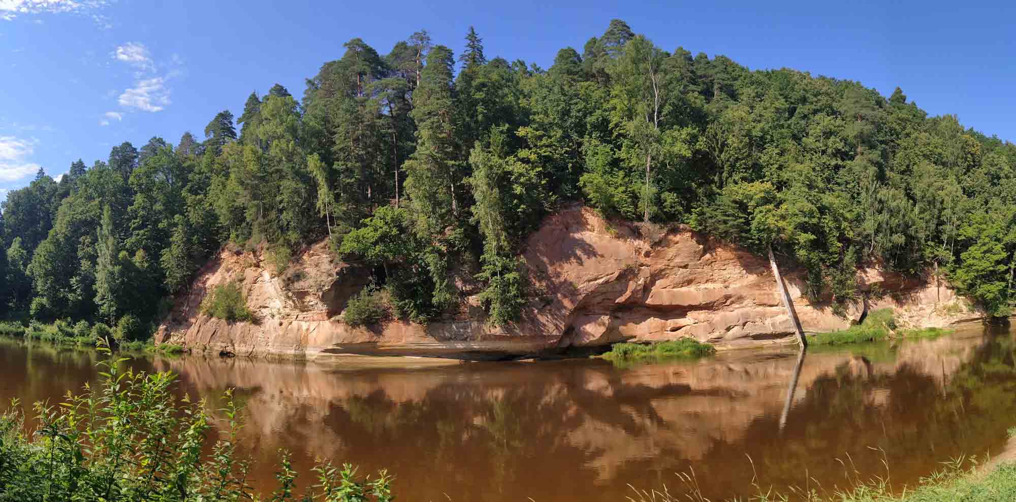 Wir hatten mal wieder eine schöne ruhige Nacht. Morgens gingen wir noch auf den Burghügel, wo jedoch nichts mehr von einer Burg übrig war. Von dort hatten wir aber noch einmal einen tollen Blick entlang des Flusses. Dann fuhren wir weiter nach Norden, an Riga vorbei zum Gauja Nationalpark. Beim "Info-Center" fanden wir immerhin eine Karte, die wir fotographieren konnten. Ansonsten von Info keine Spur. Das machte aber nichts, da wir sowieso einen Stellplatz an der Teufelshöhle ausgesucht hatten. Und dieser erwies sich als perfekt. Mitten im Wald gelegen, menschenleer und dort begannen zahlreiche Wanderrouten, von denen wir gleich den zur Klippe und zur Teufelshöhle ausprobierten. Unterwegs überquerten wir die Gauja auf einer stählernen Hängebrücke aus dem Jahr 1979. Sehr vertrauenserweckend sah sie nicht mehr aus und auch Berta ging vorsichtig über die schwankende Brücke, durch deren Bodenbretter man sehr schön den Fluß sehen konnte. Von der gegenüberliegenden Flußseite konnte man sehr gut die roten Klippen und die Teufelshöhle sehen. Noch besser war es natürlich mit der Drohne, die wir für die Wanderung eingepackt hatten. Wieder zurück machten wir es uns gemütlich und ließen den wunderbar warmen und sonnigen Tag im Schatten des Waldparkplatzes ausklingen.