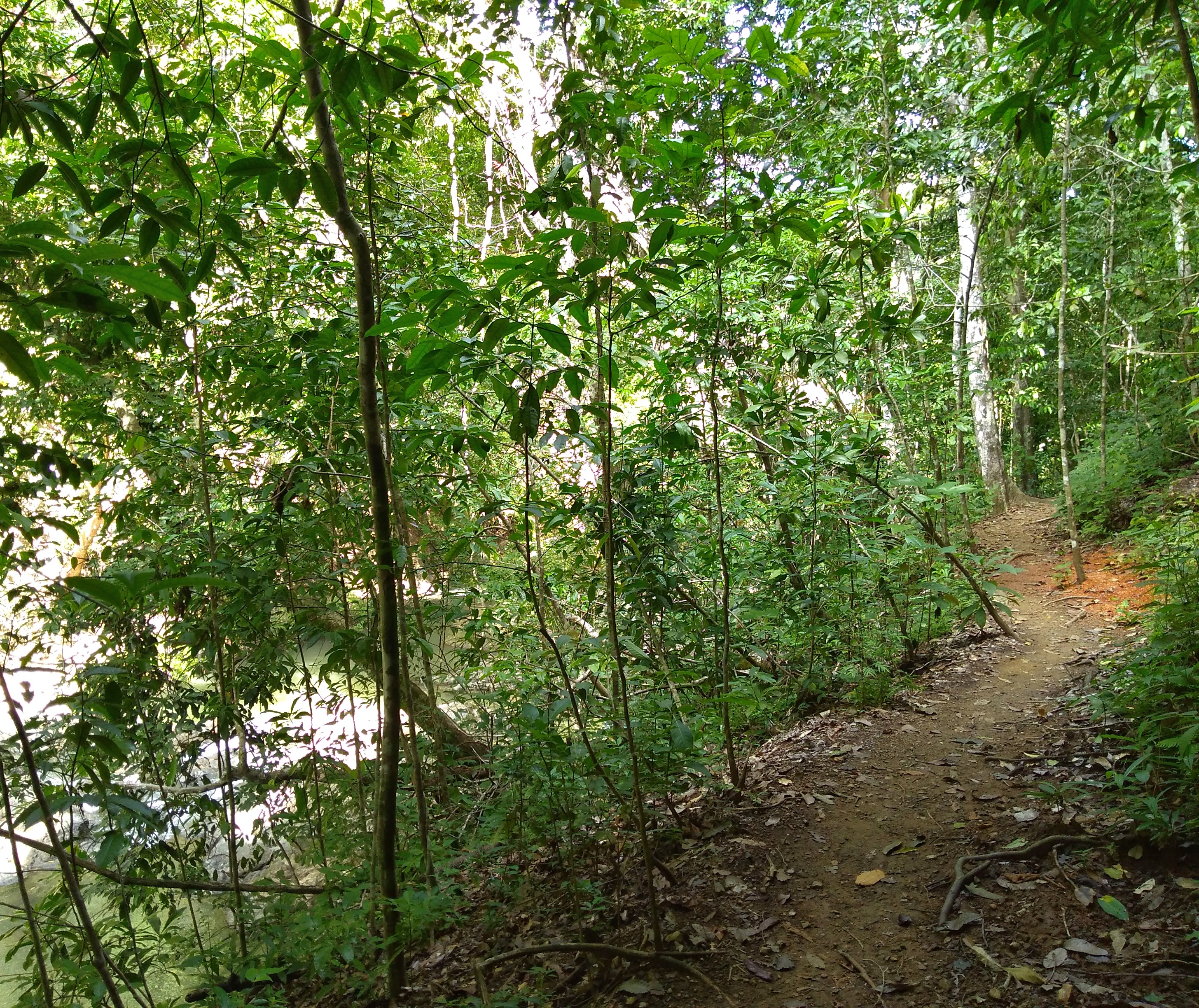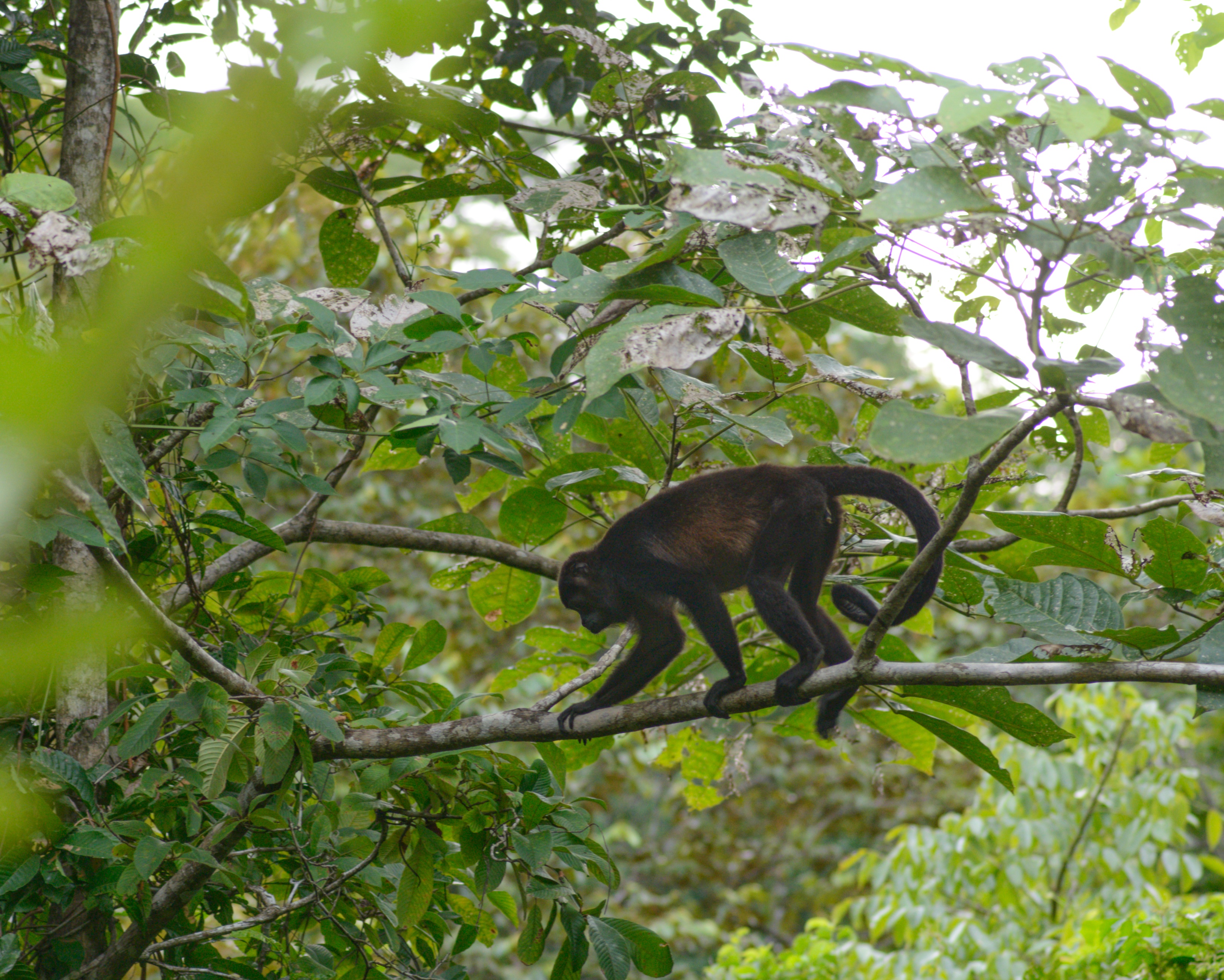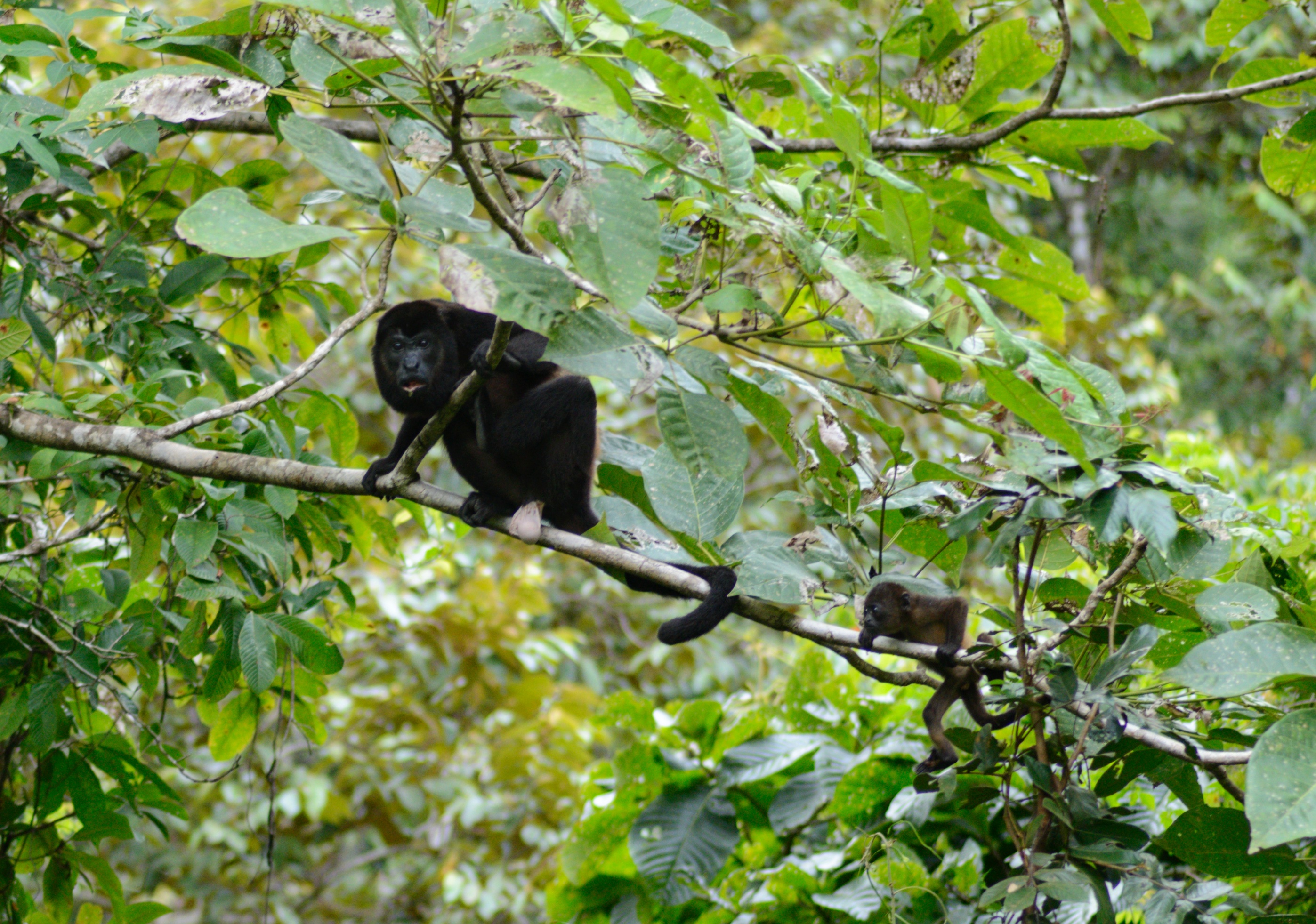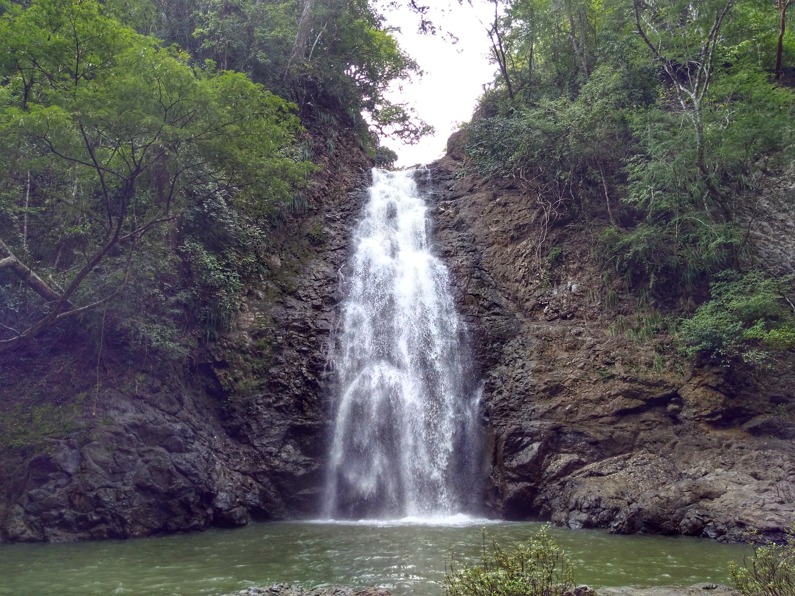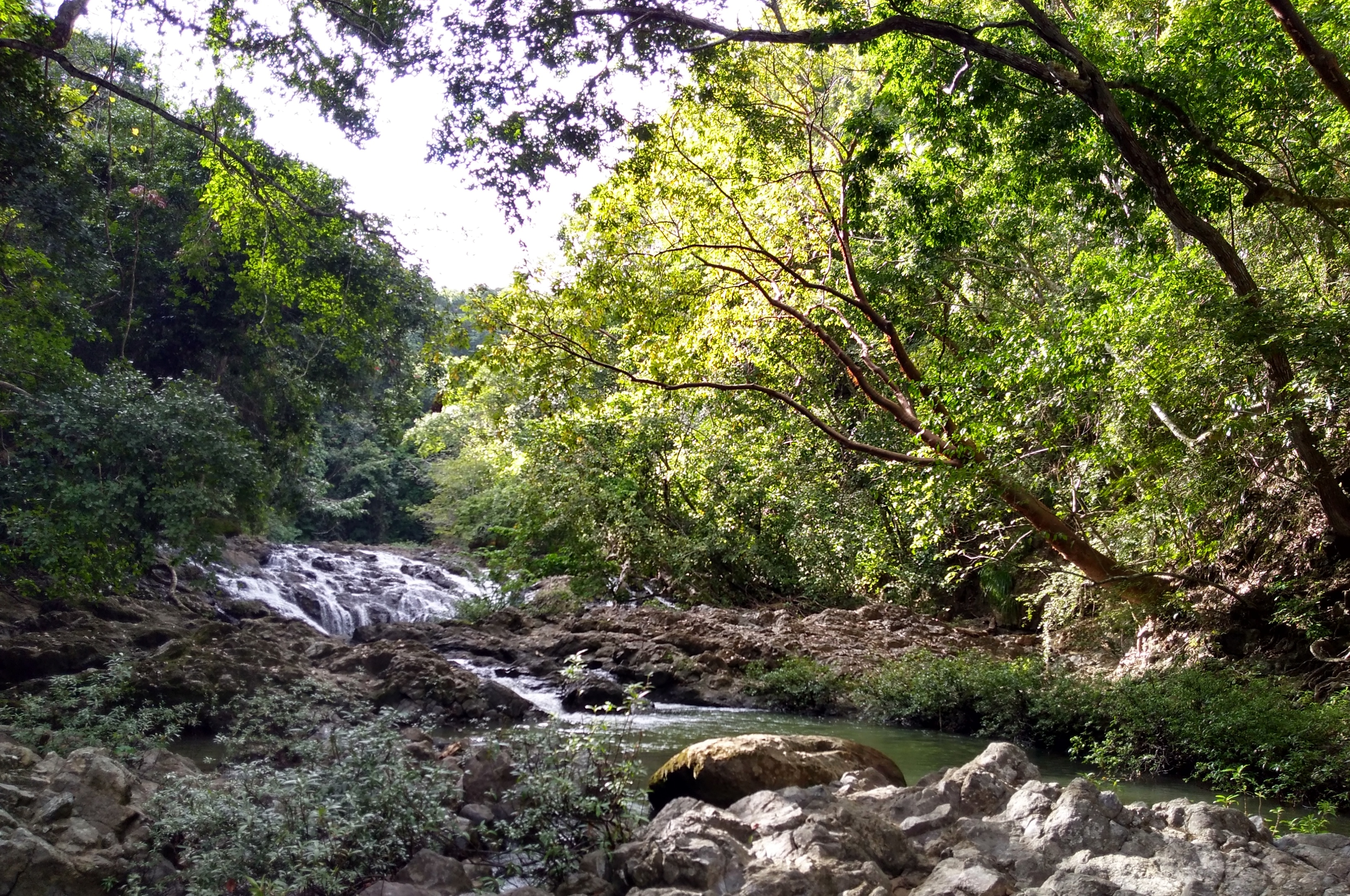 Was als kleiner Spaziergang zu den Wasserfällen von Montezuma geplant war, wurde dann doch eine 5-stündige Wanderung durch den Urwald. Aber der Reihe nach: Der Weg zum Wasserfall ging zunächst die steile Straße herunter, die wir gestern mit dem Auto gefahren waren, dann über eine schmale Brücke und auf der anderen Seite den Berg wieder hoch. Wir überquerten die Straße, die nach Cobano führt und folgten einem Feldweg durch den Wald bis zum Beginn des Trails. Ein Stückchen weiter bezahlten wir unseren Eintritt und folgten dann dem ersten Trail den Berg hinauf. Die Brüllaffen waren hier sehr nah. Zu sehen waren Sie jedoch nicht. Oben angekommen sahen wir den Anfang das Canopy-Parcours und einen weiteren Eingang zu den Trails. Also machten wir kehrt. Als nächstes wanderten wir den Bach entlang bergaufwärts. Ein großer blauer Schmetterling, hatte sich in einem Spinnennetz verfangen. Es gelang uns leider nicht, ihn zu befreien. Auch dieser Trail endete an einem weiteren Eingang, also machten wir erneut kehrt. Es war sehr heiß und wir waren schweißgebadet. Wieder am Anfang des Weges angekommen, gingen wir ein paar Stufen zum Bach hinunter und erreichten den ersten Wasserfall. Unterhalb des Wasserfalls hatte sich ein großer Pool gebildet, in den man geschätzte 4 – 5 m hinunterspringen konnte. Das Wasser war kalt, aber nach der hitzigen Wanderung auch sehr erfrischend. Nachdem wir uns etwas abgekühlt hatten, wanderten wir den Weg entlang nach unten zu einer Lagune unterhalb eines ca. 20 m hohen Wasserfalls. Auch hier konnten wir schwimmen. Das Wasser war kalt aber in der schwülwarmen Luft war man schnell wieder trocken. Anschließend kletterten wir entlang das Flüsschens nach bis zu der Brücke, die nach Montezuma führt. Danach folgten wir der extrem steilen Straße nach oben zurück zu unserer Unterkunft. Kurz bevor wir die schmale Brücke erreichten, sahen wir in einem Baum eine Gruppe Brüllaffen spielen. Wir beobachteten des lustige Treiben ein wenig und gingen dann zurück zum Haus, um uns für das Abendessen frisch zu machen.