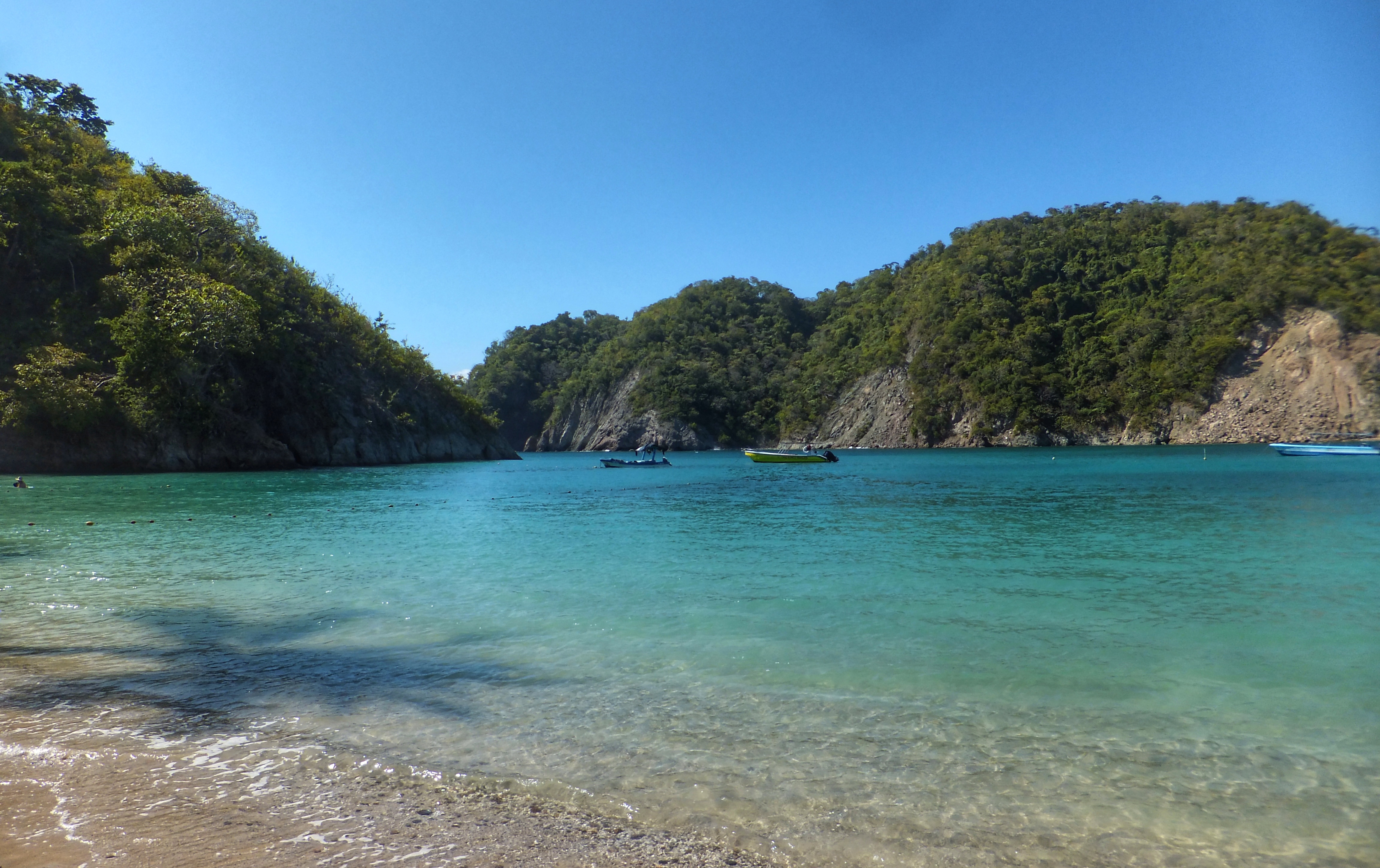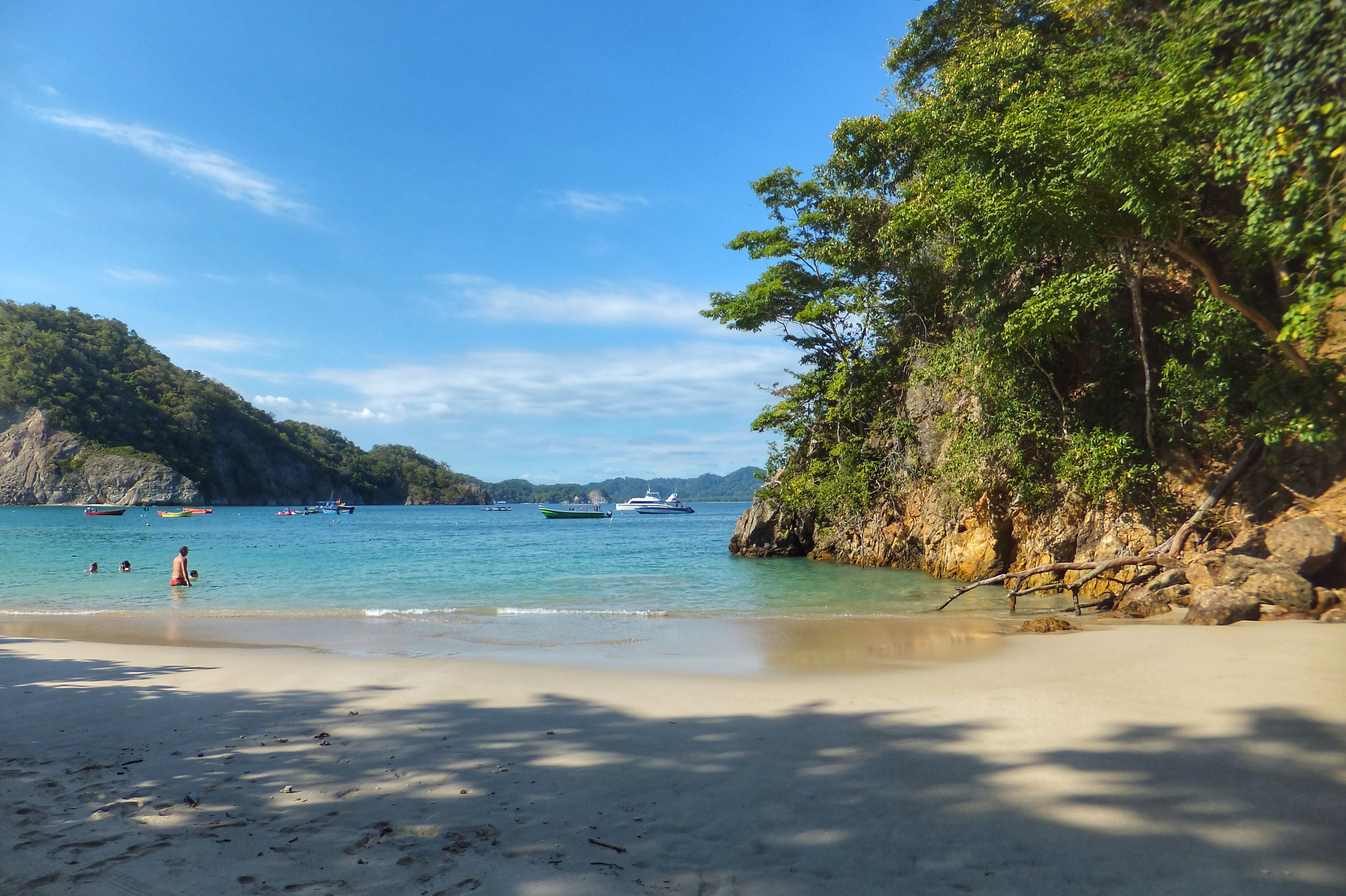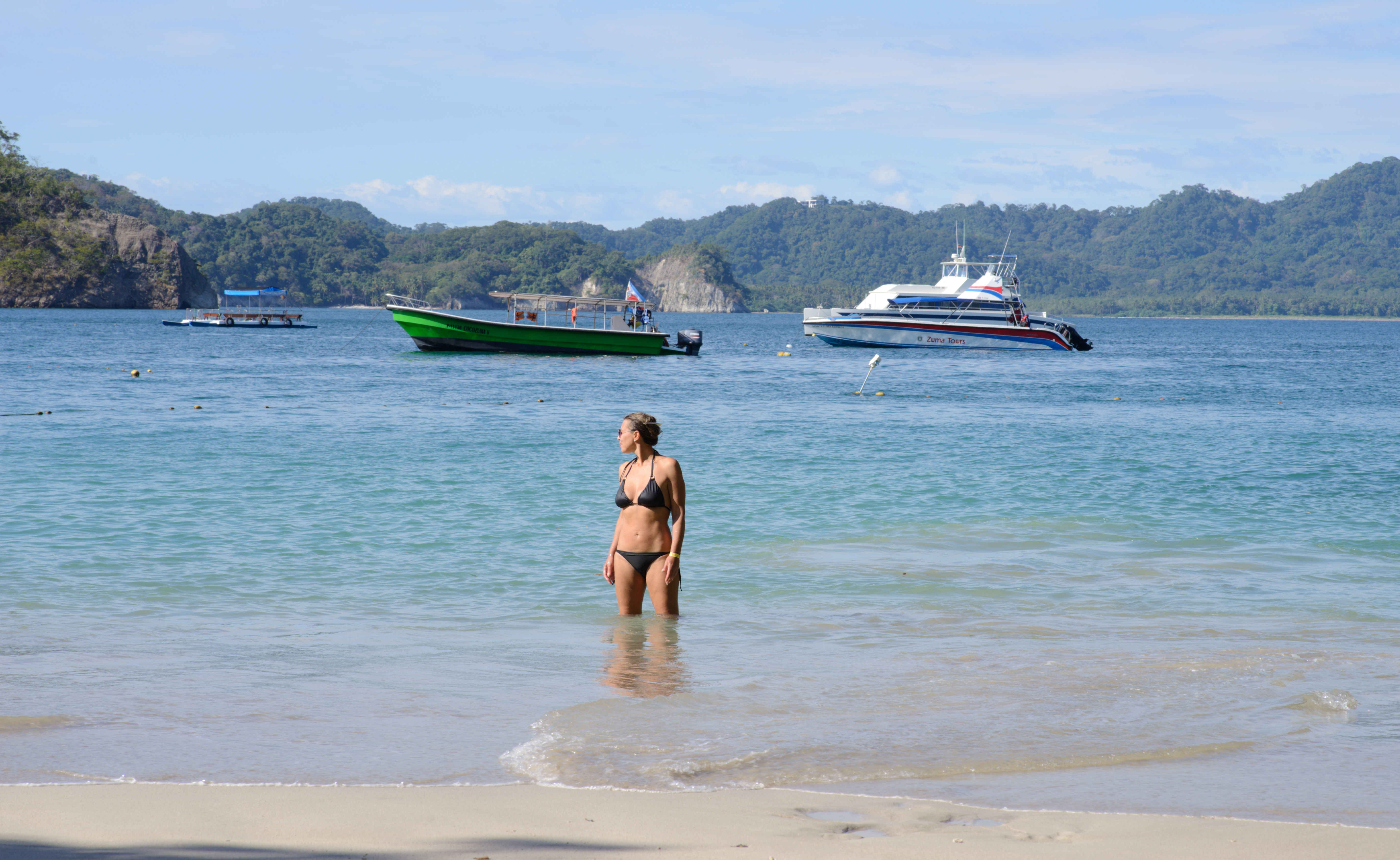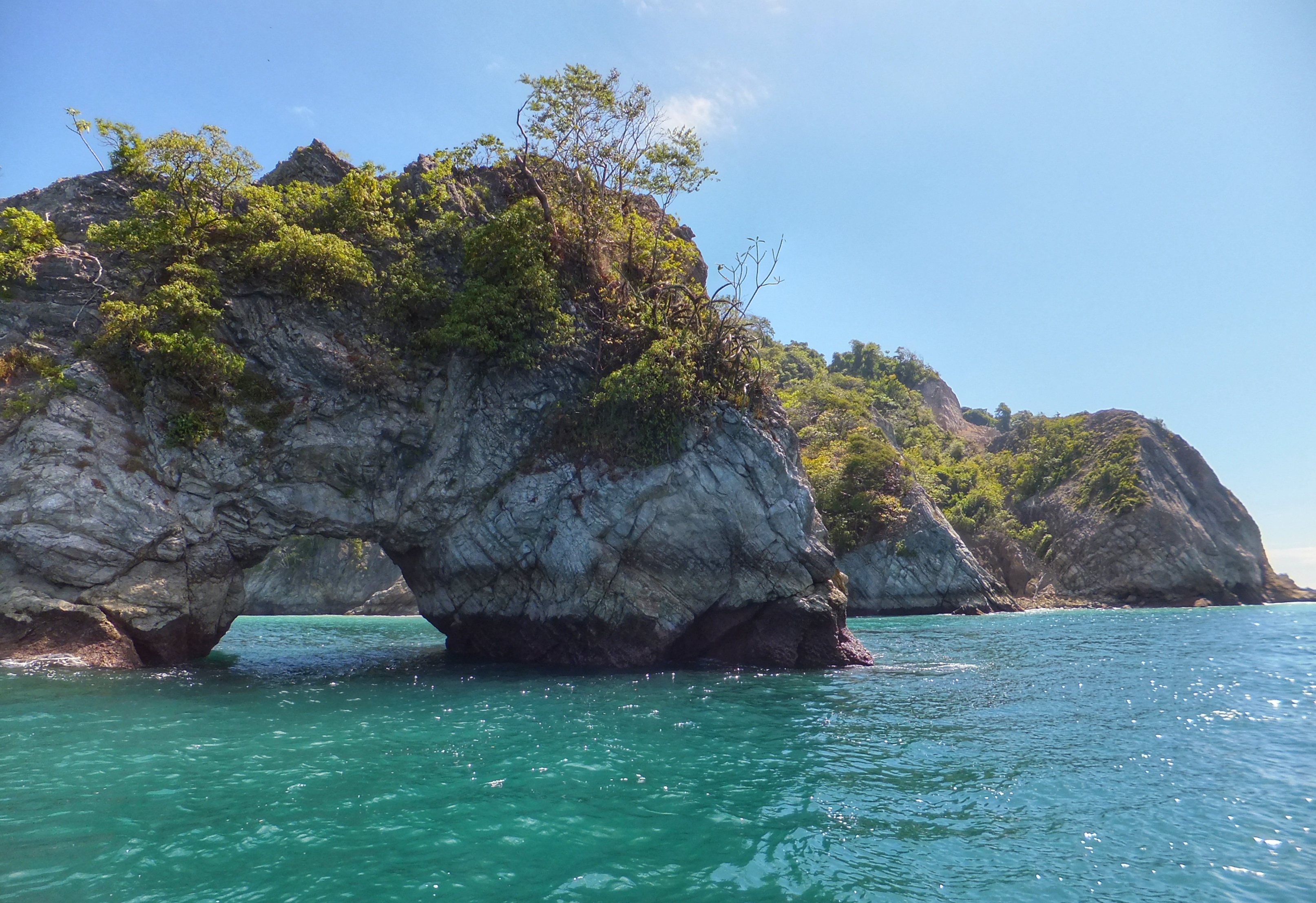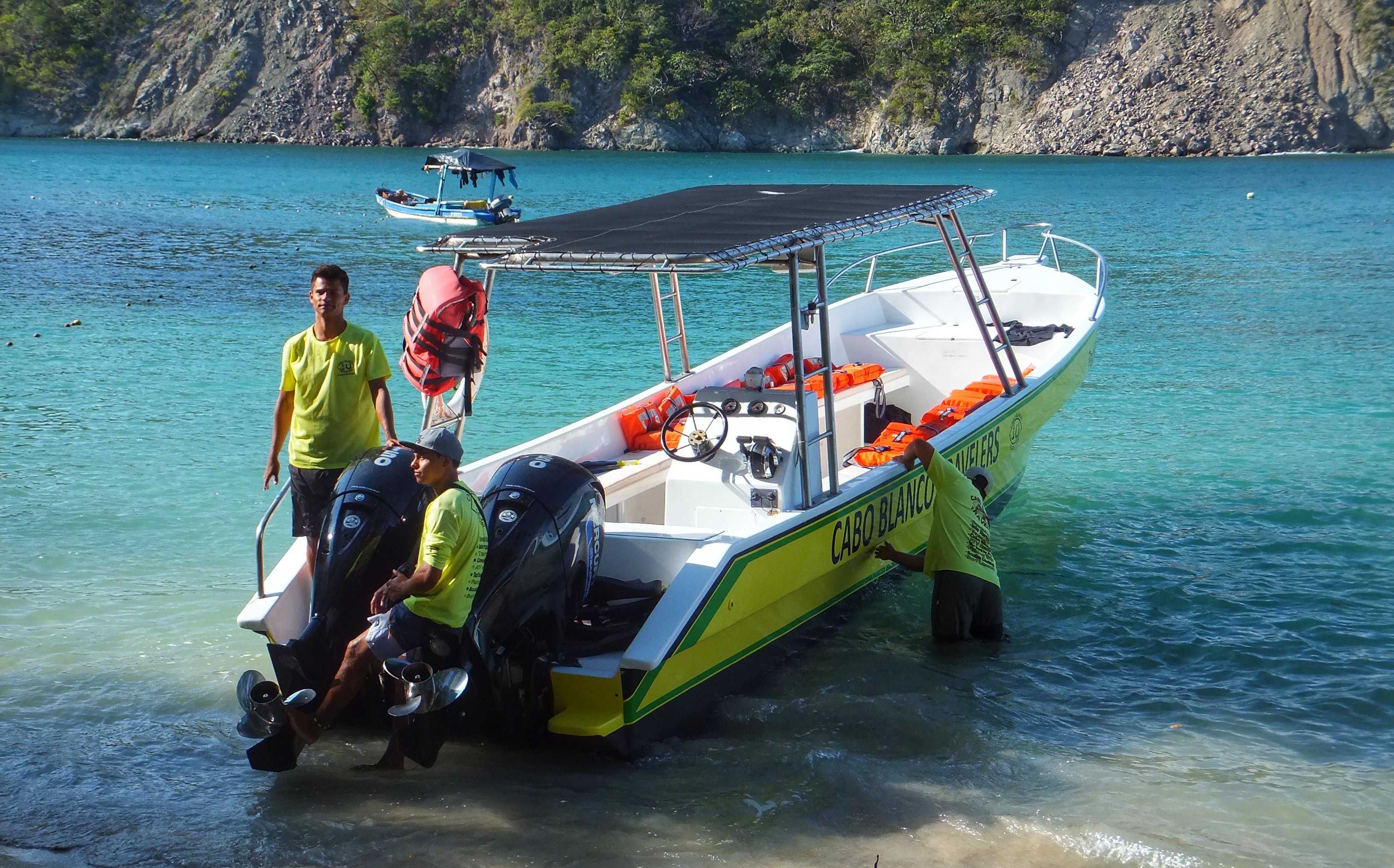 Der Wecker klingelte uns um halb acht aus dem Bett. Nach einem kurzen Frühstück draußen fuhren wir nach Montezuma und bestiegen nach kurzer Wartezeit ein kleines aber schnelles Boot, das uns nach Tortuga bringen würde. Die Gruppe war angenehm klein und wir genossen die 45 minütige Fahrt entlang der Küste von Nicoya. Als wir Tortuga erreicht haben, wurden Tauchermasken, Schnorchel und Flossen verteilt und wir hatten knapp eine Stunde Zeit, die Unterwasserwelt um einen Felsen herum zu erkunden. Korallen gab es nur einzelne aber wir bekamen doch eine ganze Menge bunter Fische zu sehen. Bei der ganzen Fischvielfalt hier wunderten wir uns schon ein wenig über das geringe Angebot an frischem Fisch. Außer Mahi Mahi, Gelbflossenthunfisch, Red Snapper und Hummer hatten wir in den Restaurants nichts gesehen. Einen Fischhändler oder gar einen Markt suchten wir ebenfalls vergeblich. Aber hier waren sie alle zu bestaunen. Nach einer Stunde kletterten wir wieder auf das Boot und bekamen frischen Saft, Ananas und Papaya gereicht. Danach ging es zu einem weiteren Felsen, wo wir erneut schnorcheln konnten. Als wir alle wieder zurück waren, ging es auf die Insel, wo bereits ein leckeres Mittagessen auf uns wartete. Danach hatten wir noch einmal 2 Stunden Zeit, uns an dem schönen Sandstrand auf Tortuga zu vergnügen, was wir ausgiebig taten. Die Rückfahrt nach Montezuma war dann etwas schaukeliger und wir wurden noch einmal richtig naß. Das war eine Gaudi. Gegen 16:00 Uhr waren wir zurück, fuhren kurz ins Haus, um uns frisch zu machen und dann erneut nach Montezuma zum Abendessen. Bei Live-Musik eines lokalen Musikers und zwei Cocktails ließen wir den Abend gemütlich ausklingen.