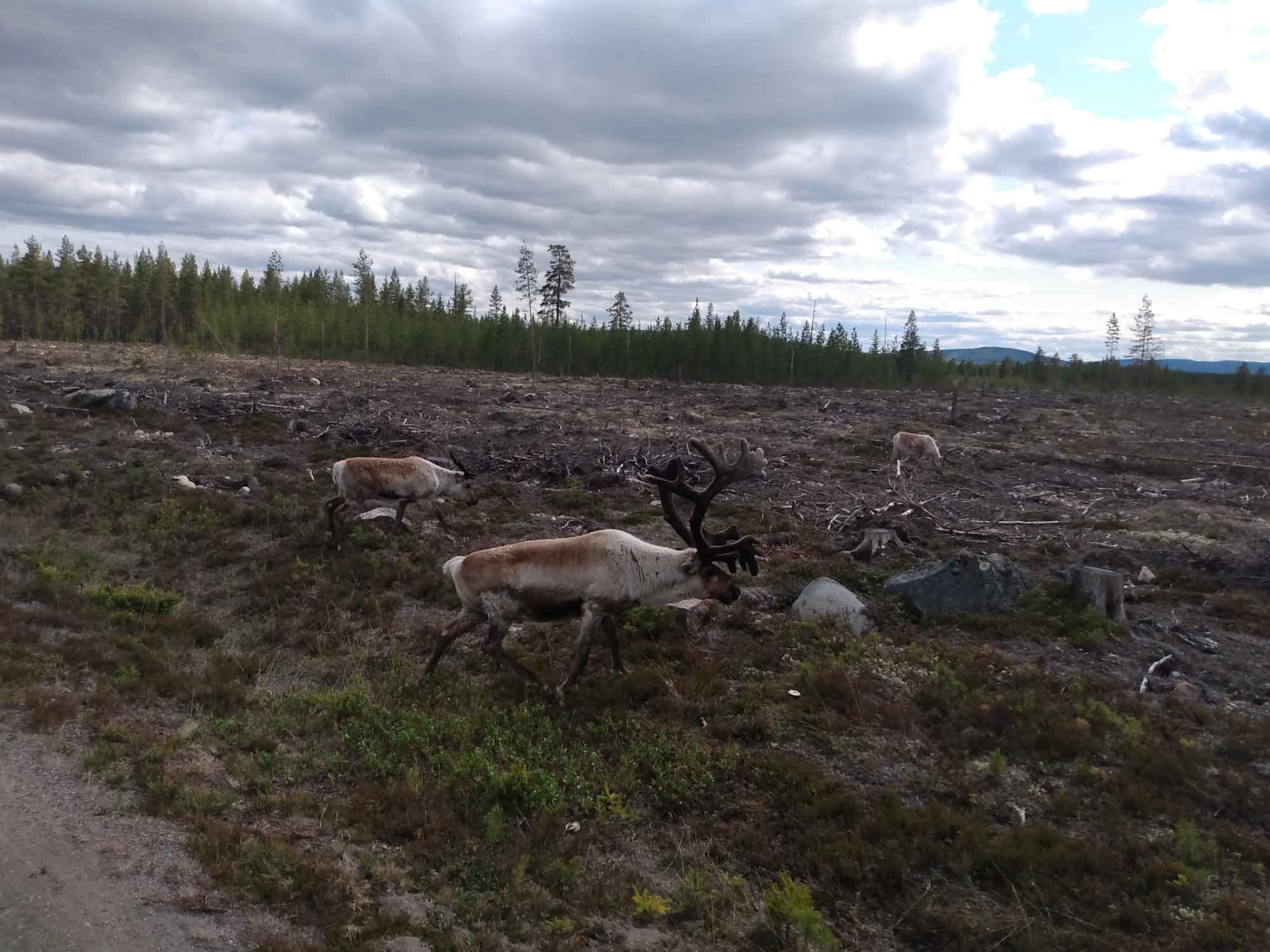 Der Platz war sehr schön aber es war morgens noch etwas bewölkt und da wir noch relativ hoch in den Bergen waren, stand zu befürchten, dass wir heute nicht so viel draußen sitzen könnten. Also entschieden wir uns bis nach Sveg hinunter zu fahren. Dort kannten wir bereits einen Platz am Stausee von Sveg, an dem wir es vor zwei Jahren sehr schön fanden. Also machten wir uns nach dem Morgenspaziergang wieder auf den Weg. Aneta und Berta liefen wieder zu Fuß zur Straße zurück, um das anfängliche Geruckel zu vermeiden. Aber wir hätten auch bei der neuen Routine mit dem Futter bleiben sollen. Auch wenn die Straße weiterhin schön glatt und gerade war, zitterte Berta noch eine ganze Weile. Nach einem Halt zum Einkaufen in Hede war es aber nicht mehr weit. Den Platz erkannten wir auch sofort wieder. Nur dass in der Zwischenzeit Schilder aufgestellt worden waren, dass Camping hier verboten ist. Also mussten wir uns entlang der holprigen kleinen Straße etwas anderes Suchen. Unsere Alternative am Wasser war leider auch keine. Nachdem wir 10 km gefahren und weitere 600 m zu Fuß zum See gelaufen waren, war klar, dass wir nicht bis zum Ufer kommen würden. Der Weg war auf einem kleinen Stück einfach zu zugewachsen. Wir fuhren also ein kurzes Stück zurück und platzierten uns auf einem großen freien Platz neben der Schotterstraße. Dort standen wir immerhin mit Blick auf den See in zwischen feuchten Wiesen auf denen die Kraniche herumliefen.