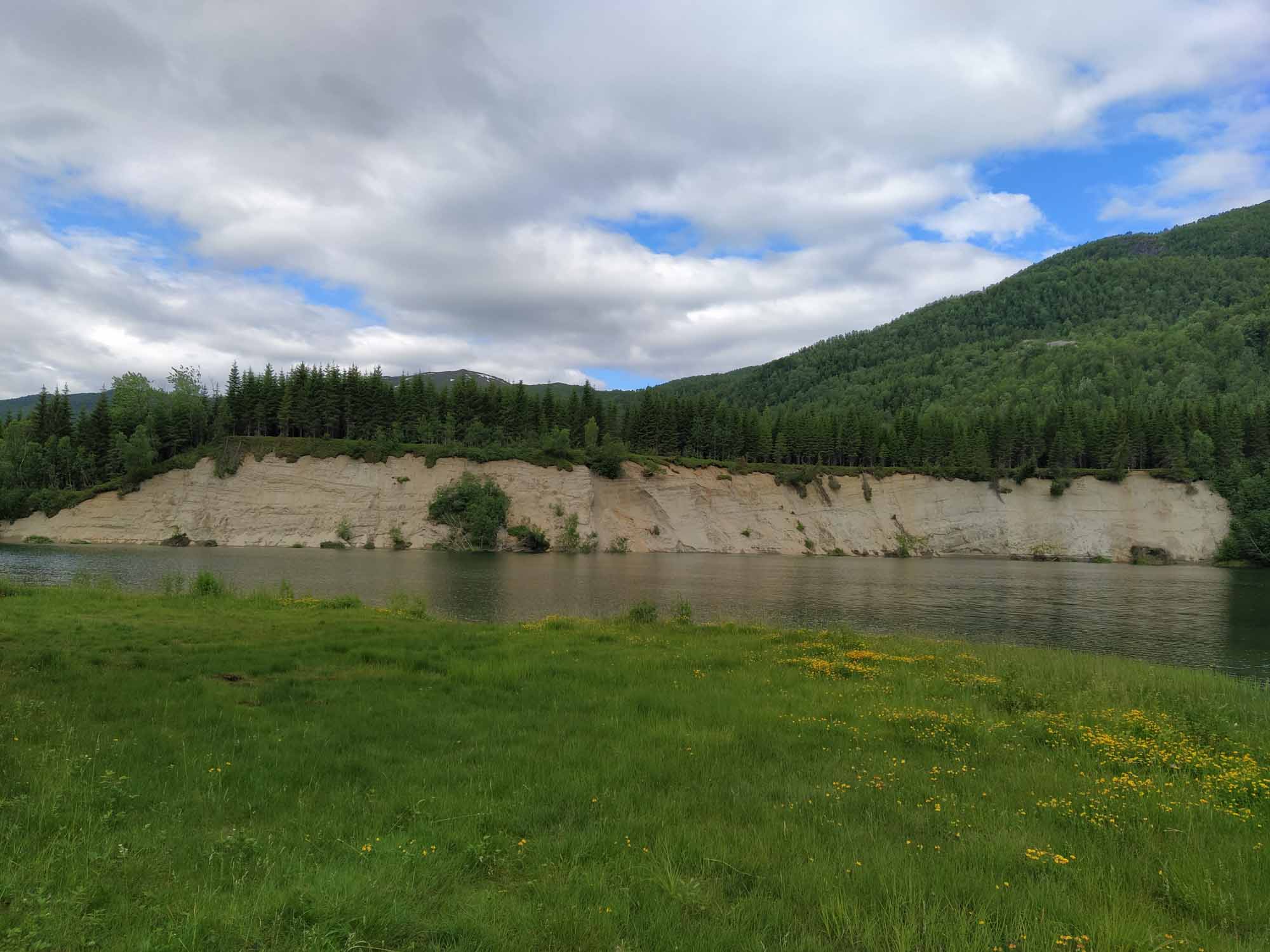 Bei herrlichstem Sonnenschein und wunderbar warmen 26 Grad verbrachten wir ein paar ruhige Tage am Fluß. Berta genoß wie wir das Nichtstun und vor allem das Nichtfahren. Ach wie schön kann sogar Norwegen sein.