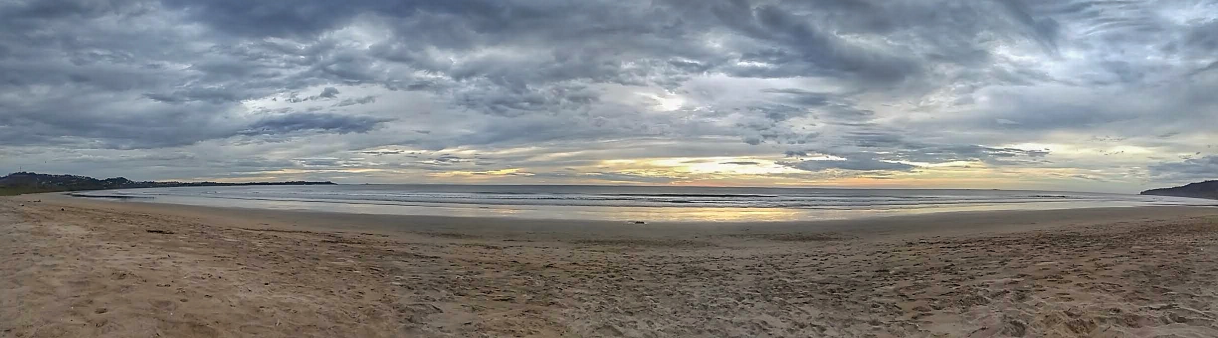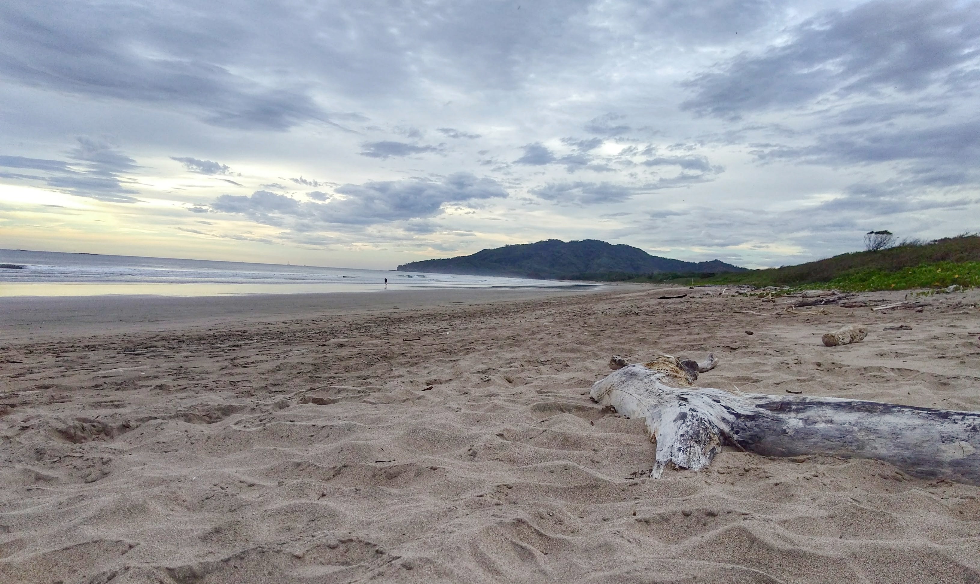 Morgens hat uns eine Gruppe Franzosen geweckt, die gestern im Hotel eingecheckt haben. Um 6:30 ging erst eine laute Musik an, dann konnten wir eine Stunde lang mithören, wie sie frühstückten, ihre Sachen packten und zu einem Ausflug aufbrachen. Um halb acht war wieder Ruhe und wir wach. Wir frühstückten und fuhren dann etwas früher als üblich los zum Playa Grande, einem Strand innerhalb des Naturschutzgebiets Marina del Baulas. Unterwegs kauften wir noch ein Beachball-Set, das wir am Strand ausgiebig genutzt haben. Der Strandabschnitt, den wir uns ausgesucht haben, war menschenleer und nur gelegentlich kamen ein paar Strandspaziergänger vorbei. Wir hatten eine kleine Stichstraße durch den Urwald gefunden, die direkt bis an den Strand führte. Hier waren wir ganz alleine, genossen die Sonne, den Strand und die Wellen und zum Mittagessen eine Papaya. Als die Sonne unterging fanden wir auf halbem Weg nach Tamarindo eine gemütliche kleine Soda, in der wir zu Abend aßen. Wir hatten überhaupt keine Lust auf die Franzosen und gingen nur kurz ins Hotel, um uns frisch zu machen. Danach liefen wir zum Strand in Tamarindo, besorgten uns bei Pops ein großes Eis und spielten gemütlich bei Livemusik und Cocktails am Strand solange bis in der Bar die Tische zusammengeräumt wurden. Als wir wieder im Hotel ankamen waren die Franzosen bereits schlafen gegangen.