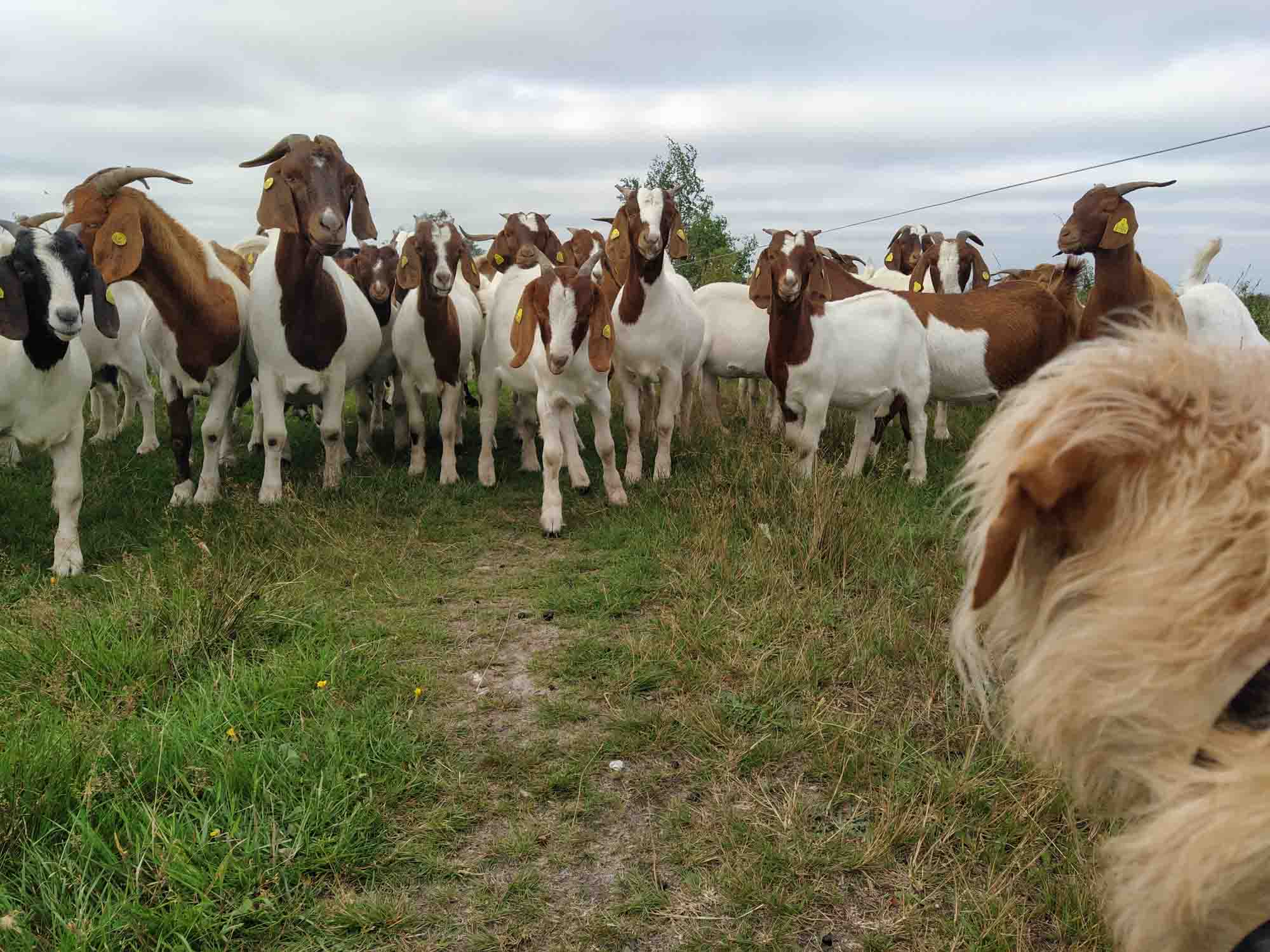 Wie erwartet wurden wir von lauten Trekkern geweckt, die einen großen Anhänger mit Menschen darauf an uns vorbei über den Damm nach Mandø zogen. Aber die Sonne schien schon wieder und es versprach angenehm warm zu werden. Perfekt für den geplanten Strandtag auf Rømø. Aber zuerst noch einen kurzen Spaziergang hinter dem Deich und gefrühstückt, dann ging es auf die 30 minütige Fahrt auf die Insel. Auch hier fuhren wir über einen Damm, der allerdings auch bei Flut befahrbar ist. Unterwegs kamen uns einige Oldtimer entgegen, die ziemlich gut erhalten aussahen. Es waren auch einige im Shabby-Look dabei, die vermutlich nur noch von Rost zusammengehalten wurden aber auch einige Schätzchen. Je näher wir dem riesigen Autostrand kamen, umso voller wurde es. Auf dem Parkplatz vor dem Strand war kein einziger Platz mehr frei und auch der Campingplatz war proppevoll. Aber all das war noch kein Vergleich zu dem, was sich auf dem Strand abspielte. Dicht an dicht standen Autos und Camper rings um das Arreal herum. An der Wasserseite sogar 2-reihig. Und überall fuhren diese tollen alten Autos herum. Ob es hier vielleicht ein Treffen gab? Und tatsächlich: Wir waren zufällig auf dem Rømø Motor Festival gelandet, wo mit Fahrzeugen aus den 20iger-, 30iger- und 40igerjahren Rennen am Strand ausgetragen werden, das vom 18. bis zum 20.08.2023 dauerte. Und das zog nicht nur die tollen Autos an, sondern auch eine riesige Schaar von Schaulustigen, die sich allesamt über den Strand verteilten und die auch einen ziemlichen Lärm veranstalteten. Das war es also mit unserem gemütlichen Strandtag. Wir machten dennoch unseren obligatorischen Strandspaziergang über den ziemlich harten und grobkörnigen Sand und liefen dort wo die Autos nicht mehr hindurften gen Süden am Wasser entlang und anschließend quer durch die Dünen zurück zum Trubel. Danach genossen wir das Spekatakel der herumdüsenden Motorräder und schauten uns die immer mal wieder vorbeifahrenden Oldtimer an. Am frühen Nachmittag fuhren wir dann aber doch lieber weiter, denn obwohl vermutlich die meisten der Camper auch über Nacht bleiben würden und es vermutlich an den Festivaltagen geduldet worden wäre, sehnten wir uns wieder nach einem stillen Plätzchen, dass wir kurz vor Tøndern auf einem Rastplatz am Moor Sølsted auch fanden. Hier konnten wir wieder die deutlich angenehmeren Geräusche der Natur genießen. Auf einem Spaziergang durch das Moor kamen wir an Kühen vorbei, die Berta überhaupt nicht interessierten und mussten auch durch eine Ziegenherde gehen. Erst gingen die Tiere von uns weg aber als wir die Kameras zückten drehten sie sich um um versammelten sich für ein Gruppenfoto. Berta blieb erstaunlicherweise ziemlich ruhig und reagierte erst als die Tiere anfingen wegzulaufen, als wir durch die Herde hindurch wollten. Aber sie beruhigte sich auch schnell wieder und so war es für uns alle ein tolles Erlebnis. Der Aussichtsturm, zu dem wir gelaufen waren, war dann doch etwas enttäuschend. Irgendwie hatten wir ihn uns höher vorgestellt. Nachdem wir Abendbrot gegessen hatten, gesellte sich noch ein Wohnmobil mit einer französischen Familie auf unseren schönen Platz. Damit war bis zum Schlafengehen für genügend Unterhaltung gesorgt.