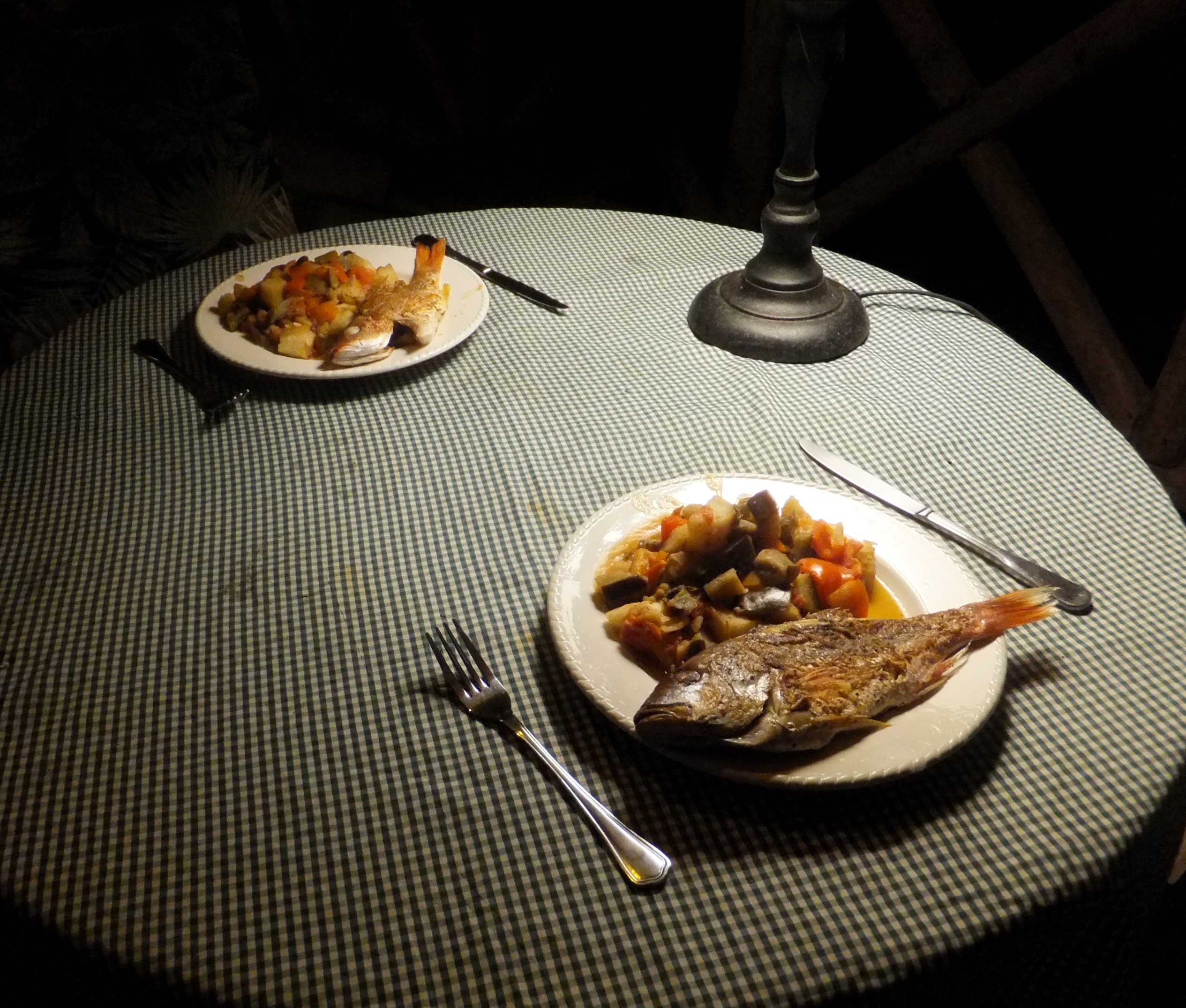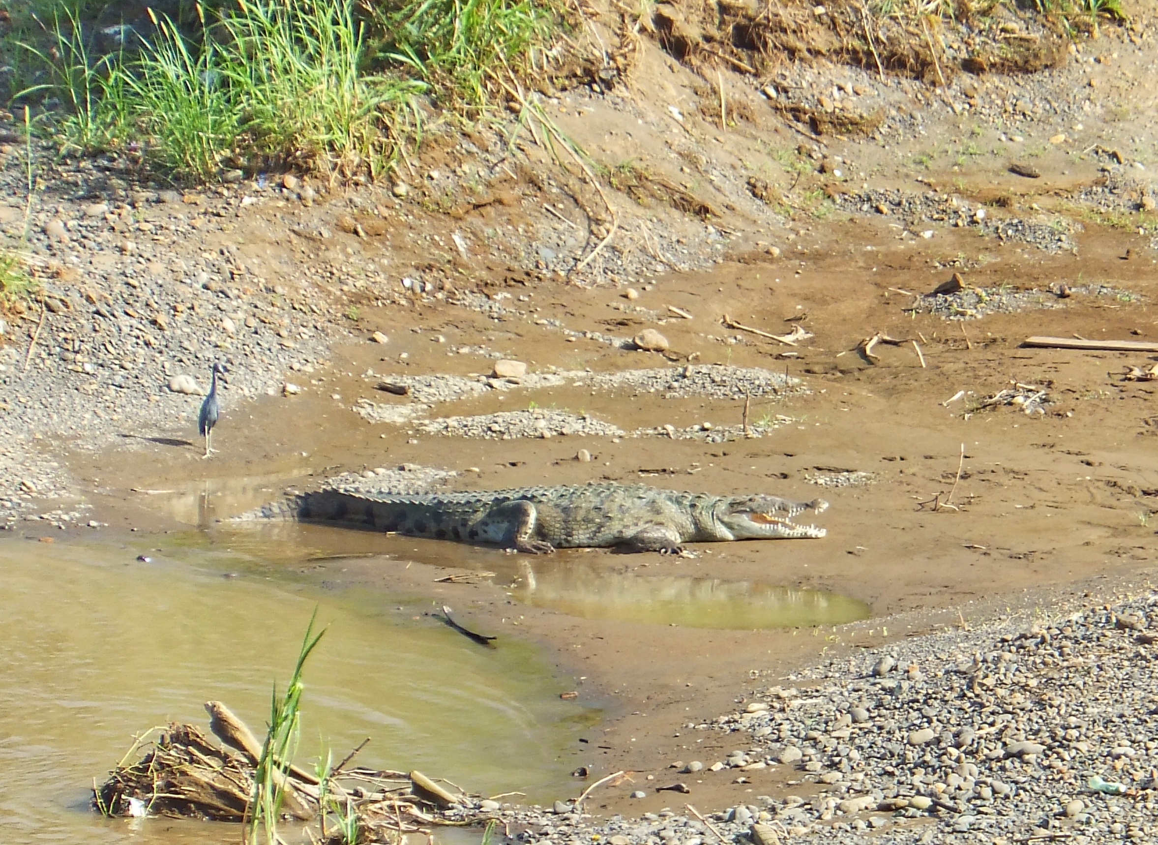Trotz der gestrigen Aufregung haben wir hier sehr gut geschlafen und brachen um 10 Uhr in Richtung Quepos auf. Da wir keine Rucksäcke mehr hatten, mussten wir unsere Wertsachen in AirFrance-Jutebeutel verstauen, was ein merkwürdiger Anblick war. Das neue Auto hat funktionierende Stoßdämpfer und somit konnten wir die Landschaft sehr genießen. Vor einer Brücke, an einem kleinen Parkplatz mit Gaststätte und Souvenirshop hielten wir an, weil wir ein tolles Strandtuch erspähten. Der Parkwächter kam auf uns zu und meinte, er würde auf unser Auto aufpassen, solange wir uns die Krokodile anschauen würden. Es stellte sich heraus, dass wir zufällig den Ort fanden, den wir zuvor vergebens gesucht hatten. Die Brücke am Rio Grande bei Tarcoles. Unten am Fluss leben Krokodile in ihrem natürlichen Habitat und können von der Brücke aus bestaunt werden. Glück muss man haben! Als wir in Quepos ankamen, haben wir erstmal eine Soda mit WiFi aufgesucht, um den Besitzer unserer Unterkunft per E-Mail zu kontaktieren. Es fällt schmerzlich auf, wie leicht das Leben mit Smartphone und WhatsApp ist. Aber es klappt auch so, und schließlich holt uns jemand ab und wir fahren gemeinsam zu unserem Chalet im Dschungel. Der Eigentümer, ein rüstiger und sehr freundlicher älterer Herr, zeigte uns alles und wir merkten sofort, dass uns dieses einsame kleine Häuschen sehr schöne letzte Tage schenken wird. Wir hatten geplant, für die nächsten Tage unseren Einkauf zu erledigen und dann in der netten kleinen Soda zu Abend zu essen. Leider hatte die Soda um 19 Uhr bereits geschlossen und so entschlossen wir uns, noch einen Fisch im Supermarkt zu kaufen und selbst zu kochen. Mit den Geräuschen des Dschungels schliefen wir irgendwann wohlig ein.