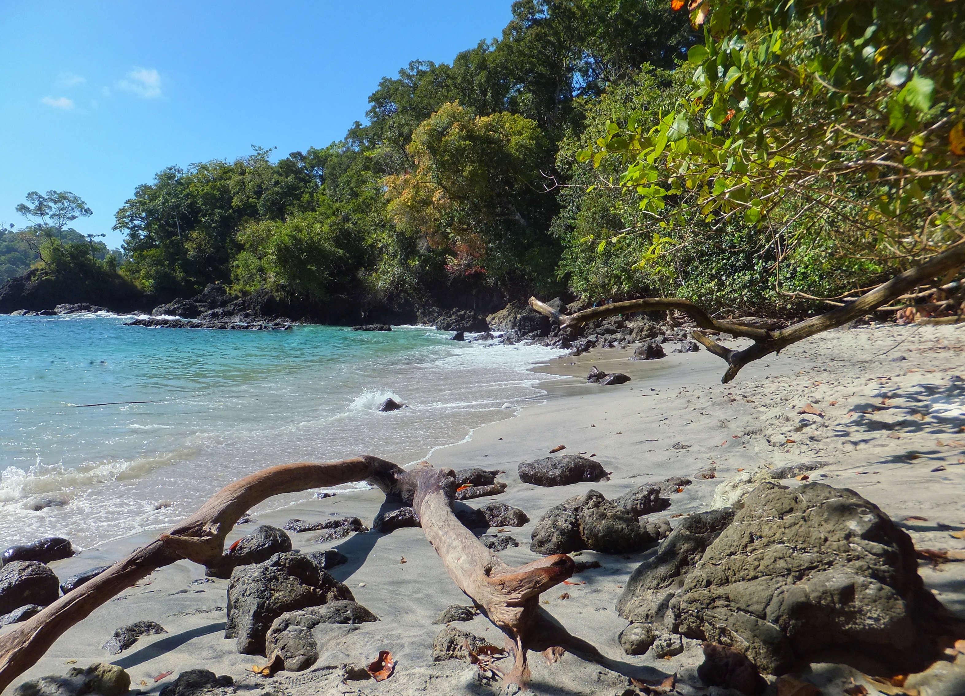 Heute fuhren wir zum Nationalpark Manuel Antonio, einem kleinen Nationalpark direkt am Meer gelegen. Mit unseren Jutebeuteln bewaffnet, spazierten wir erstmal ausgiebig durch den Park und konnten Tiere beobachten, die uns bislang entgangen waren. Wir sahen ein Dreifinger-Faultier mit Baby, eine Kapuzineraffen-Bande und eine Schlange. Am Strand angekommen ruhten wir uns erstmal von der Tour aus und kühlten uns im Meer ab. Irgendwann gab uns ein Parkwächter mit der Trillerpfeife ein Signal, dass der Park bald schließen würde und wir machten uns auf den Heimweg. Vor dem Parkeingang entdeckten wir noch Totenkopfäffchen. Somit hatten wir alle Affenarten in Costa Rica gesehen.