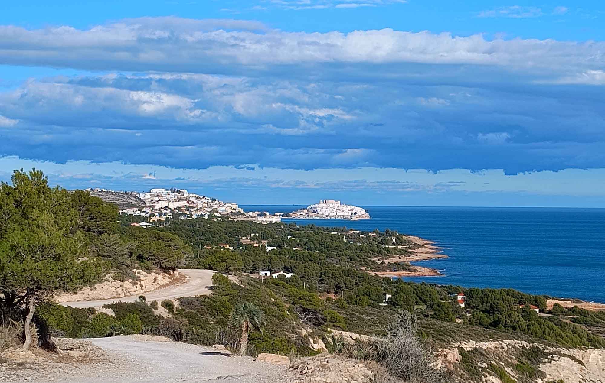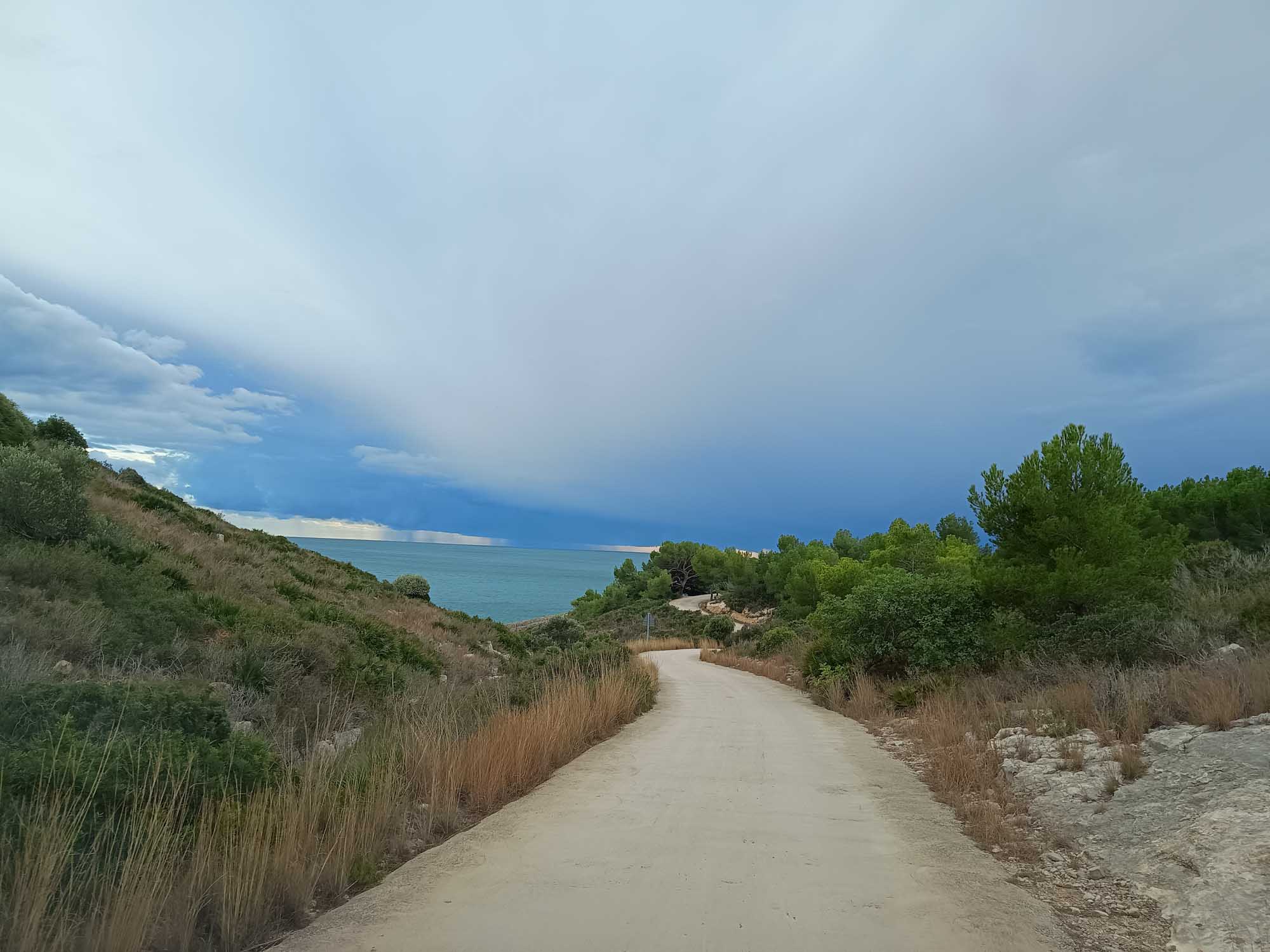 Unsen Morgenspaziergang machten wir, obwohl wir direkt am Strand standen, nicht am Wasser entlang, sondern entlang der ehemaligen Bahnlinie. Hier führte der Weg durch drei menschengemachte Schluchten bevor wir am anderen Ende ein Atomkraftwerk entdeckten. Das war also die Industrieanlage, die wir bei der Anfahrt bereits gesehen hatten. Danach fuhren wir auf der gut ausgebauten Küstenstraße weiter in Richtung Süden. Die Landschaft war seit Tarragona wieder sehr ansprechend. Rechts und links der Straße breiteten sich frisch bepflanzte Felder aus und im Hintergrund waren niedliche kleine Berge zu sehen. So kamen wir flott voran, bis wir in Amposta einen Einkaufsstopp einlegten. Danach ging es ebenso abwechslungsreich weiter bis wir Peniscola erreichten. Den Ort selbst empfanden wir als nicht so hübsch, interessant war aber die ins Wasser reichende aus einem kleinen Berg bestehende Halbinsel, die komplett mit weißen Häusern bebaut war und auf deren Spitze eine gut erhaltene Festung steht. Wir fuhren weiter und kamen bald zu unserem eigentlichen Ziel, der Sierra de Irta, einem kleinen Nationalpark direkt an der Küste mit einsamen Stränden und schönen Wanderwegen. So zumindest hieß es im Reiseführer. Am Abzweig fuhren wir erstmal vorbei, zu abwegig erschien uns der kleine holperige Weg, der von der gut asphaltierten Straße abging, auf der wir uns dem Park genähert hatten. Nachdem wir umgedreht hatten, brauchten wir ein Weilchen, um uns durch die Beschilderung durchzuarbeiten, die vor der Zufahrt zum Nationalpark stand. Im Juli und August ist die Zufahrt für alle Fahrzeuge (mit Ausnahme von Anwohnern) vollständig untersagt. Außerhalb dieser Zeit gilt auf der gesamten Strecke für alle Fahrzeuge ein eingeschränktes Halteverbot und für Fahrzeuge mit mehr als 2,5 t (also auch für uns) ein absolutes Halteverbot. Zu blöd, dass wir gerade hierher gefahren sind, um eine Kaffeepause einzulegen. Wir fuhren trotzdem hinein und wurden gleich auf den ersten Metern so richtig gefordert. Es war sehr steil, holperig, steinig, teils mit losem Sand und eng. Gleichzeitig kam Gegenverkehr. Also so richtig schwierig. Irgendwie haben wir es aber gemeistert und fanden nach 10 Minuten sogar eine Art Parkplatz, wo wir trotz Verbots unsere Kaffeepause machten und den Ausblick auf einen alten Turm und zurück auf Peniscola genossen. Als wir weiterfuhren, sahen wir, wie sich über dem Meer ein Gewitter gebildet hatte und es aus der großen dunklen Wolke immer mal wieder kräftig blitzte. Aber außer einem etwas kräftigeren Wind bekamen wir vom Gewitter nichts ab. Die Straße wurde nicht besser und so schlichen wir weiter über den holperigen Weg. Nach einiger Zeit erreichten wir zwei kleine Sandstrände, an denen wir sogar einen Platz zum Parken fanden. Hier machten wir einen kleinen Spaziergang und dann ging es auf die letzte Etappe. Nach einer ziemlich anstrengenden Fahrt kamen wir am südlichen Ende des Nationalparks wieder heraus und waren froh, dass die restlichen 7 km bis zur Ermita de Santa Llúcia wieder asphaltiert waren. Nach einem weiteren Spaziergang gab es dann zur Belohnung ein leckeres Abendessen für alle.