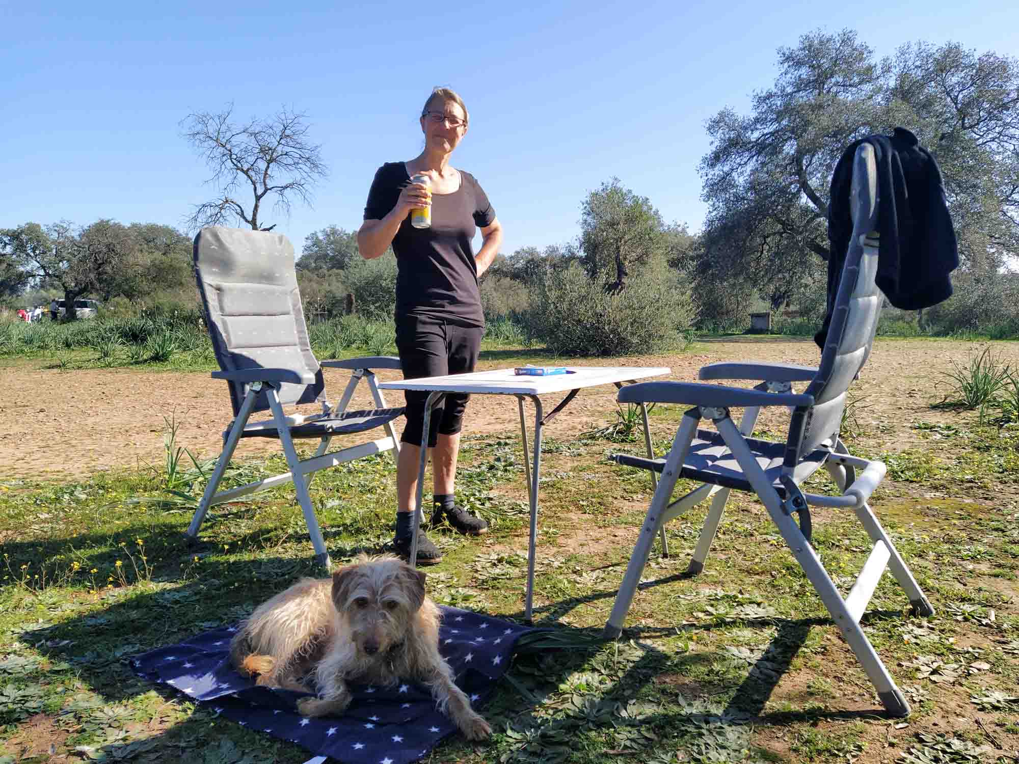Am Samstag Morgen parkten wir erst einmal um. Vielleicht würde es ja doch nicht so schlimm werden. Also suchten wir uns einen Platz, der etwas weiter abseits sein sollte. Wir könnten ja immer noch weiterfahren, wenn es zu laut und trubelig werden würde. Und tatsächlich kamen nur zwei Gruppen von spanischen Picknick- und Grillenthusiasten auf den Platz. Auf unserem neuen Platz waren sie noch nicht einmal zu sehen, so dass wir einen weiteren schönen Tag auf unserem Platz verbringen konnten. Am Sonntag wurde es dafür etwas voller und ein paar Kids nervten mit ihren Mini-Motorrädern. Aber wir hatten das Wochenende schon fast überstanden und wollten dann auch nicht mehr weiterfahren. Wir lenkten uns mit Spielen und Spaziergehen ab und als die Sonne unterging packten auch die letzten ihre Sachen zusammen und dann wurde es schlagartig wieder so schön ruhig, wie wir das lieben.