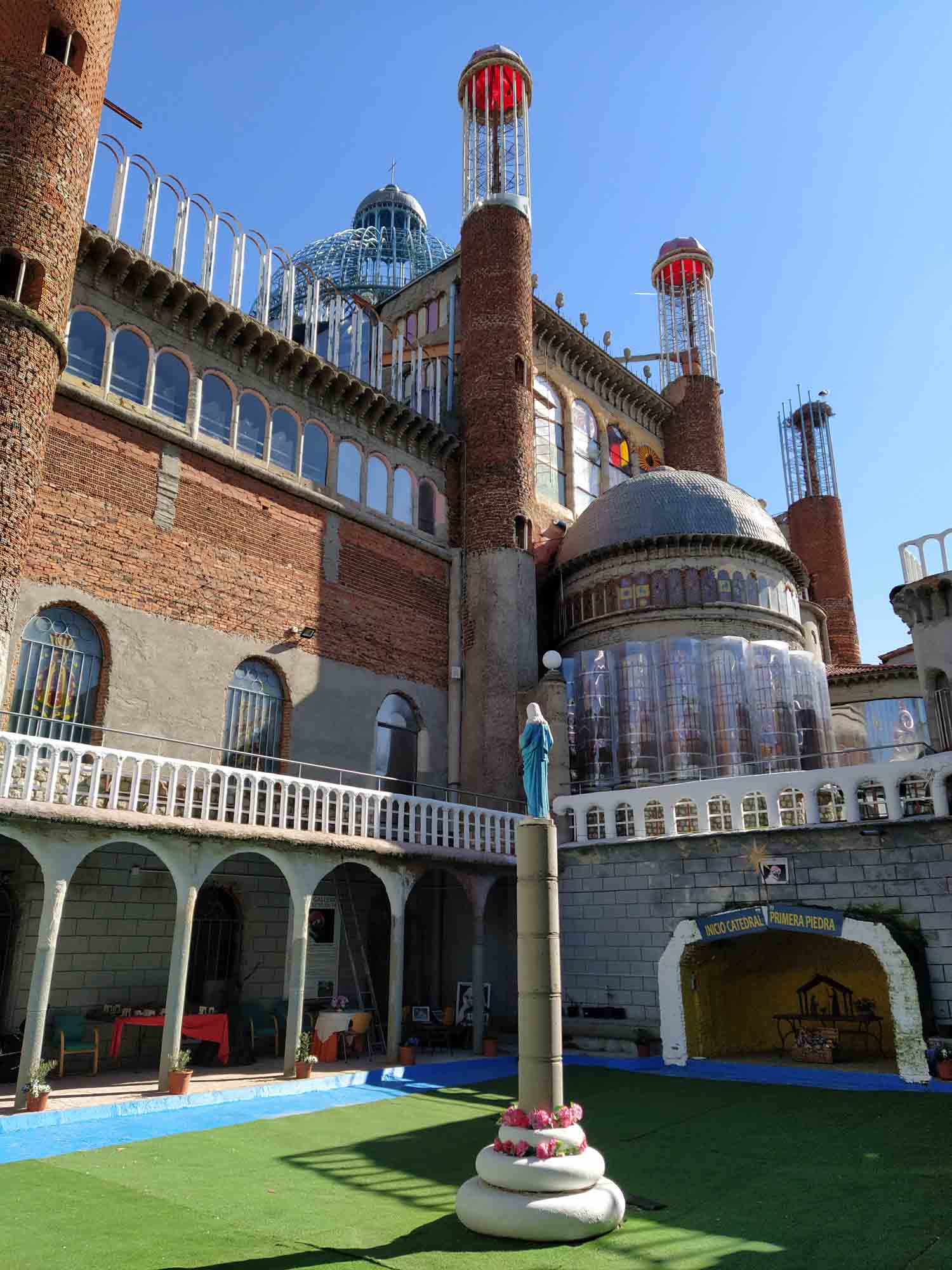 Wie erwartet war die Nacht nicht so erholsam. Die Nähe zur Straße war nicht zu überhören. Entsprechend früh waren wir auf und nach einem kurzen Morgenspaziergang durch die anliegende Parkanlage auch schon wieder unterwegs. Nach einer halben Stunde waren wir in Mejorada del Campo, stellten unseren Wagen ab und gingen die letzten 500 m bis zur eigenwillig anmutenden Kathedrale zu Fuß. Das Gebäude bestand zum Teil aus Beton und Stahlträgern aber auch unzählige Ziegelplatten waren verbaut. Da das ganze größtenteils noch unverputzt war, konnte man den Aufbau recht gut erkennen. Wir konnten dass Innere sogar mit Hund besichtigen, was auch ausführlich taten. Sogar eine Crypta war vorhanden, wenngleich dort niemand begraben liegt. Ein sehr interessantes Gebäude und wir bereuten den Umweg nicht, den wir auf uns genommen hatten. Zumindest nicht, bis wir uns auf den Weg durch Madrid machten, wo uns sehr schnell auffiel, dass es dort eine Umweltzone gibt. Da uns nicht klar war, ob wir mit unserem Wagen dort hindurchfahren durften fragten wir erst einen Polizisten der Guardia Civil, der gerade in einem Kreisverkehr stand. Dieser verwies uns jedoch auf die lokale Polizei, die wie zufällig gerade auf die Tankstelle fuhr, wo wir versuchten uns im Internet weiter schlau zu machen. Die nette Dame versicherte uns dann aber, dass es bis auf den Innenbereich der M30 kein Problem sei und so fuhren wir - allerdings immer noch etwas unsicher - in die Umweltzone ein. Dann aber doch gleich wieder heraus, da wir versuchen wollten, die Stadtdurchquerung auf der Autobahn etwas zügiger zu gestalten. Letztlich zog sich das ganze ziemlich hin und wir legten, nachdem wir Madrid endlich hinter uns gelassen hatten, erstmal eine kleine Pause an einem Wandergebiet ein. Dort gab es Kaffee und Kuchen und ein kleines Spielchen. Und Wasser konnten wir mit der Gießkanne auch ein paar Liter auffüllen. Nach zwei Stunden fuhren wir dann weiter und brauchten noch einmal fast zwei Stunden, bis wir endlich bei unserem Ziel, dem Kloster in San Lorenzo de El Escorial ankamen. Dort stellten wir uns aber nur noch auf den großen Parkplatz unterhalb des Klosters, machten einen kleinen Spaziergang und dann ein leckeres Abendessen aus den Einkäufen des Tages bevor wir nach einer kurzen Spielrunde müde und erschöpft ins Bett fielen.