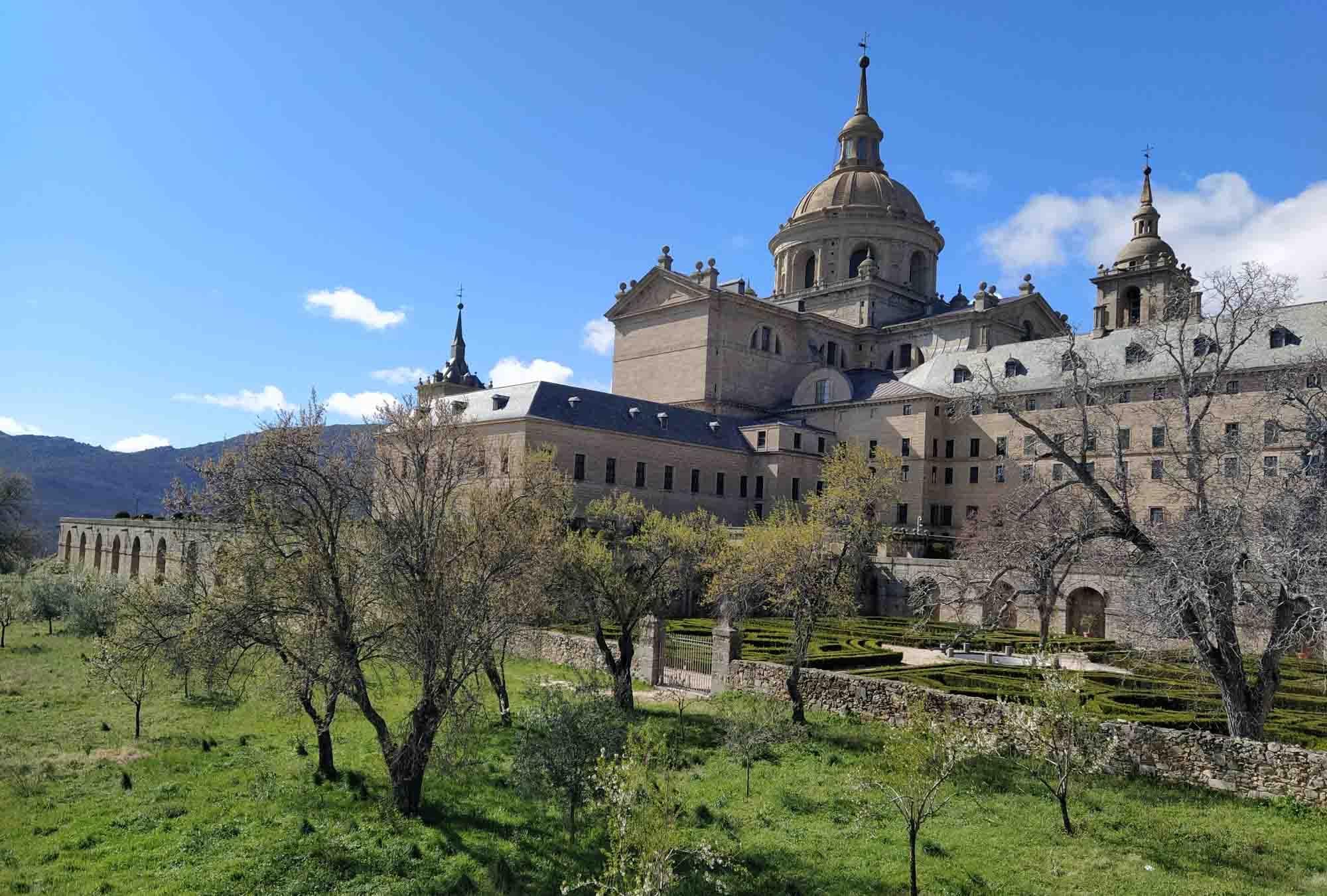Es war unglaublich stürmisch in der Nacht. Das ganze Auto wackelte in den heftigen Böen. Zum Glück blieben die Äste an den Bäumen, unter denen wir standen. Am nächsten Morgen war der Spuk erstmal vorbei und die Sonne lachte vom wolkenlosen Himmel. Nach der anstrengenden Fahrt gestern hatte niemand von uns Lust, weiterzufahren. Also blieben wir, machten ein paar Spaziergänge durch den Park und zum Kloster. Ein Besuch war natürlich mit Hund wieder nicht möglich, so dass wir die riesige Anlage nur von außen bewundern konnten. Am Abend wurde mal wieder gegrillt: Es gab gedünstete Forelle mit Zuccini-Paprika-Gemüse.