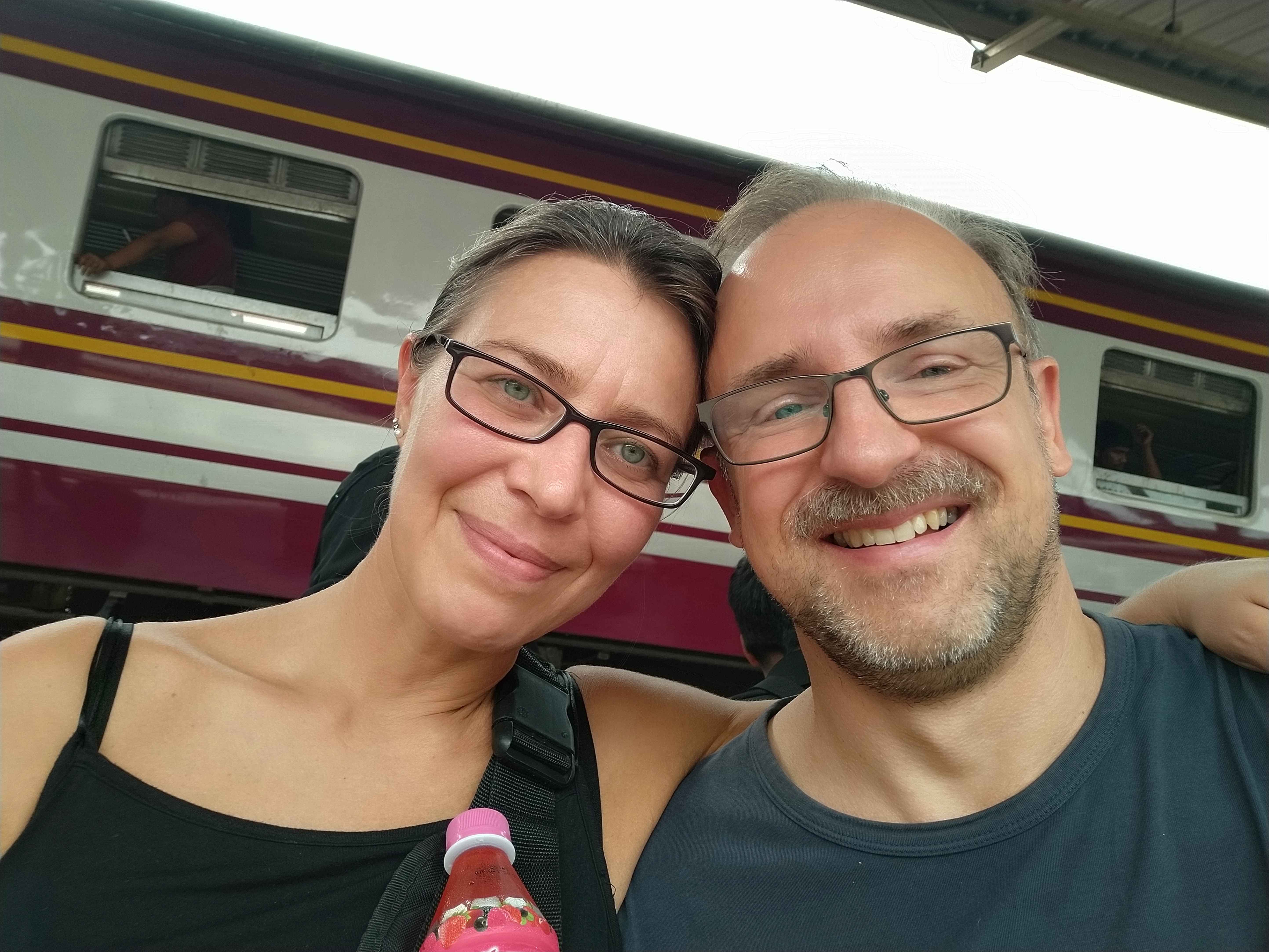 Busfahren in Bangkok, Fahren mit dem Zug, Taxi und Tuk-Tuk: An diesen beiden Tagen haben wir alles ausprobiert, was es an öffentlichen Verkehrsmitteln in Thailand gibt. Gestern haben wir einen Ausflug zu einem Einkaufszentrum in Bangkok gemacht. Die Nummer des Busses haben wir einfach mit Google Maps gefunden. An der Haltestelle freundlich winken, damit der Bus anhält, einsteigen, hinsetzen und warten, bis der Schaffner zum kassieren kommt. 30 Baht kostete die Fahrt im klimatisierten Bus. Für uns beide zusammen! Nahe des Einkaufszentrums wurden nach Sonnenuntergang zahlreiche Stände aufgebaut. Und dann waren wir mittendrin in einem der vielen Nachtmärkte von Bangkok. Wir schauten uns vieles an, aber natürlich nicht alles. Der Markt war viel zu groß. Zurück fuhren wir wieder mit dem Bus, diesmal allerdings mit offenen Fenstern. Daher auch nur 16 Baht für uns beide. Heute dann also mit dem Zug nach Prachin Buri. Die Tickets hatten wir uns in einem Reisebüro zusammen mit einer Tour in den kommenden Tagen bestellt und ins Reisebüro liefern lassen. Es wäre aber auch kein Problem gewesen, die Tickets direkt vor dem Einsteigen am Bahnhof zu kaufen. Zum Bahnhof fuhren wir mit dem Taxi, das wir einfach an der Straße angehalten hatten. Abgerechnet wurde nach Taxameter. Die knapp 4 km lange Strecke durch die Stadt dauerte etwa 20 Minuten und kostete 80 Baht. Der Zug hatte nur 3. Klasse, also keine Klimaanlage und keine Sitzplatzreservierung. Für die 2-stündige ca. 100 km lange Fahrt nach Prachin Buri zahlten wir denn auch nur 26 Baht pro Person. Absolut unglaublich. Der Zug fuhr pünktlich los und kam ebenso pünktlich in Prachin Buri an. Die Fahrt bei offenem Fenster war trotz der 36 Grad gut auszuhalten. Und dank unserer Kopfhörer verschwand auch der Lärm. Am Bahnhof begann das übliche Verhandeln mit den Tuk-Tuk-Fahrern. Für 8 km wollten sie zunächst 200 Baht haben, ließen sich dann aber auf 120 Baht herunterhandeln. Immer noch ein stolzer Preis, im Vergleich zur Zugfahrt, aber deutlich besser als Laufen bei 36 Grad.
