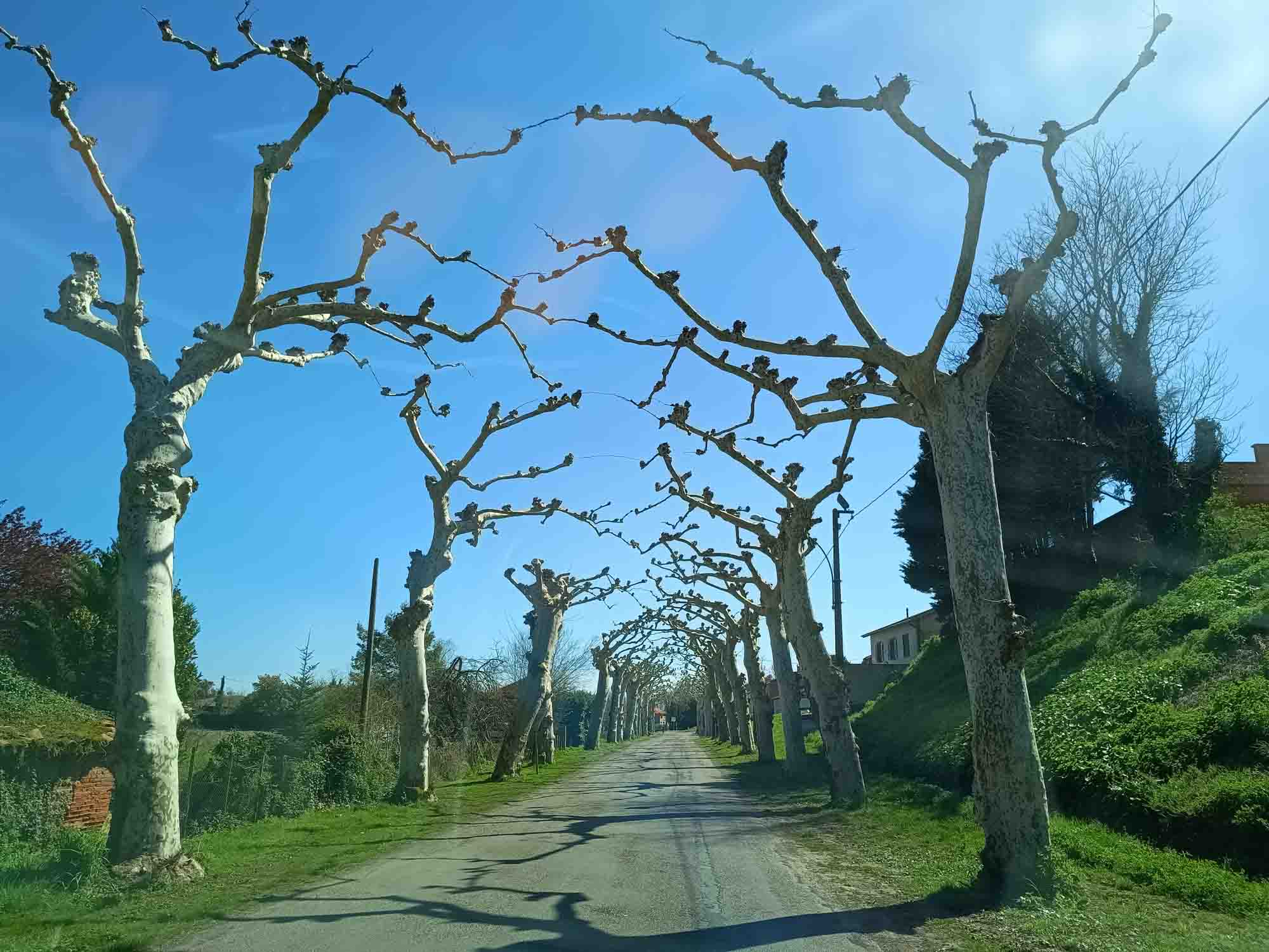 Zu unserer Überraschung war es heute sehr viel kälter als am Vortag und windig war es dazu. Aber die Sonne schien und Berta sagte die niedrigere Temperatur erheblich mehr zu. Sie war geradezu begeistert als wir morgens durch ein Feld mit sprießendem Lauch wanderten. Die heutige Fahrt führte uns als erstens in ein kleines Örtchen, in dem gerade ein Dorffest gefeiert wurde. Nach einem kleinen aber vergeblichen Halt am örtlichen Wohnmobilstellplatz für frisches Wasser fuhren wir unverrichteter Dinge weiter zum nächsten Platz in Saint-Nicolas-de-la-Grave wo wir sowohl Wasser bekamen als auch unsere gewohnte Kaffee- und Spielpause einlegten. Auf dem Platz lief ein offensichtlich streunender großer Hund herum, der sich allerdings nicht sonderlich für unser Futter interessierte. Vermutlich bekam er im Dorf auch so genug zu fressen. Danach ging es weiter über Montauban, wo wir noch einen Einkauf erledigten, nach Vaïssac. Hier fanden wir unseren Übernachtungsplatz an einer Gedenkstätte zum Widerstand gegen die Deutsche Besatzung während des 2. Weltkriegs. Berta interessierte sich allerdings mehr für frische Tote. Sie fand ein halb vergrabenes Kalb das Madendurchfressen knapp unter der Erde lag. Nichts für sensible Gemüter und auch wir ließen lieber noch ein wenig Zeit verstreichen, ehe wir uns an das Abendessen machten. Schließlich hatten wir uns schon seit gestern auf leckere selbstgemachte Fischstäbchen gefreut.