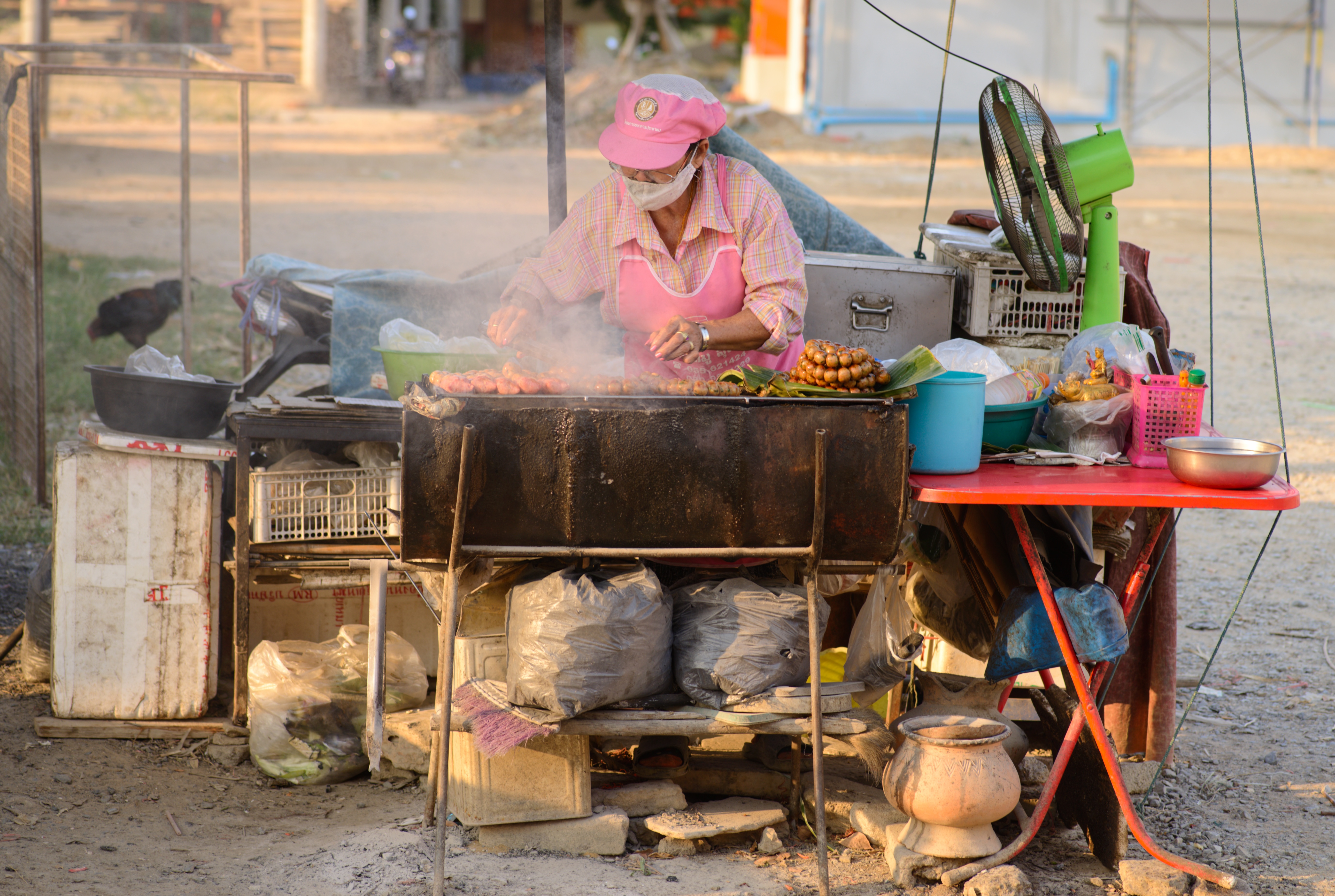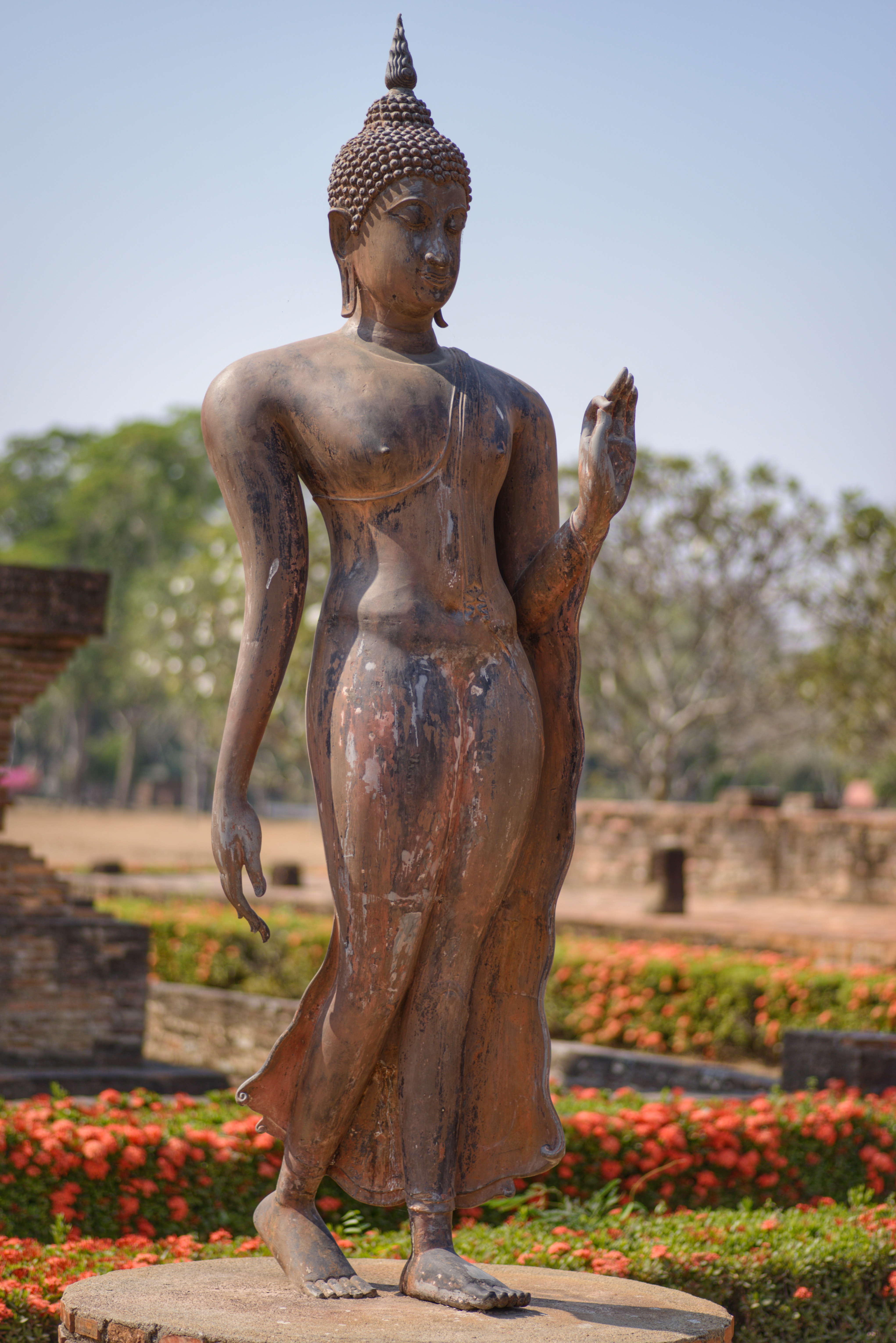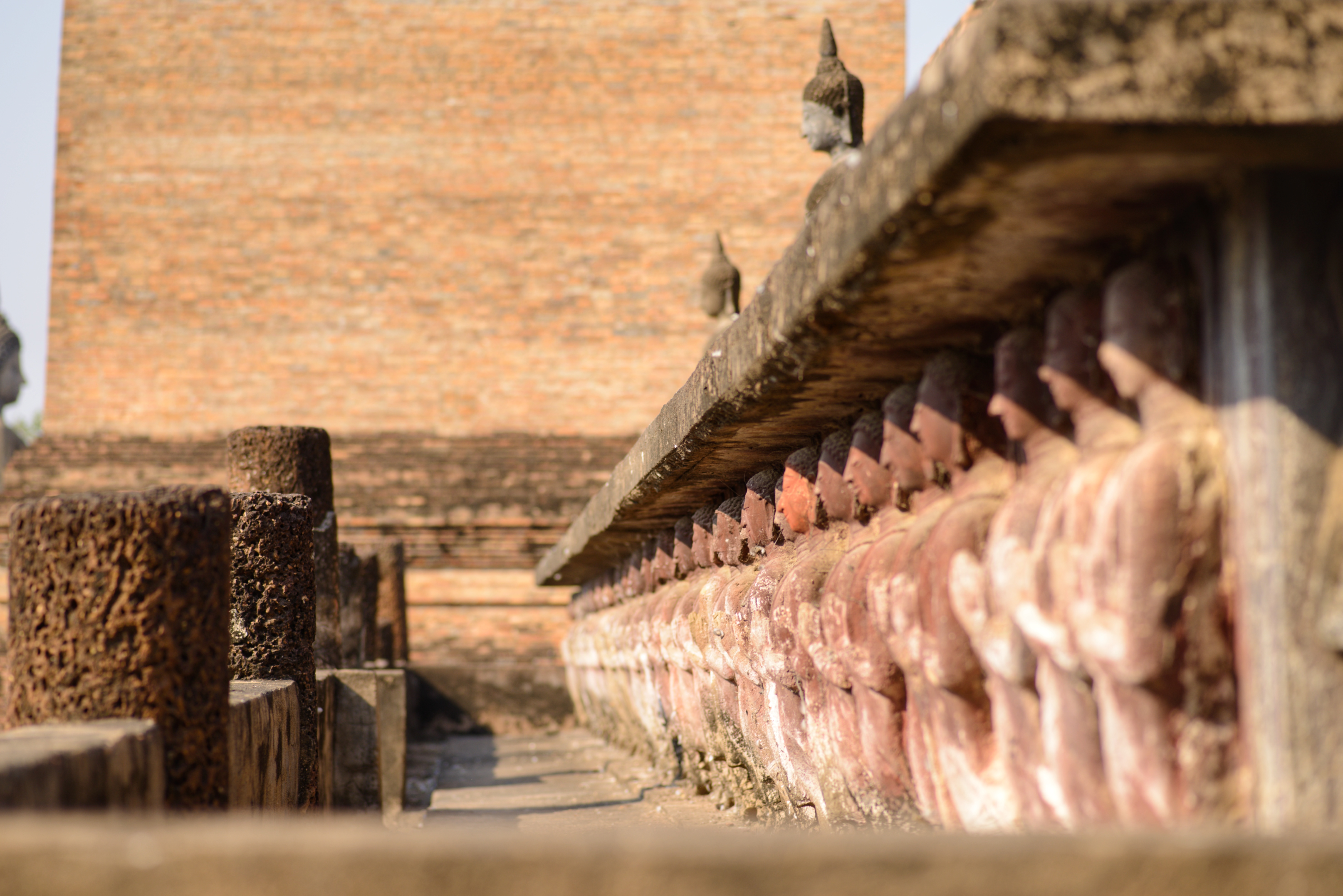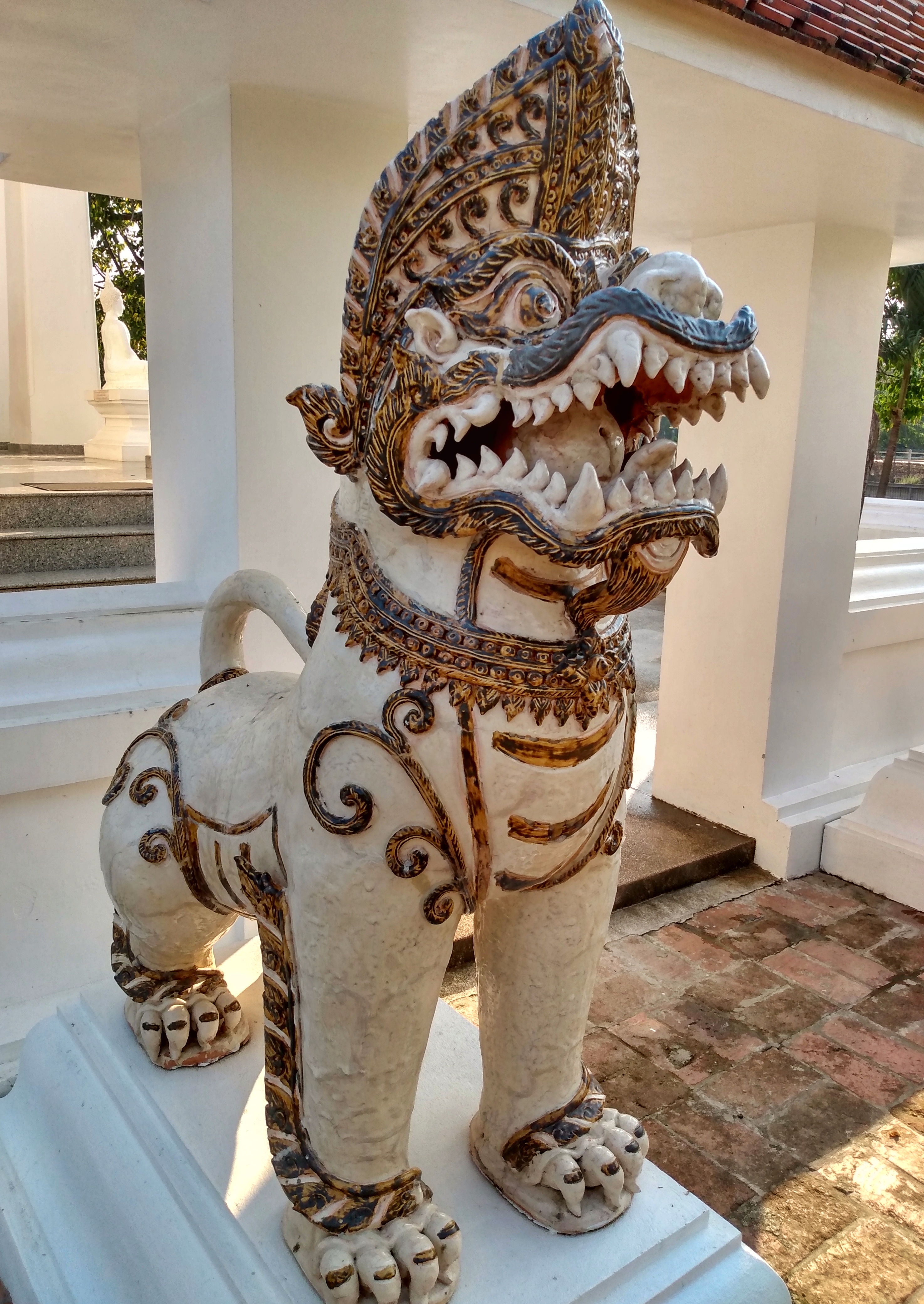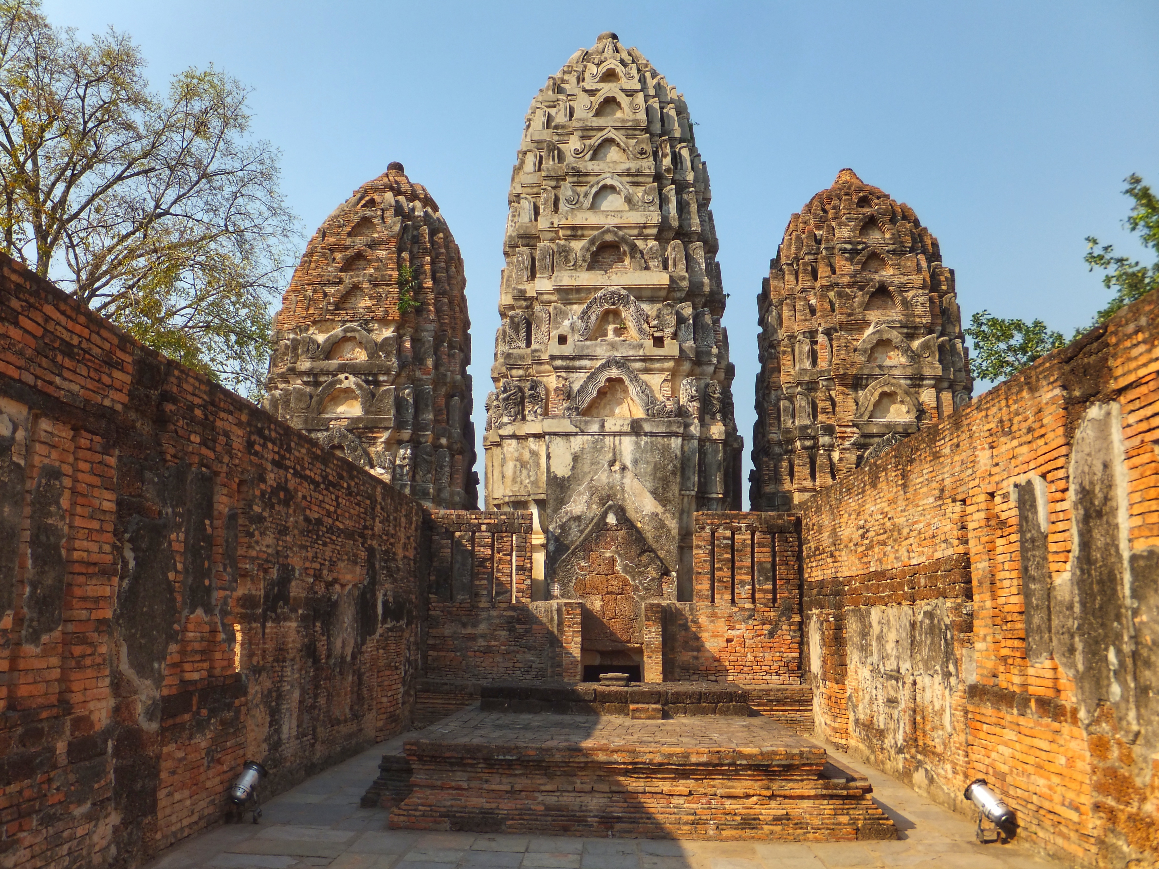 Nachdem wir ausgeschlafen hatten, machten wir uns gegen Mittag auf, den Historical Park von Sukhothai zu besichtigen. Unser Hotel lag leider in der Neustadt und so nahmen wir für 30 Baht je Person den Bus für die 14 km zur Altstadt. Für noch einmal 30 Baht liehen wir uns Fahrräder und erkundeten damit die schön angelegte Parkanlage. Die Ruinen der ersten Hauptstadt Thailands waren zwar weniger gut erhalten. Aber die ruhige Lage und die Möglichkeit durch den fast menschenleeren Park mit dem Fahrrad zu fahren, machten es zu einem sehr schönen Erlebnis. Zum Abschluss fuhren wir noch zu einem Tempel, der vollständig mit Wasser umgeben war. Auf den Holzbrücken, die hinüberführen, stehen morgens um 5:30 Uhr die Bettelmönche, um sich versorgen zu lassen. Mit dem Bus ging es zurück zur Neustadt wo wir nach einem kleinen Spaziergang zu Abend aßen.