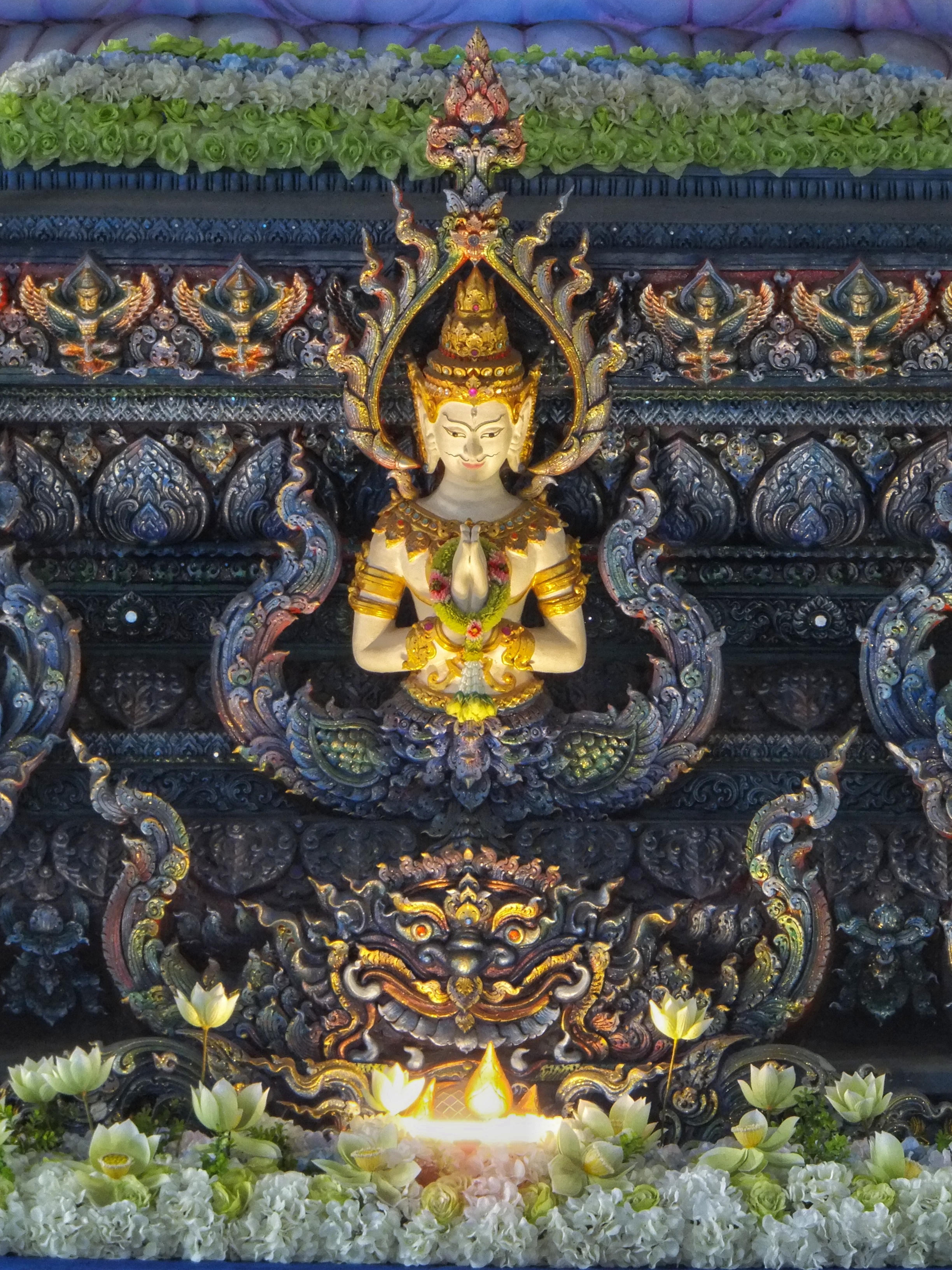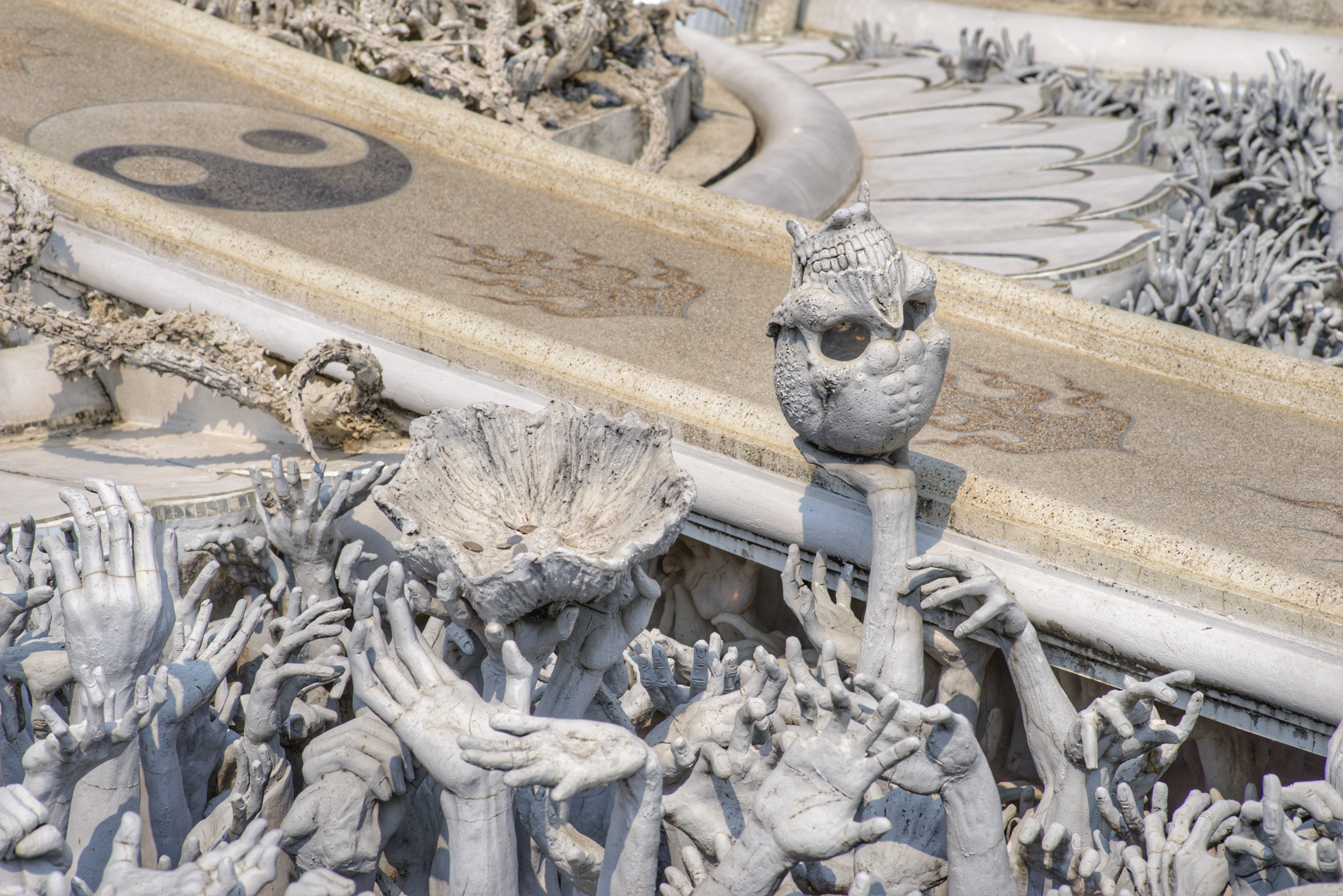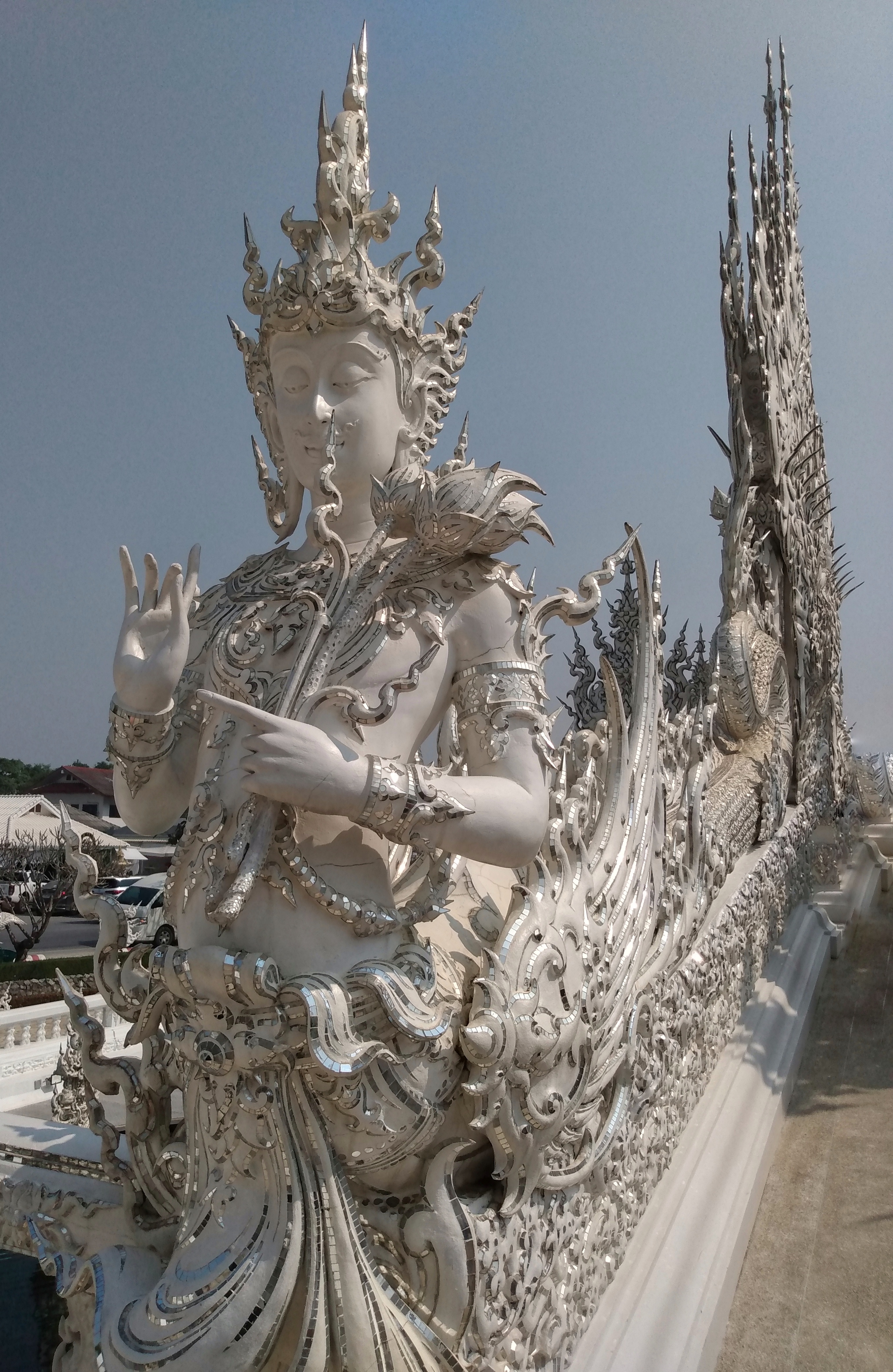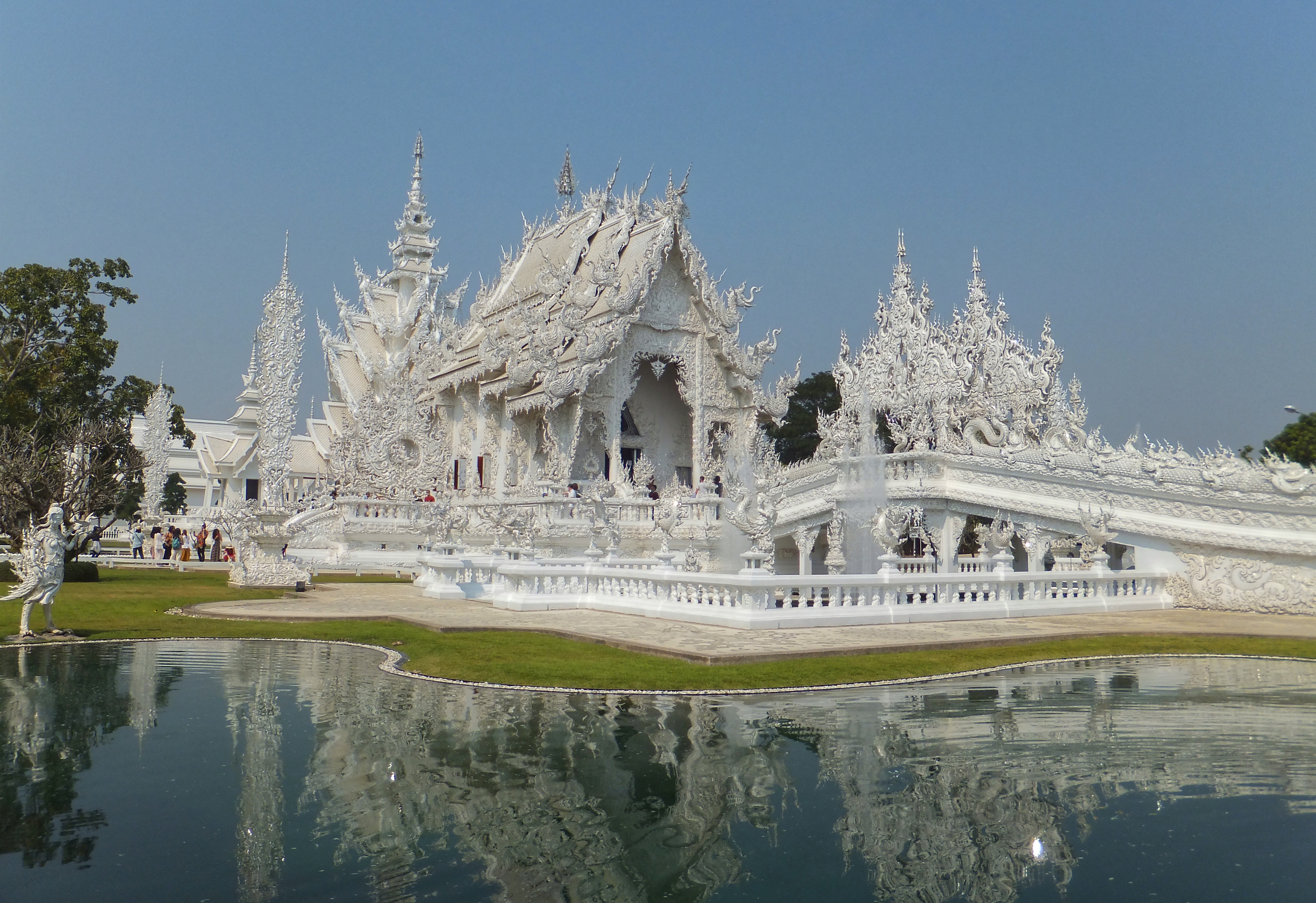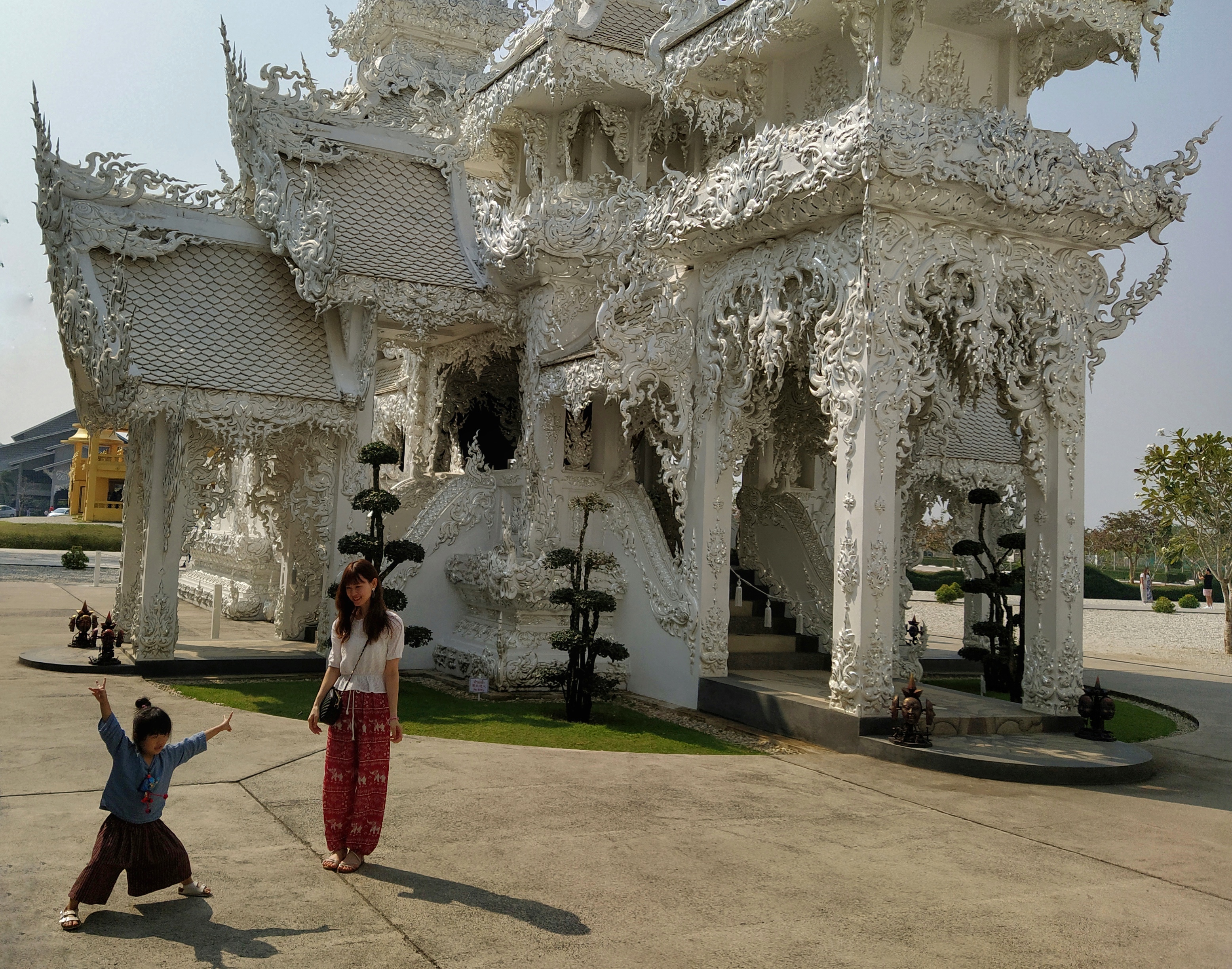 Wie immer pünktlich wurden wir um kurz nach 7:00 Uhr im Hotel abgeholt. Nachdem die anderen Gäste ebenfalls eingesammelt worden sind, fuhren wir mit einem kurzen Stopp nach Mae Kachan Hot Spring and Geyser, bestaunten das Kochen von Eiern im 90 Grad heißen Wasser und ließen uns dann zum weißen Tempel nach Chiang Rai fahren. Die Fahrt war etwas abenteuerlich vor allem wegen der abrupten Fahrweise unseres jungen Fahrers. Unentwegt musste er an den unmöglichsten Stellen überholen, nur um dann hart zu bremsen und erneut kräftig zu beschleunigen. Um 11:00 Uhr waren wir in Chiang Rai angekommen. Die Gruppe hatte sagenhafte 40 Minuten an diesem atemberaubenden Tempel. Wir hatten mit dem Guide besprochen, wo er uns Abends wieder in Chiang Rai abholen sollte. So schauten wir uns den Tempel in aller Ruhe an, aßen hier noch ein kleines Mittagessen und blieben so etwas mehr als 4 Stunden hier. Dann ließen wir uns von einem Taxi zum blauen Tempel fahren und waren überrascht, dass uns auch dieser Tempel noch einmal beeindrucken konnte. Zur verabredeten Zeit fuhren wir wieder mit dem Taxi, kauften im Einkaufszentrum noch eine Kleinigkeit ein und dann ging es auch schon wieder die 3 Stunden zurück nach Chiang Mai. Die anderen taten uns ein bisschen mehr leid, hatten sie doch den ganzen Tag hauptsächlich im Minivan verbringen müssen. Etwas schlecht war uns trotzdem, als wir um 21:30 wieder im Hotel waren. Wir schlenderten noch über den nahegelegenen samstäglichen Nachtmarkt ehe wir dort noch zu Abend aßen und anschließend todmüde ins Bett fielen.