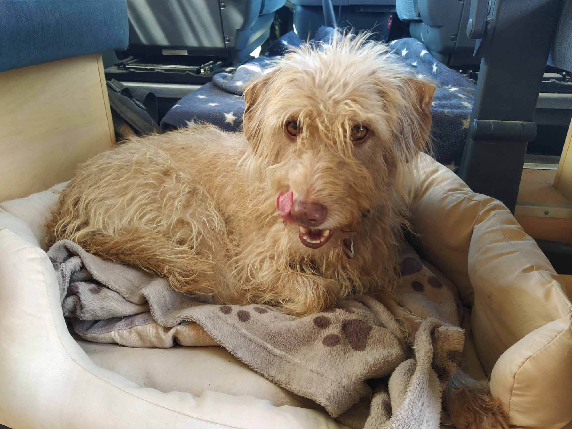 Wir ließen es morgens ganz geruhsam angehen und saßen noch lange draußen an einem Picknicktisch wo wir auch gefrühstückt hatten. Berta lag natürlich darunter. Gegen 10 Uhr war es dann aber doch soweit und wir fuhren wieder los. Nach einer halben Stunde verließen wir die schöne bergige Landschaft und fuhren durch eher langweilige flache Ackerflächen. Der Mais stand kräftig auf einigen Feldern während die Weizenfelder schon abgeerntet waren. Übrig war nur das Stroh, das in großen runden Ballen auf den Stoppelfeldern lag. Nach einer Stunde kamen wir an einem Supermarkt vorbei, wo wir noch ein paar Einkäufe für die nächsten Tage erledigten. Nach einer weiteren Stunde Fahrt legten wir auf einem Rastplatz an der Straße eine kleine Pause ein, die Berta sofort zum Schlafen nutzte. Danach fuhren wir noch eine halbe Stunde weiter bis nach Jussey, um auf einem kostenlosen Wohnmobilstellplatz unser Abwasser zu entsorgen. Aber was für ein Glück: Obwohl es Frischwasser nur mit Jetons gab, funktionierte der Hahn und so bekamen wir sogar kostenloses Trinkwasser. Wir brauchten zwar nur 20 l. Aber was solls. Bleiben wollten wir hier aber nicht. Der asphaltierte Platz lag direkt an der Straße. Also fuhren wir weiter und eine knappe Stunde später erreichten wir, mal wieder über eine kleine einspurige Straße, unser heutiges Ziel, die Zitadelle von Mothe. Von der Zitadelle ist außer einer Erinnerung und einer Karte, wie sie mal ausgesehen hat, nicht mehr viel zu sehen. Aber wir hatten einen tollen Platz und nachdem sich Berta ausgeschlafen hatte, genossen wir einen Spaziergang über den grünen überwucherten Berggipfel, auf dem einst eine Zitadelle nebst Schloss gestanden hatte. Nachdem wir zurück waren, fing es an zu regnen und wir mussten für einige Zeit die Tür zumachen. Aber so schnell wie das Tröpfeln begann, hörte es auch wieder auf und den restlichen Abend konnte die Tür wieder aufbleiben.