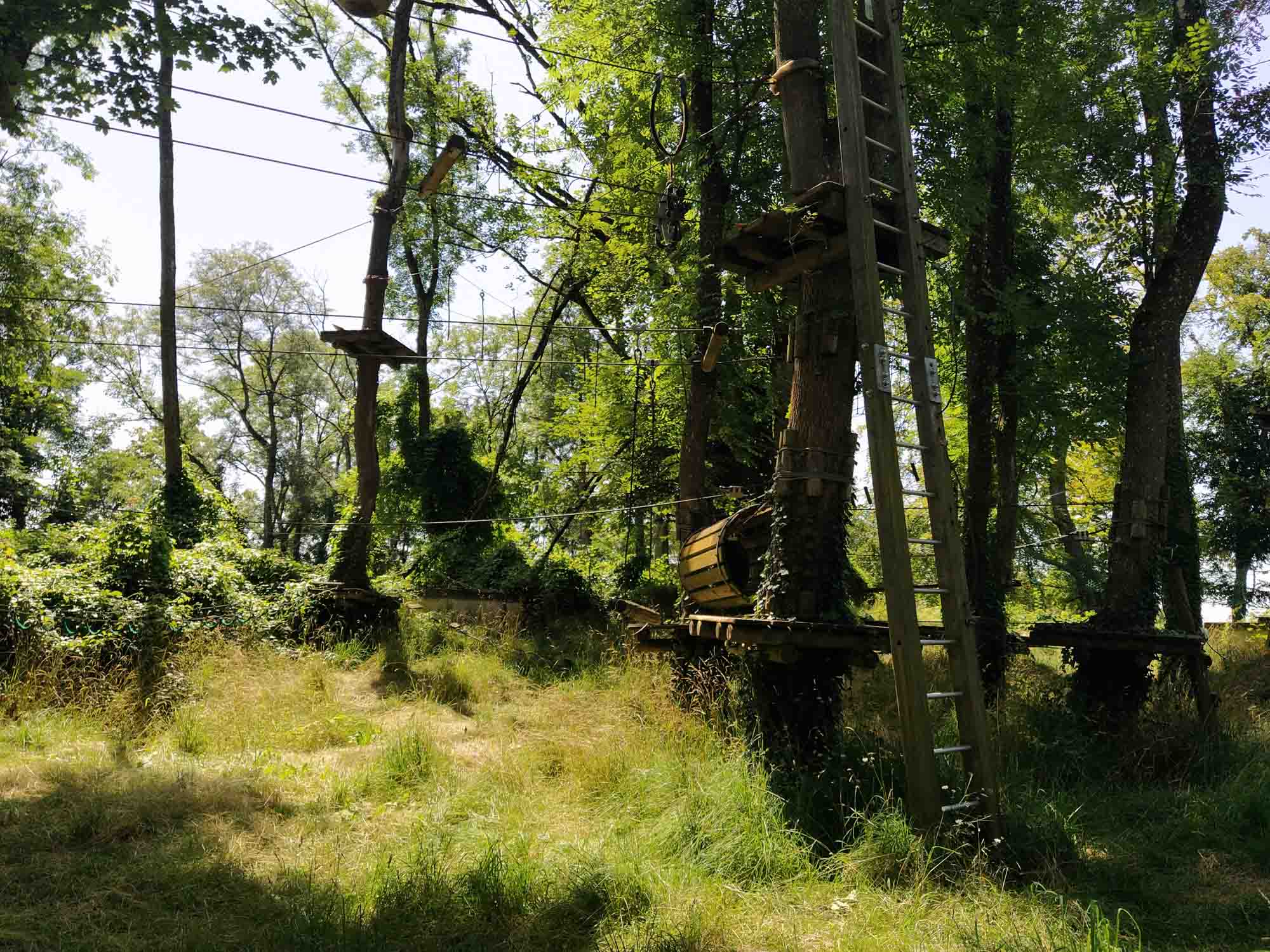 Der Tag begann früh und sonnig. Natürlich machten wir als erstes einen Spaziergang und entdeckten, dass wir unmittelbar an einer alten Zitadelle standen. Unter den hochaufragenden Mauern des gigantischen Bauwerks grasten sogar Schafe aus der Bretagne, für die sich Berta allerdings überhaupt nicht interessierte. Tagsüber erkundeten wir das gesamte Areal und hätten gerne den Kletterwald ausprobiert, dessen Highlight eine Art Brücke über den Zitadellengraben war. Schade nur, dass der Kletterwald nicht mehr in Betrieb war. Es wurde unglaublich heiß. Gegen Mittag waren es 33 Grad im Schatten. Allerdings hatten wir keinen, da der Stellplatz ein großer asphaltierter Platz ohne jeden Baum war. Daher konnten wir auch weder die Markise aufspannen noch einen Stuhl herausstellen. Auch wenn der Parkplatz in einer Tempo 30 Zone lag, nützte das relativ wenig, da sich viele der vorbeifahrenden nicht daran hielten. So war es dann bis in die späten Abendstunden relativ laut. Es blieb uns aber angesichts der Temperaturen (selbst um 22 Uhr hatten wir noch 33 Grad im Wagen) nicht möglich, die Türen und Fenster zu schließen. Aber irgendwann wurde es doch etwas kühler und gegen 1 Uhr war es endlich kühl und ruhig genug, dass wir schlafen konnten.